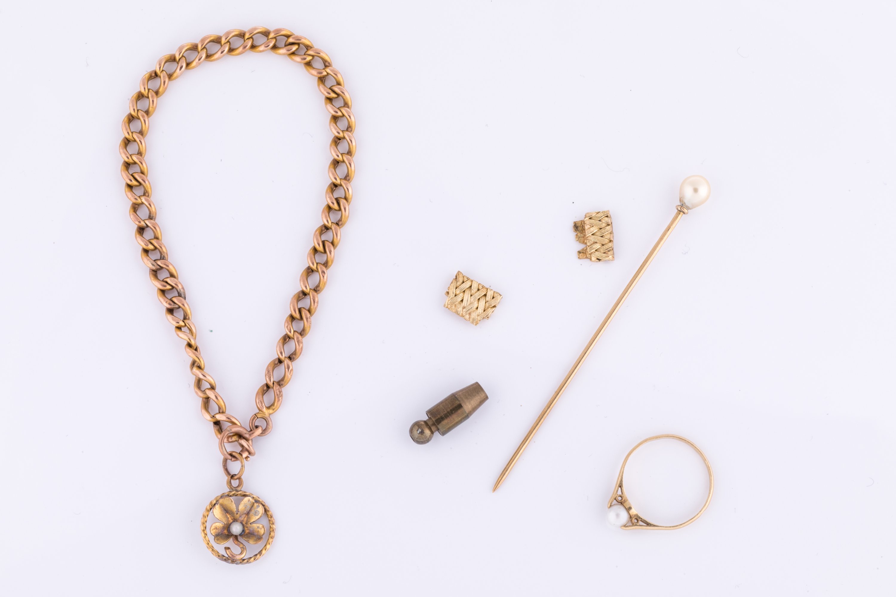 - Epingle à cravate ornée d'une perle. Haut. 6,9 cm. Poids brut 1,4 g.