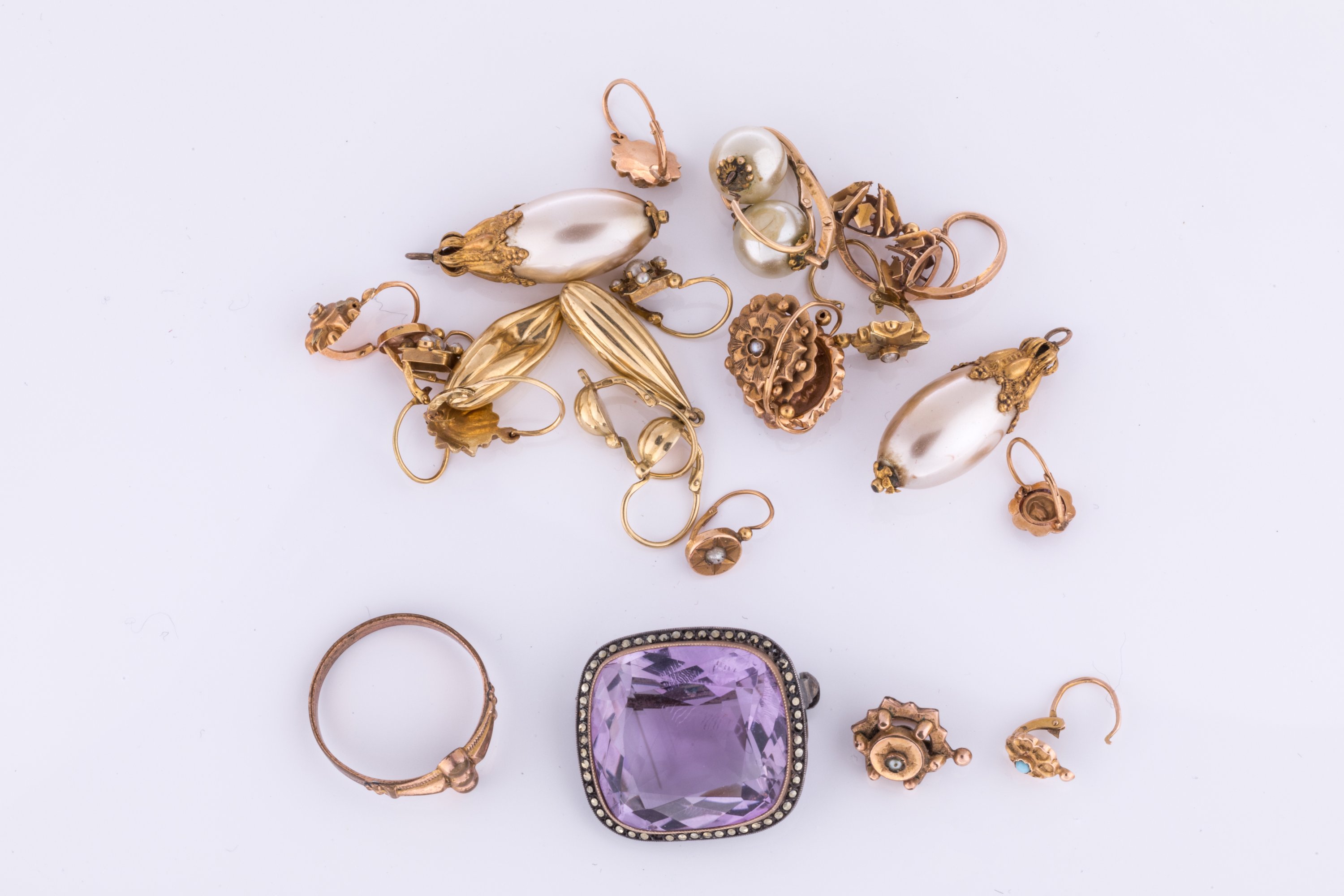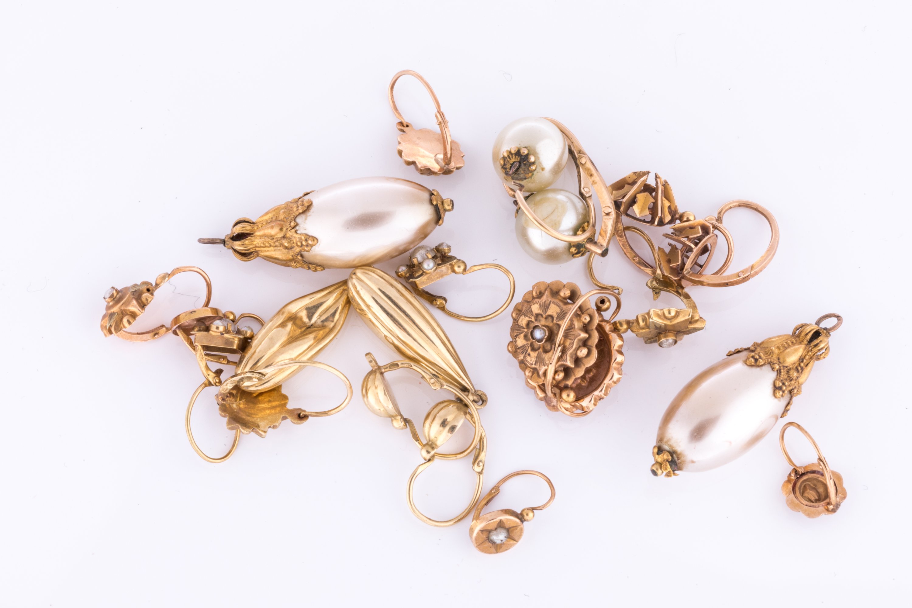 - Deux boucles d'oreilles en or jaune 750 millièmes, l'une sertie d'une turquoise, l'autre d'une petite perle. Poids brut 1,1 g.