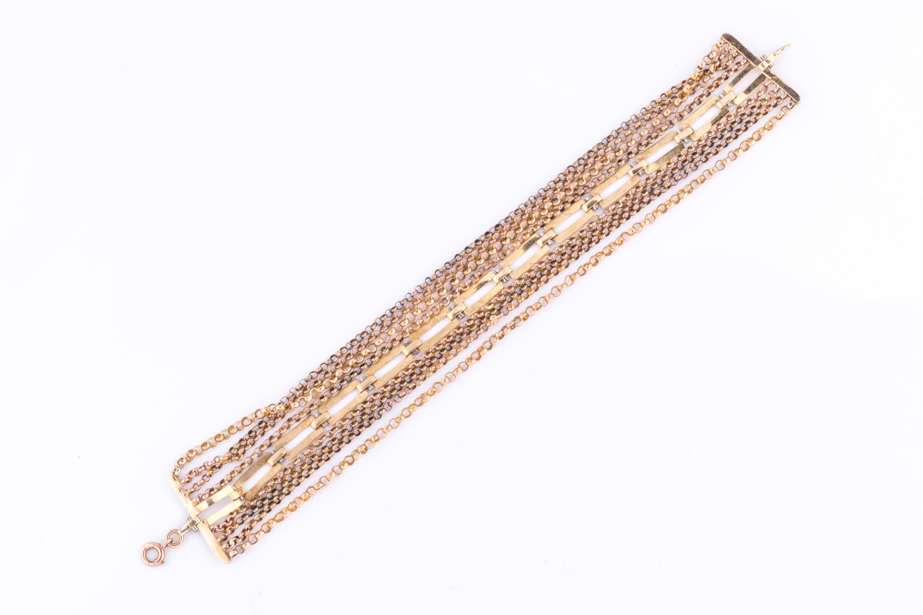 en or jaune 750 millièmes, composé de quatre chaînes entourant une gourmette.