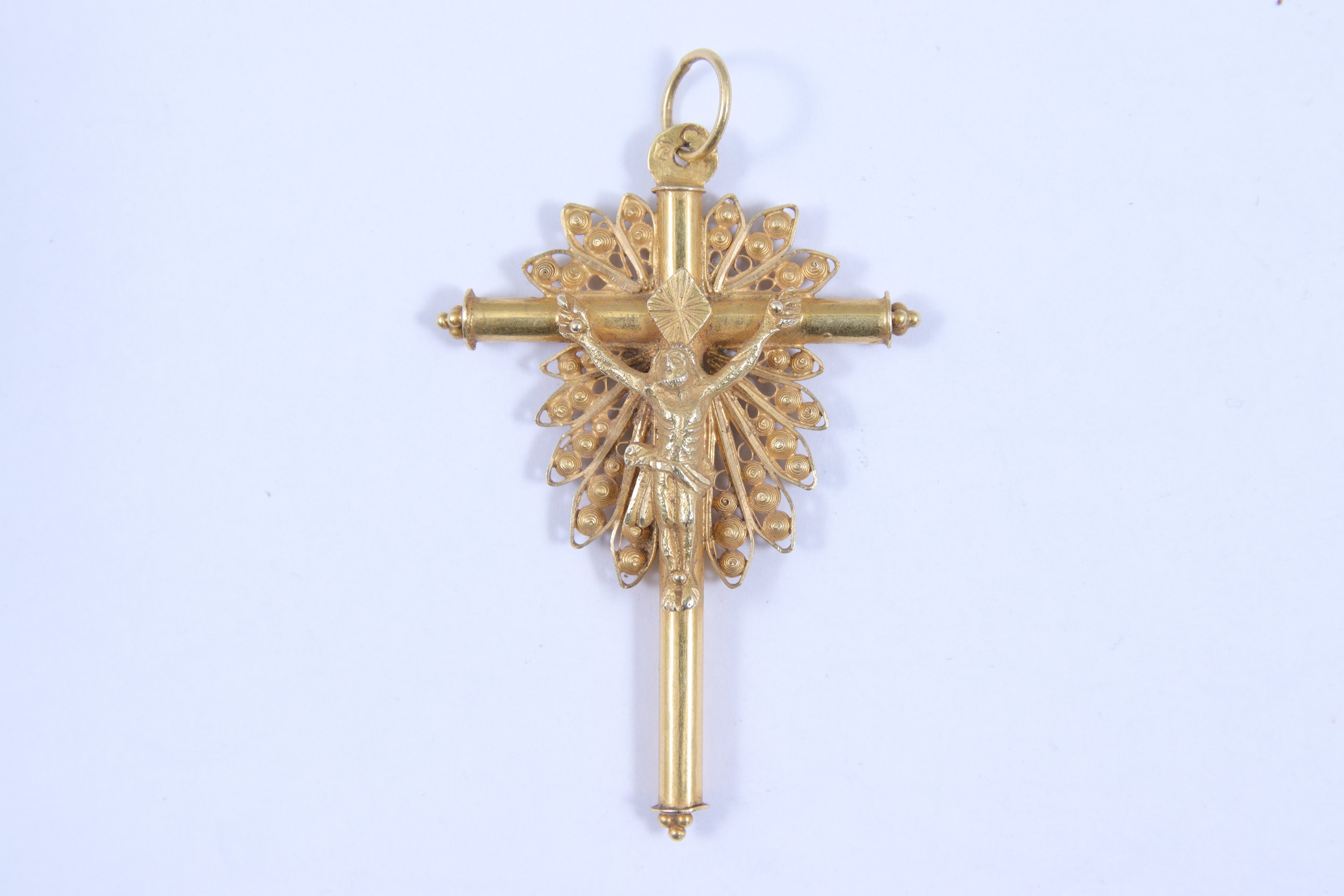 en or jaune 750 millièmes, le Christ dans un entourage de rayons.