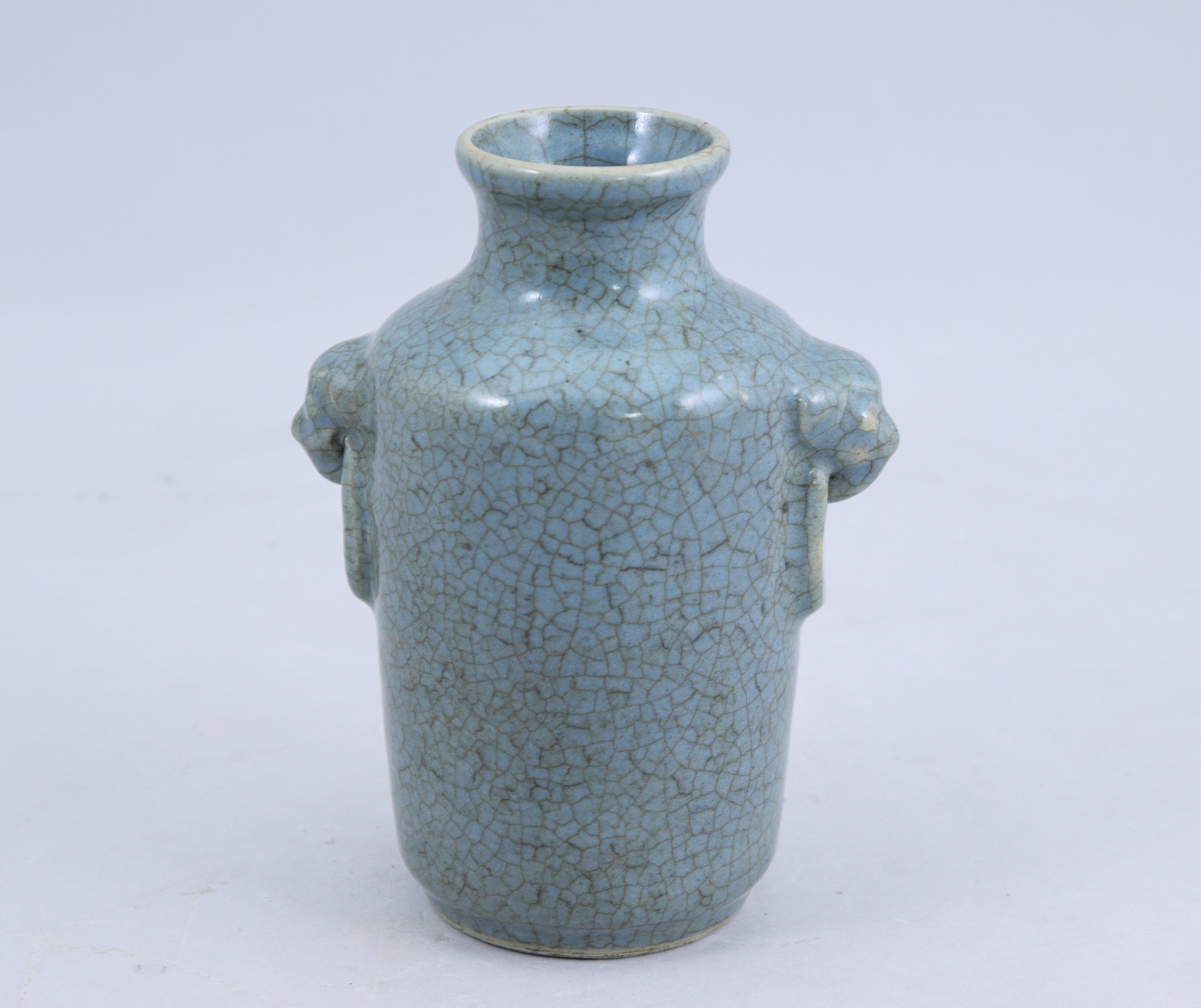 en céramique bleu-gris décorée de tête de lions aux anneaux.