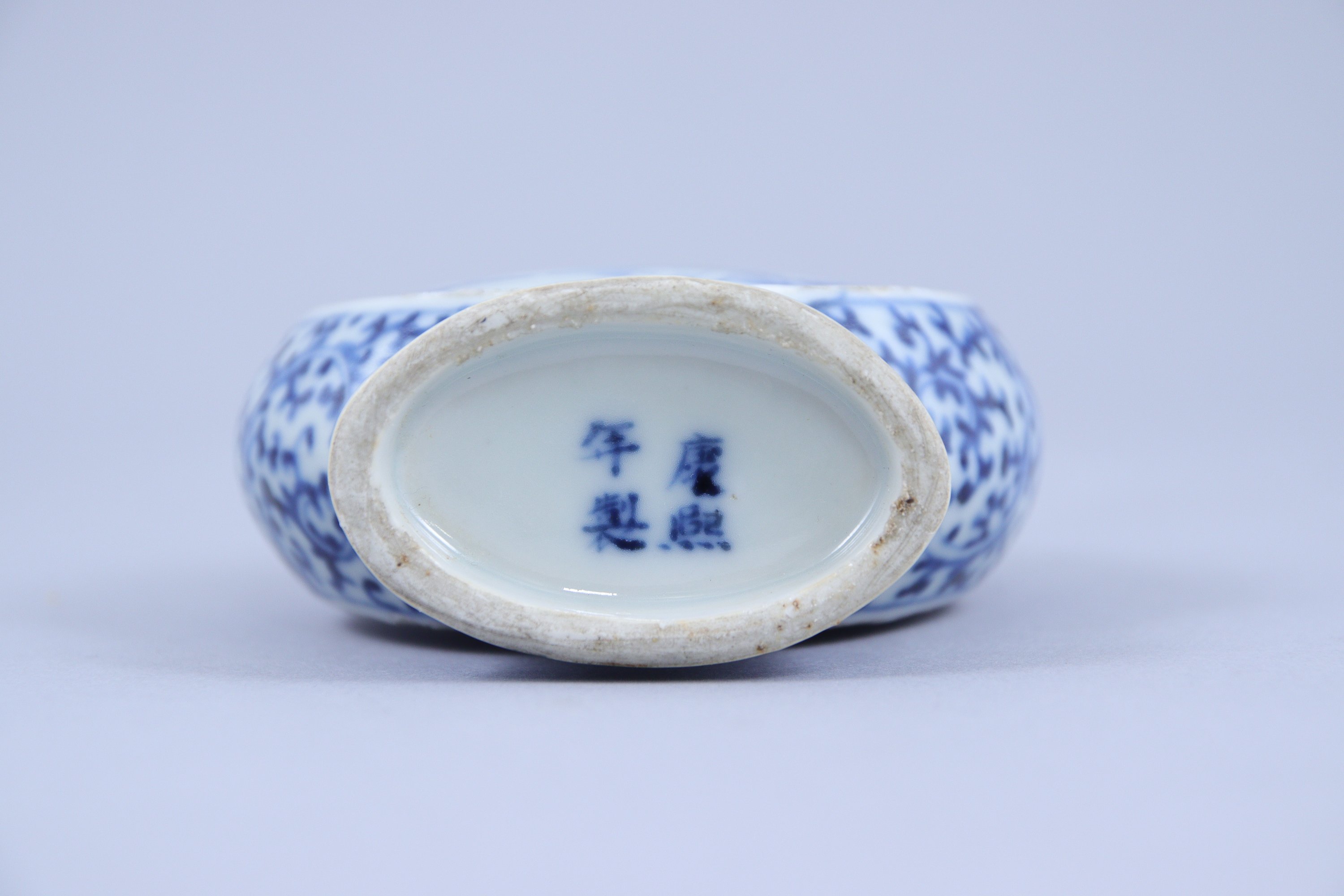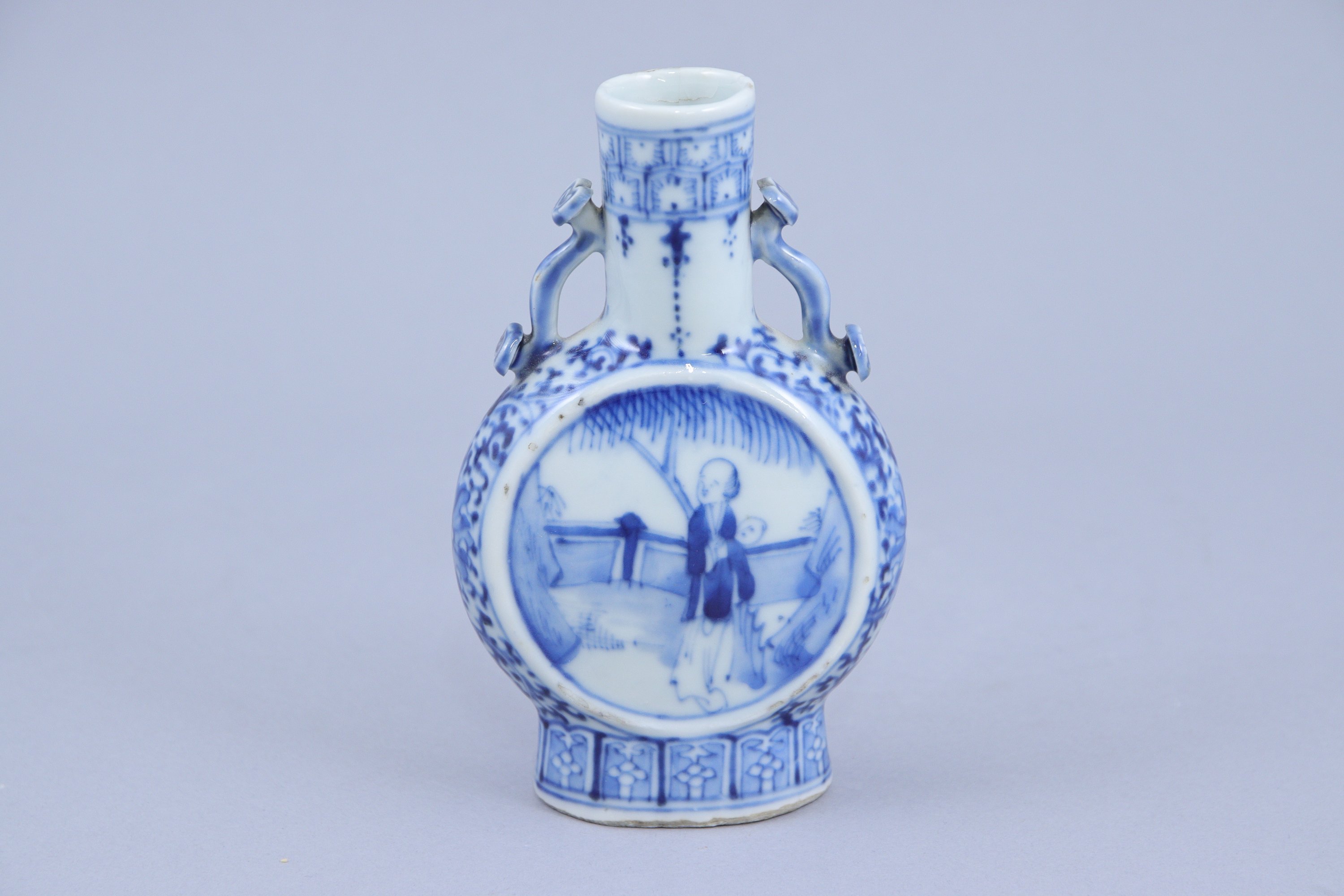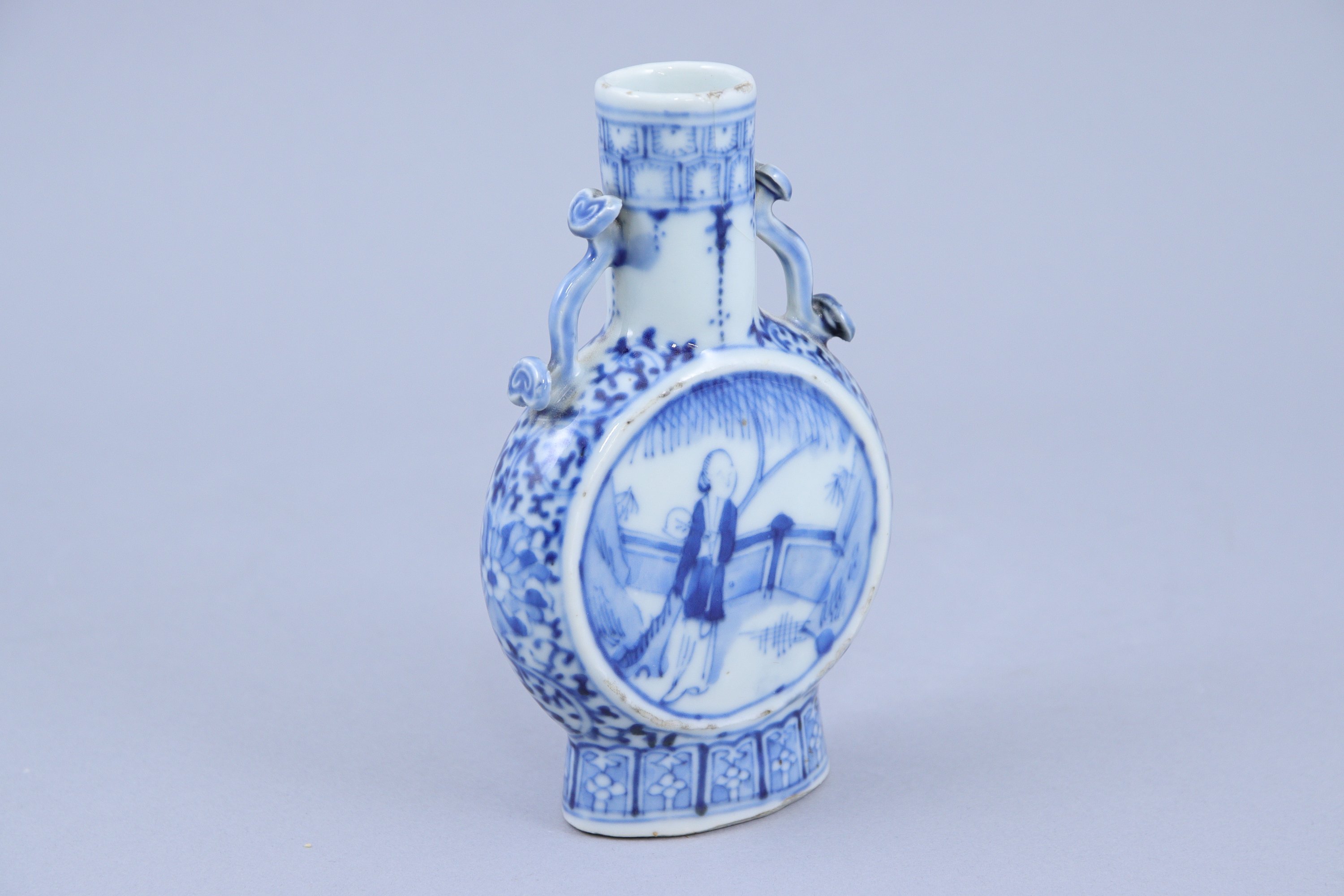 en porcelaine bleue et blanche à motif d'un lettré dans un jardin.