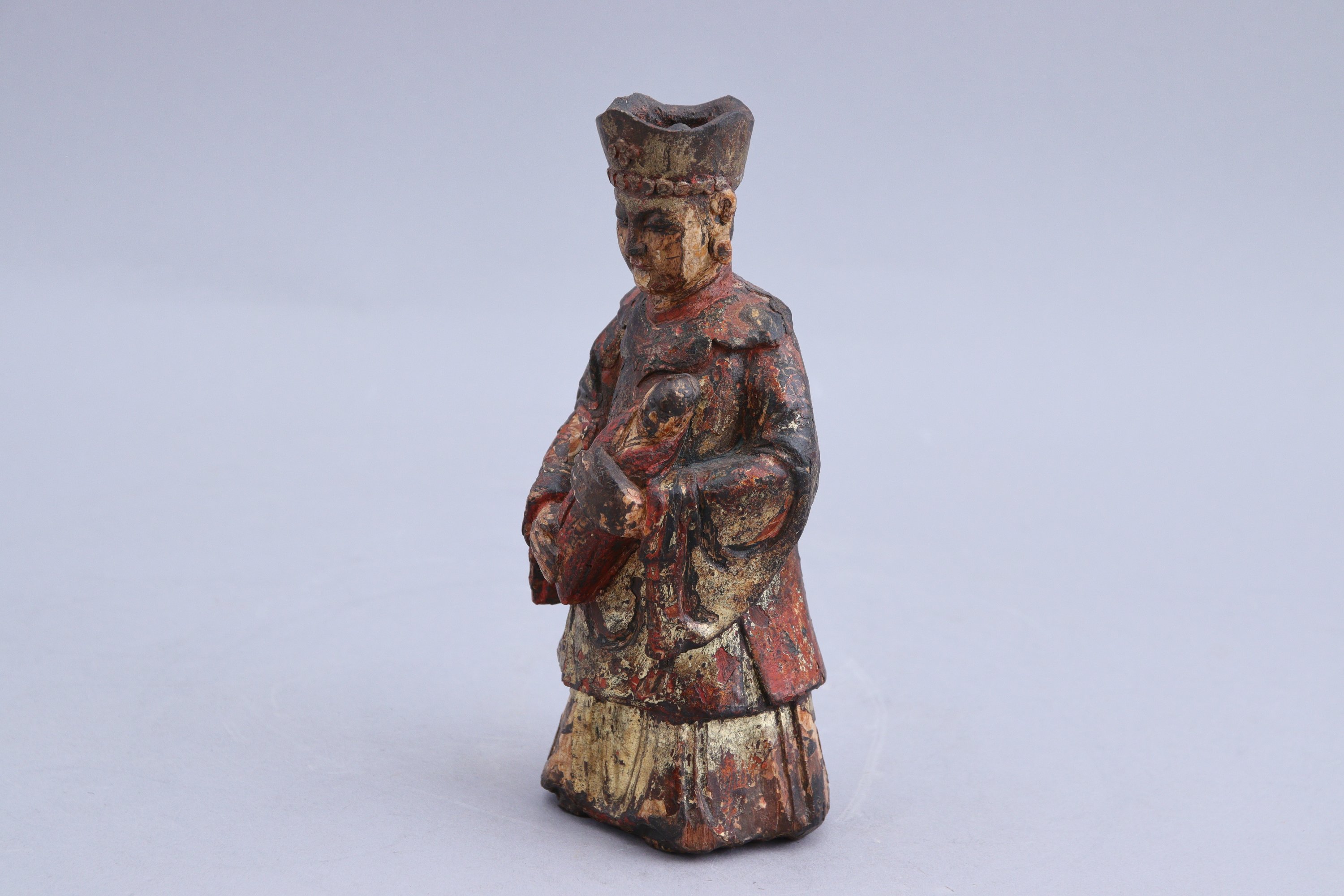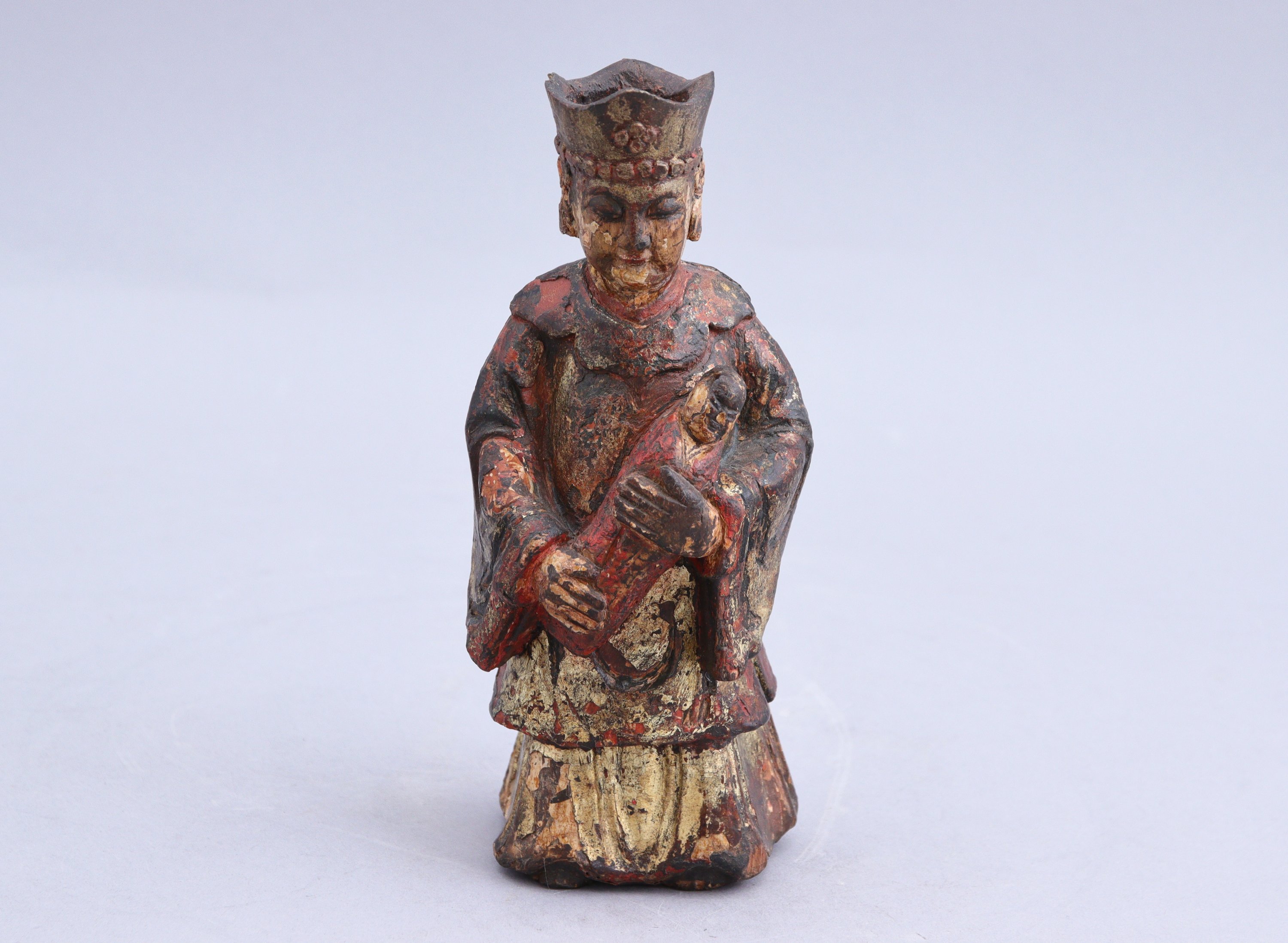 Joint : une statuette de femme debout portant un enfant, en bois polychrome. XIXe s. Haut. 18 cm.