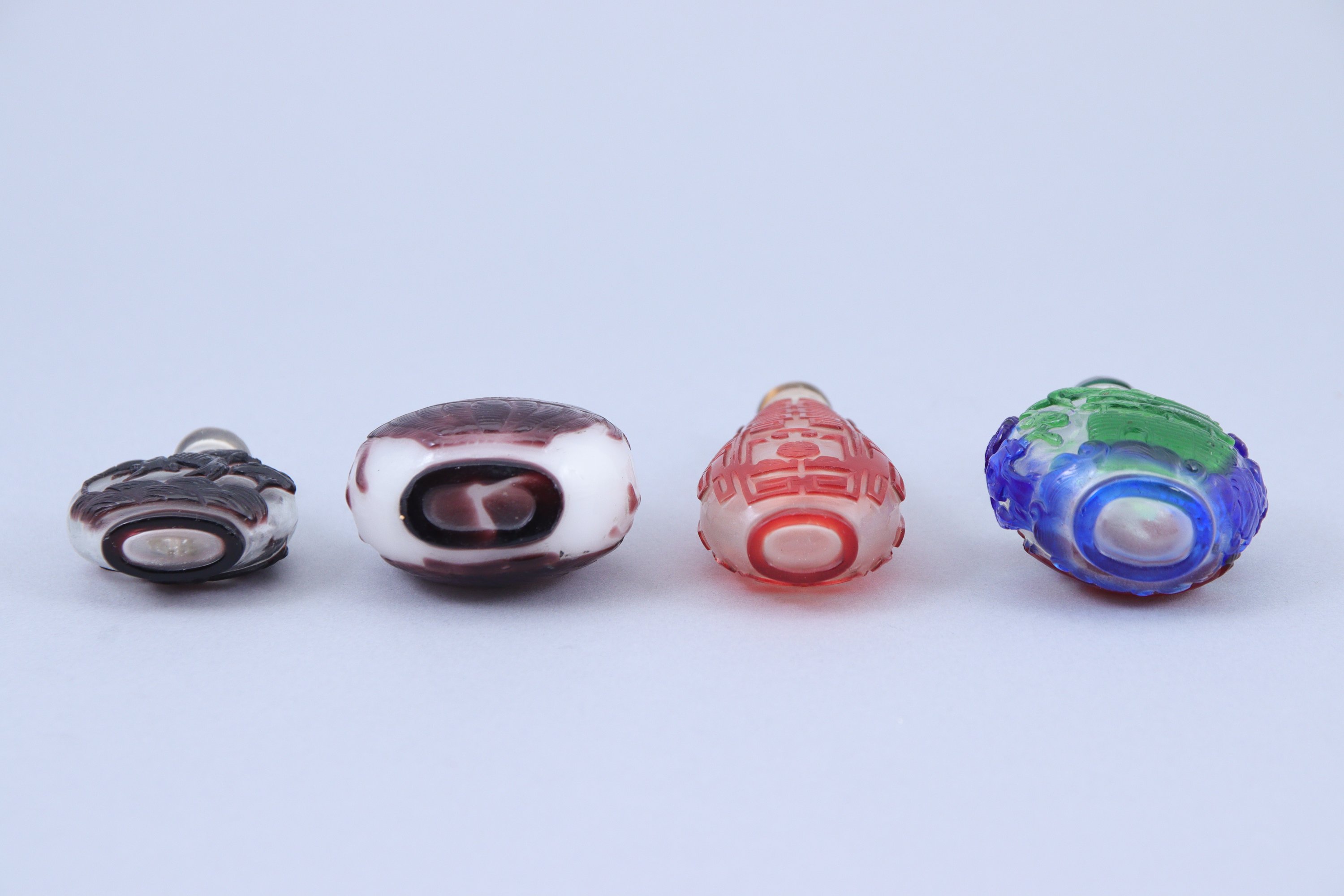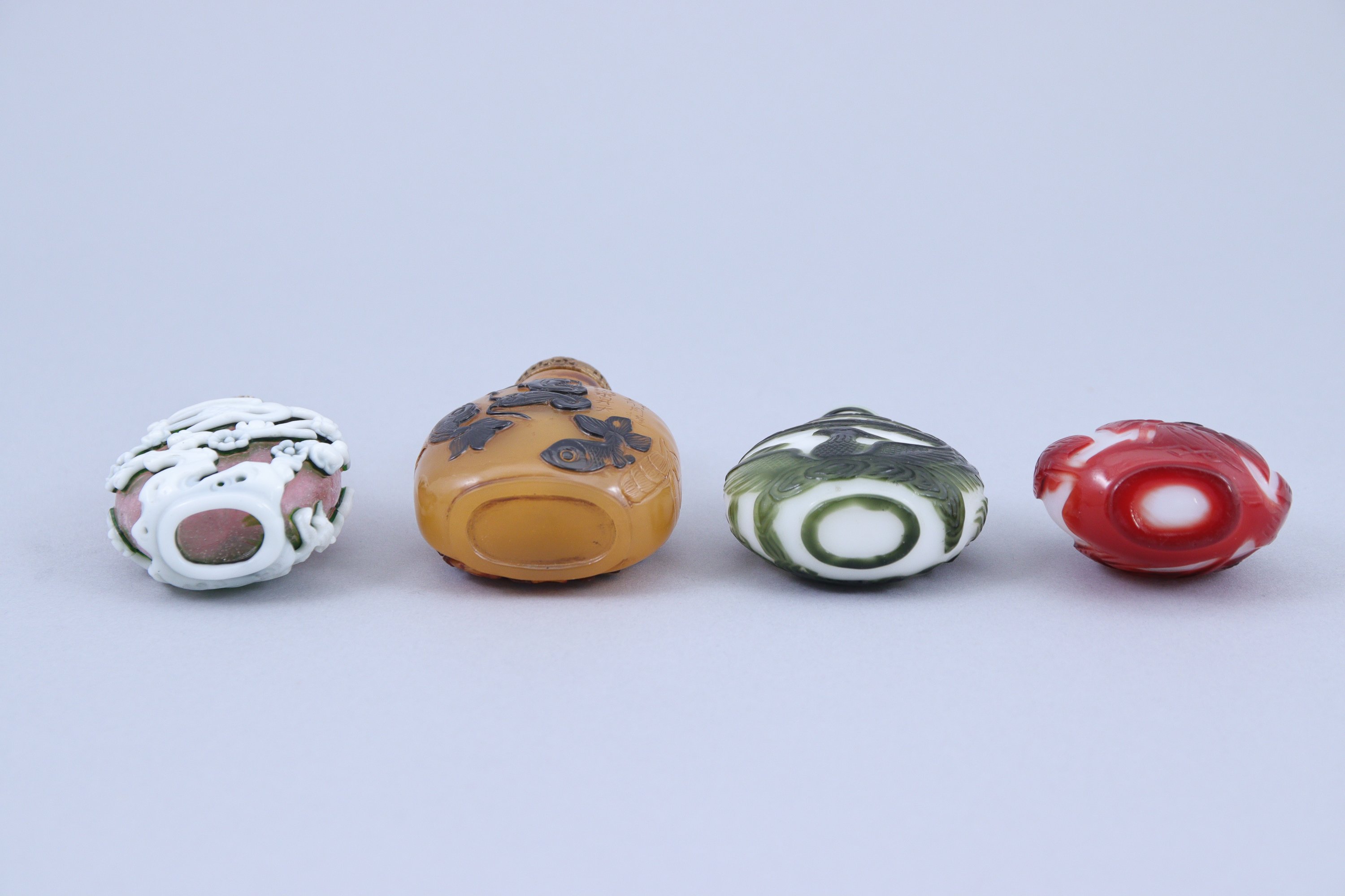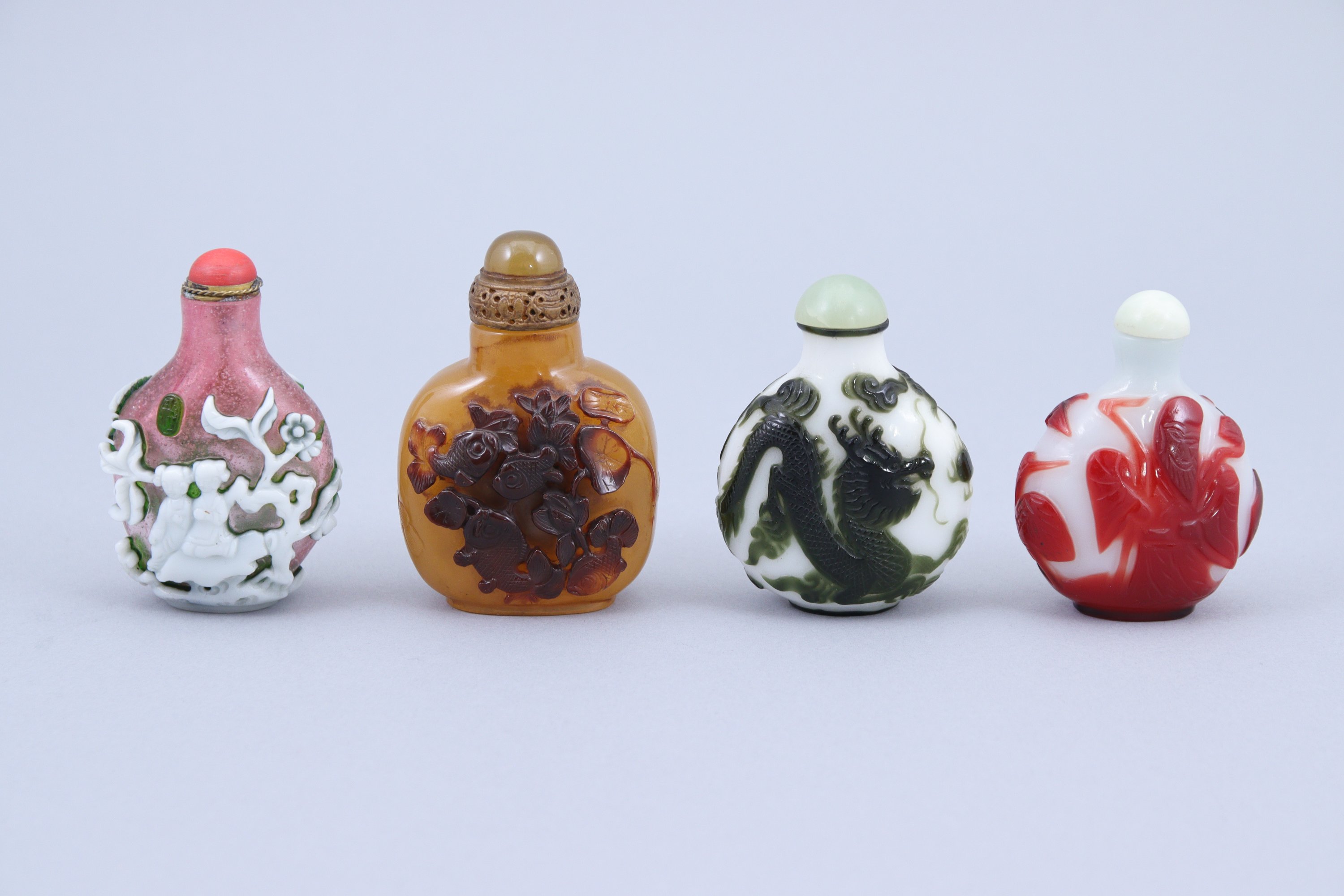 en verre overlay à décor de chevaux, phénix, paniers de fruits, pavillons, frères Hehe, cyprins et caractères "shou".