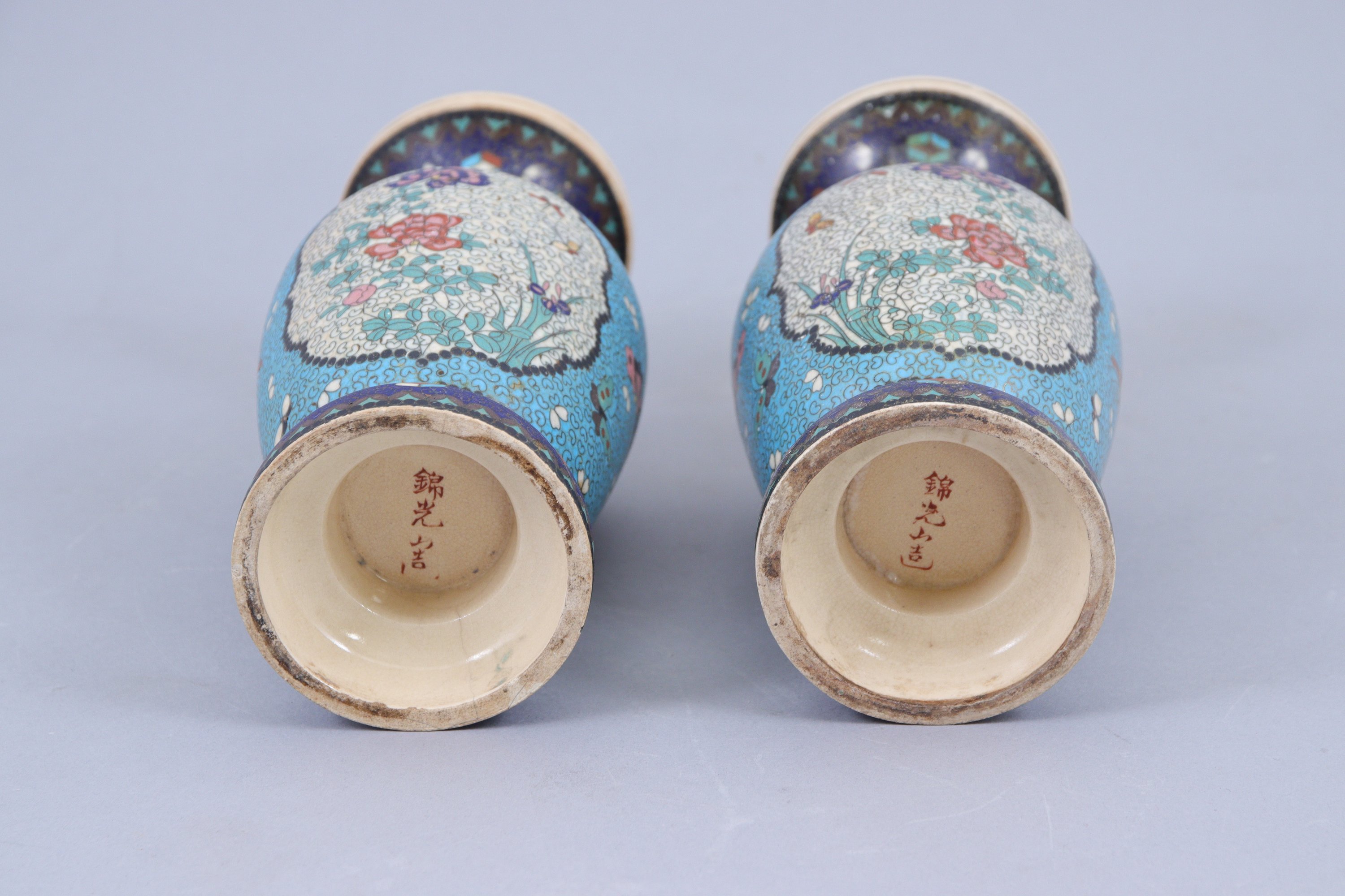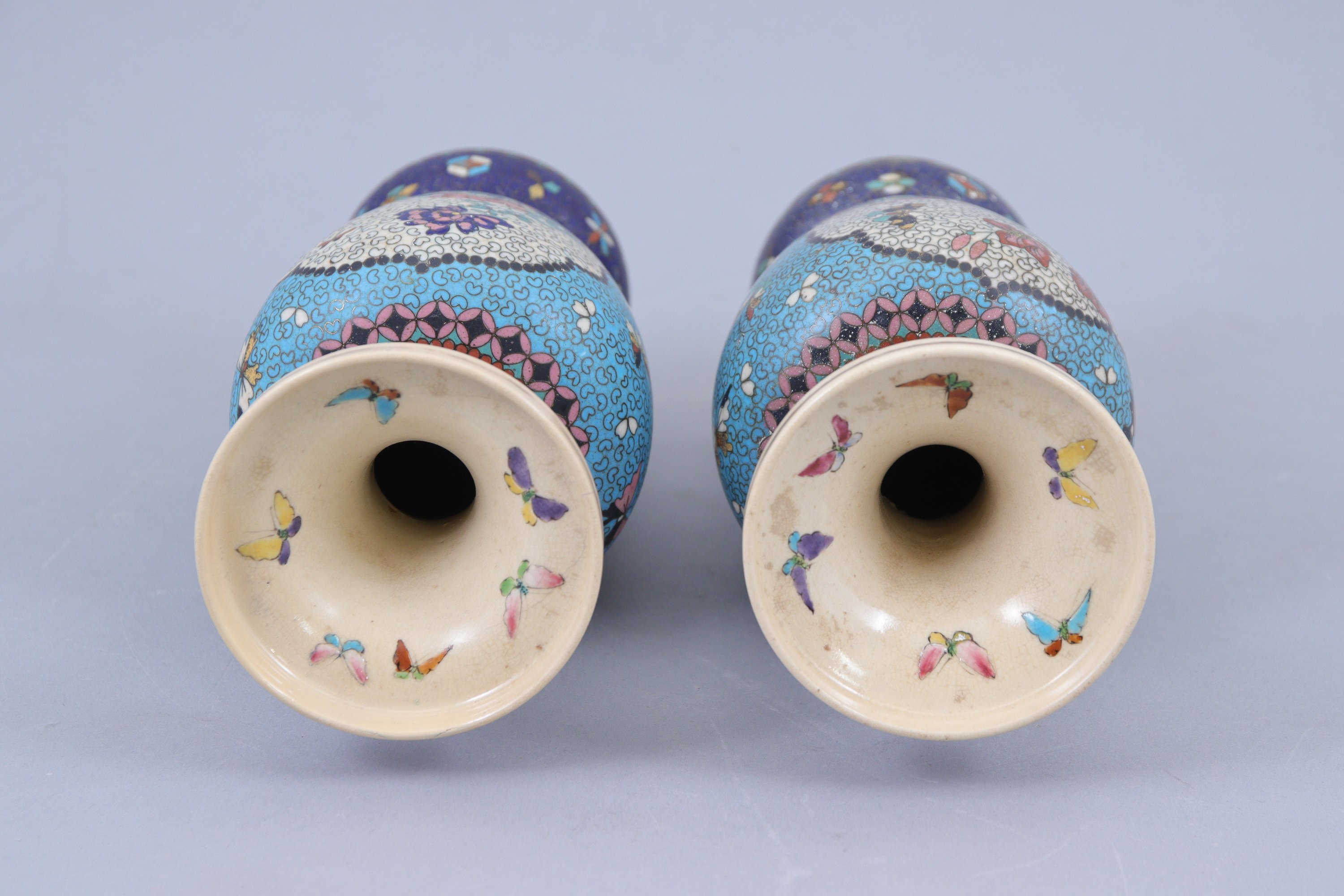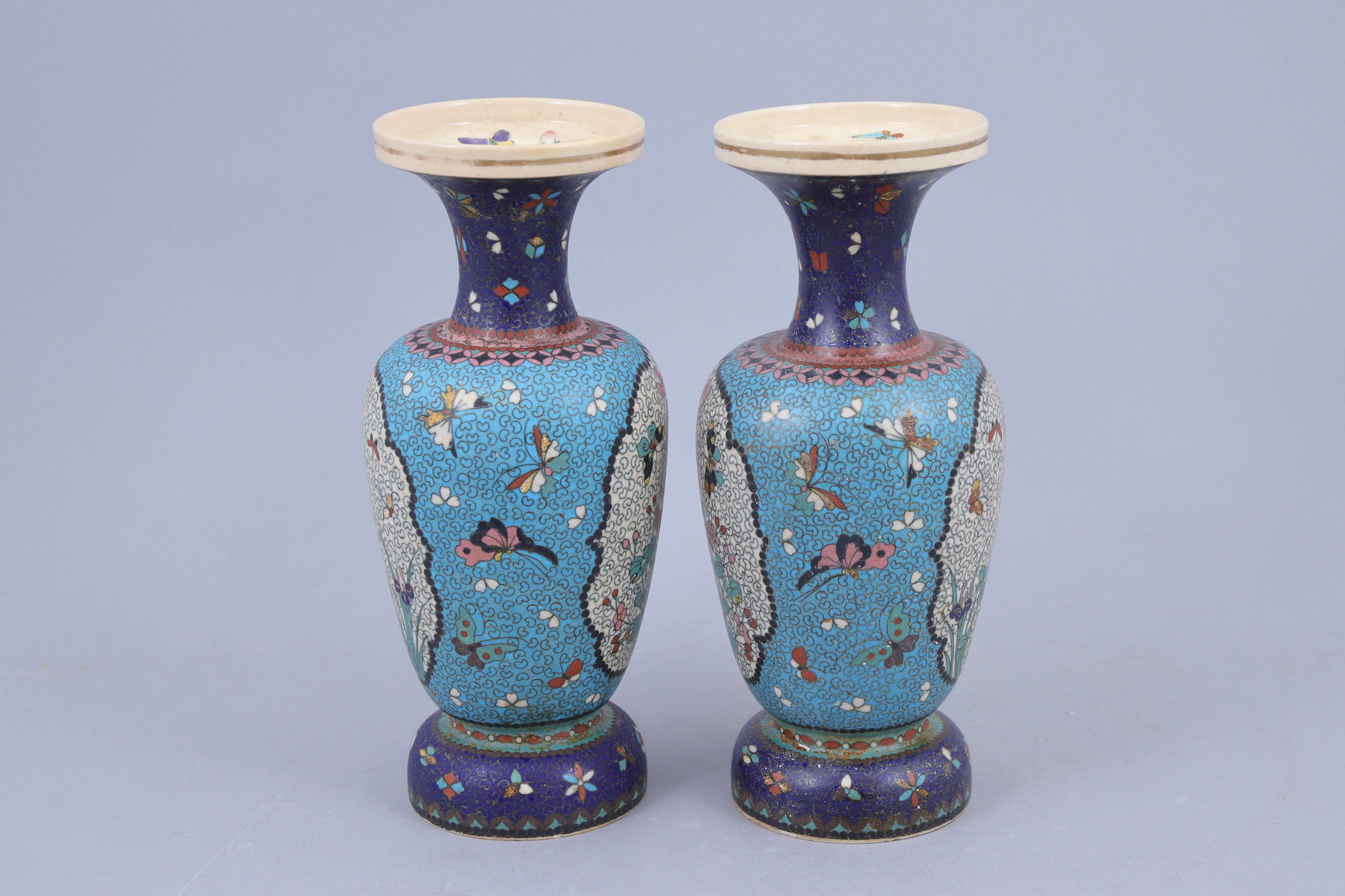 en céramique et émaux cloisonnés, à décor de réserves ornées de fleurs dans leur feuillage et papillons sur fond blanc.