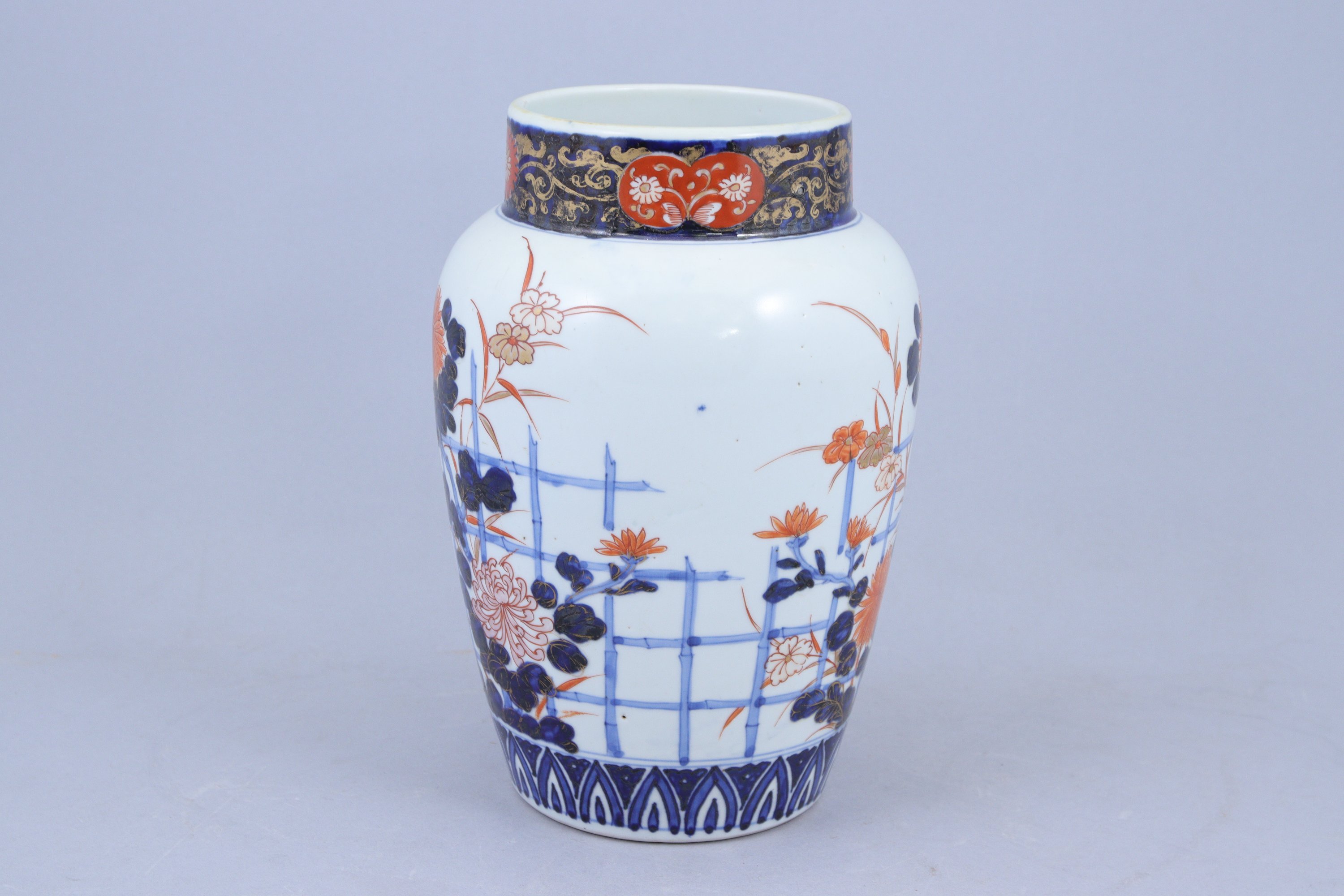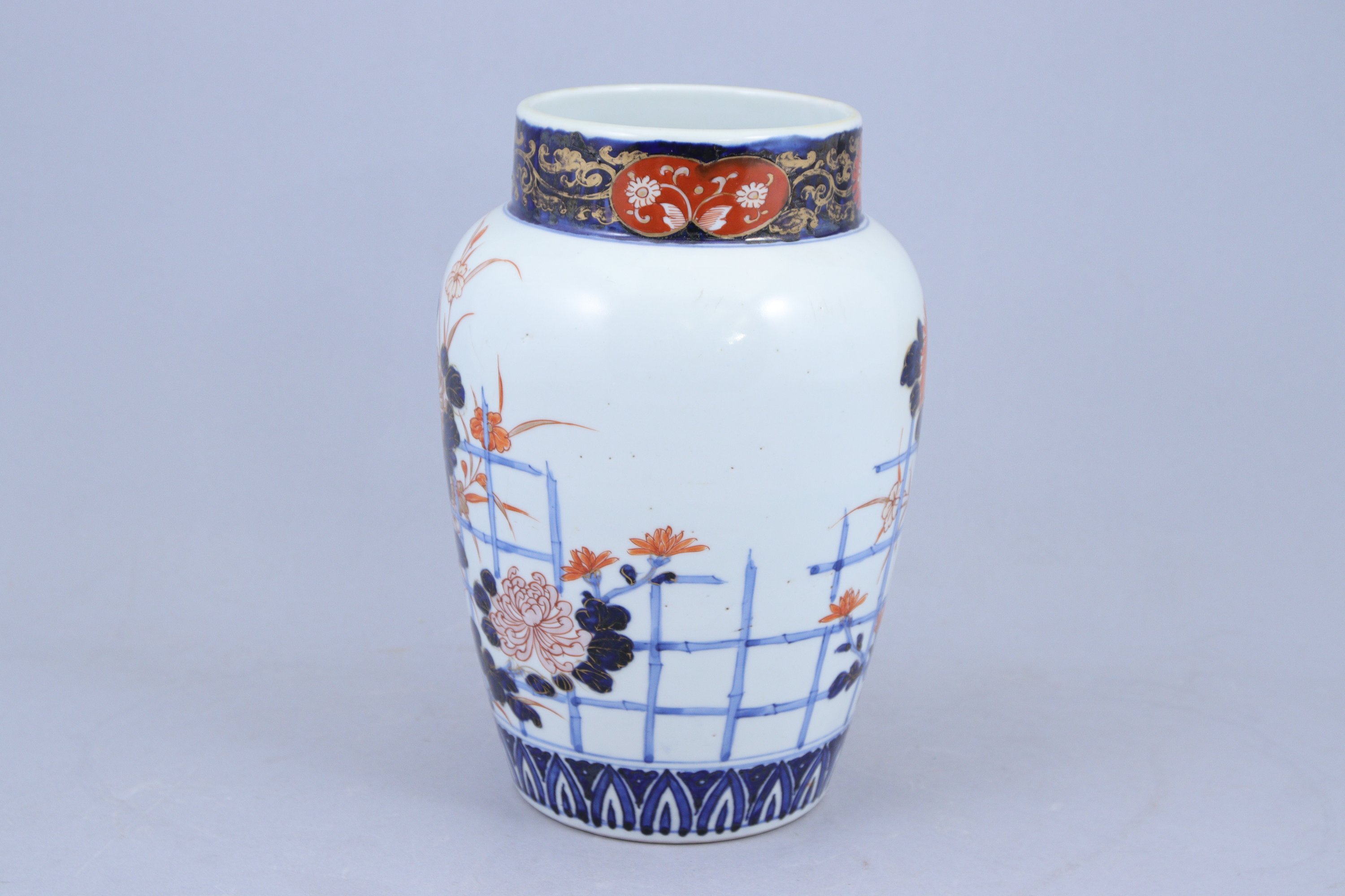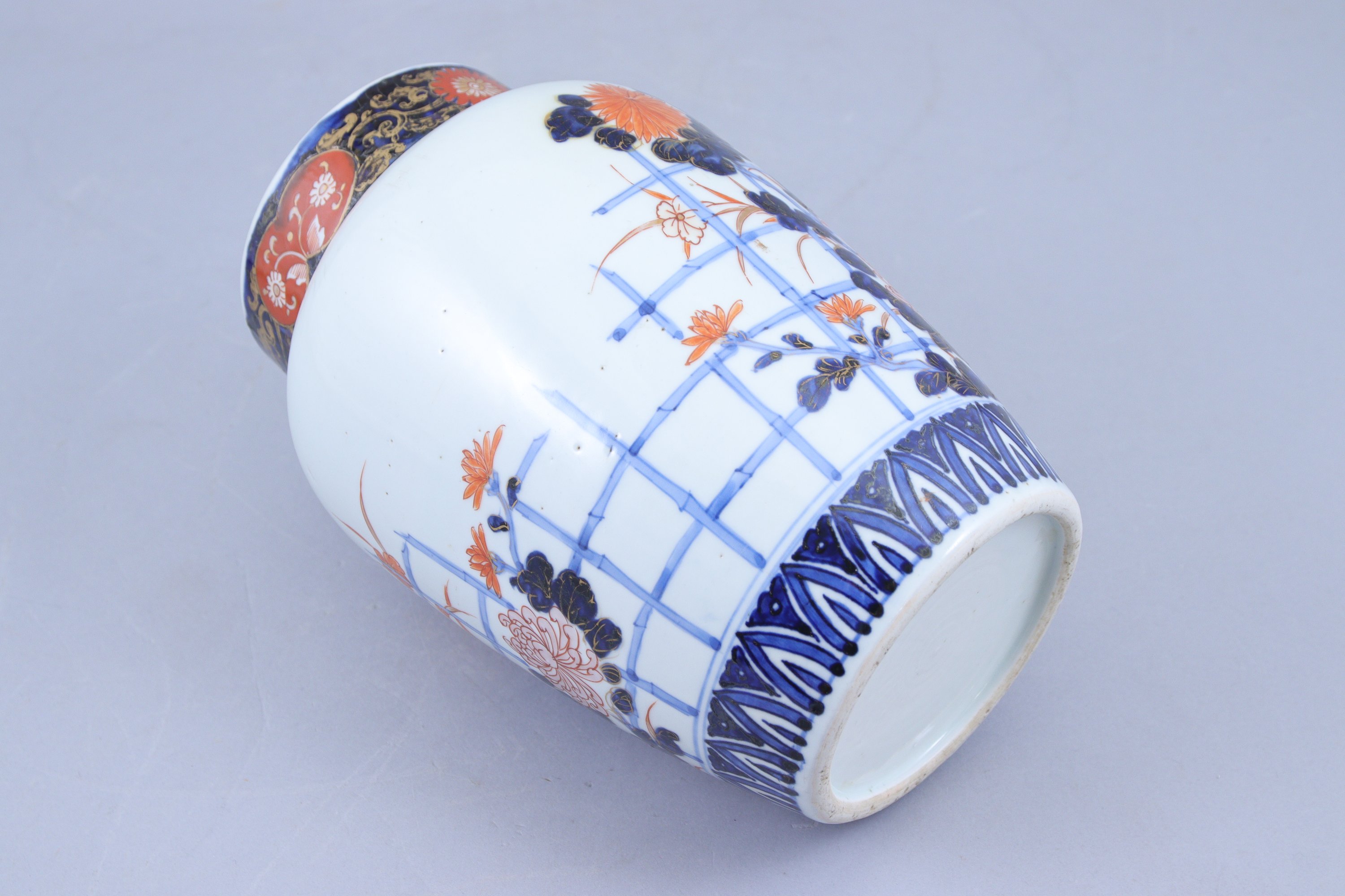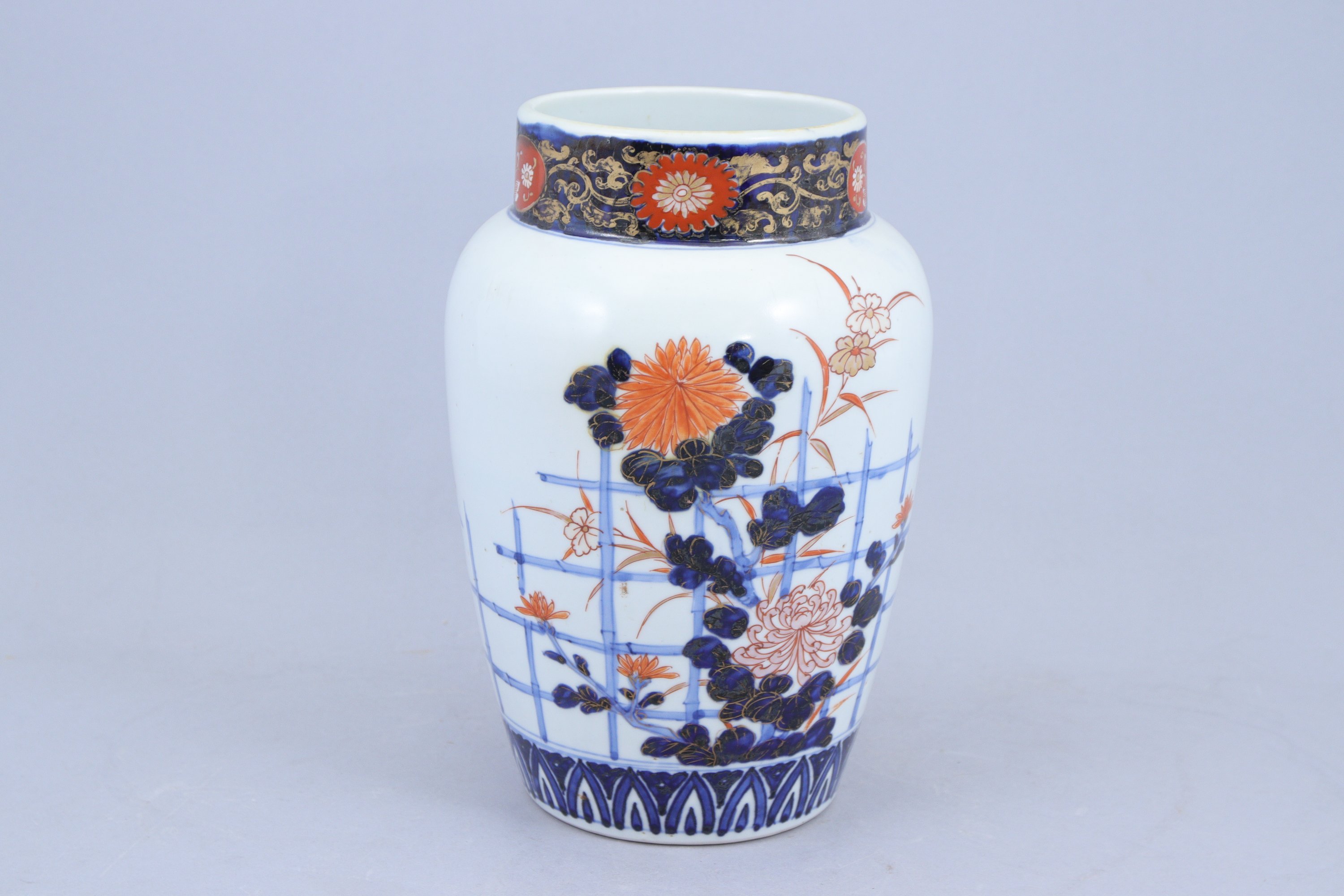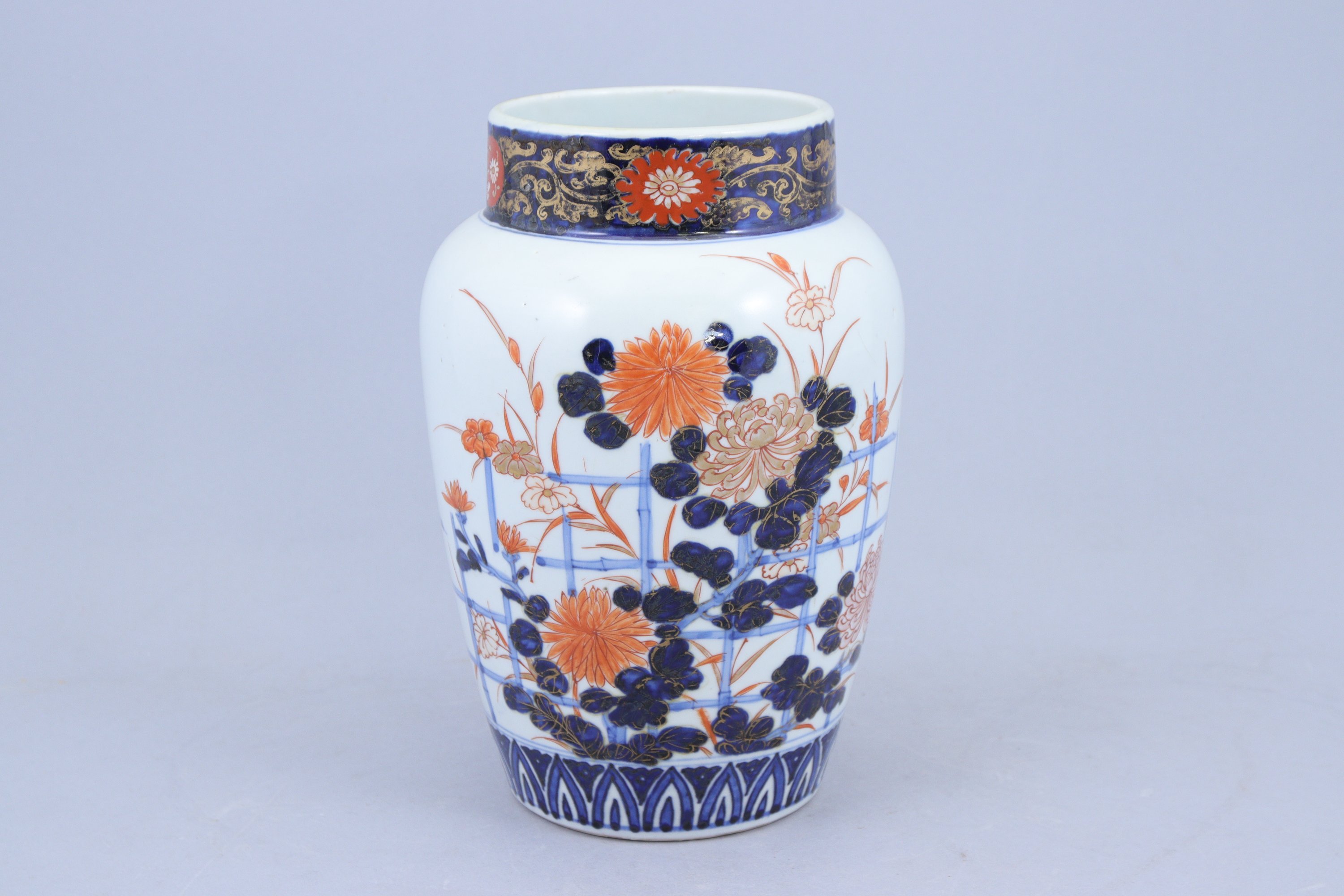 en porcelaine, décoré en bleu sous couverte et émaux rouges et or de chrysanthèmes.