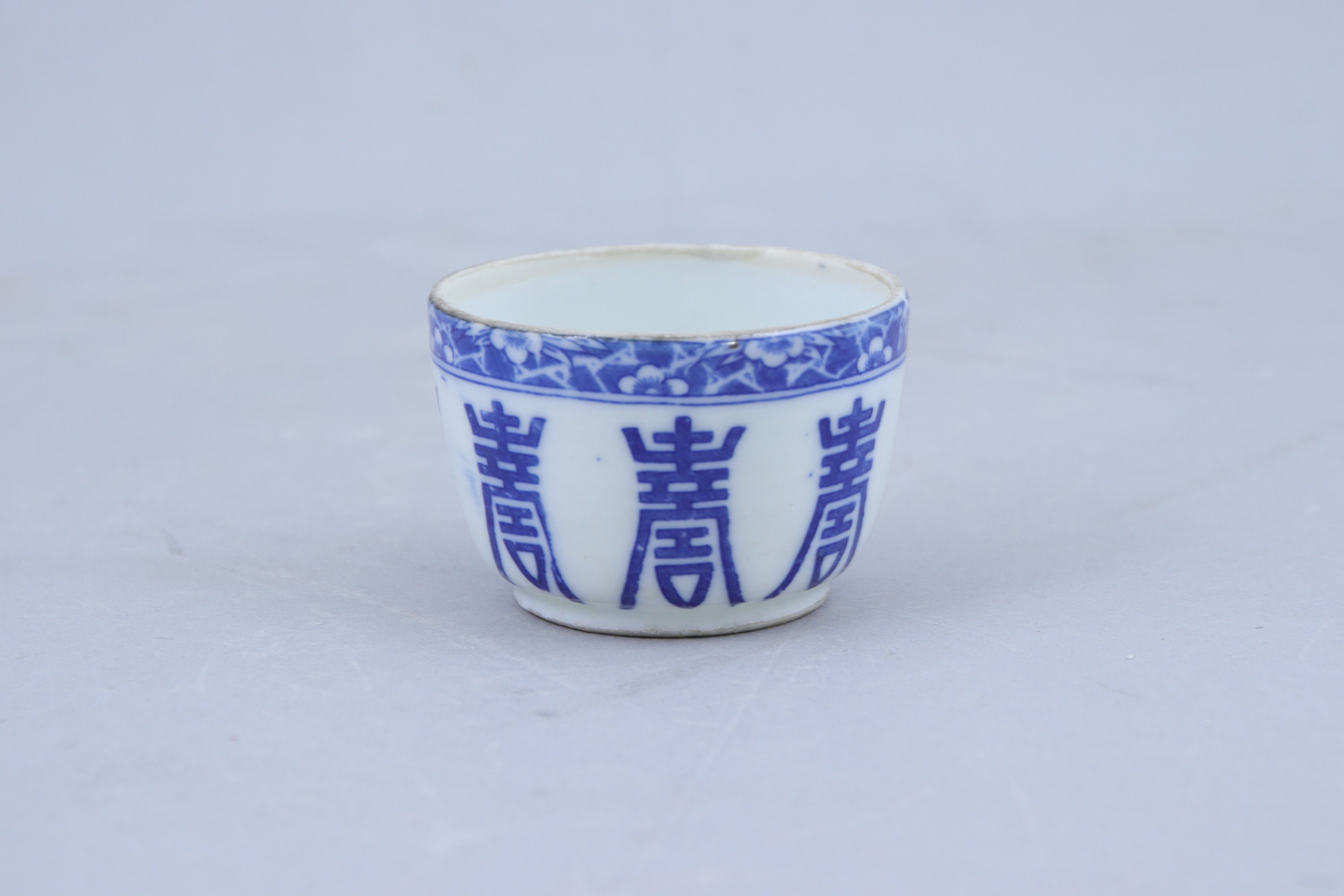Joint : un bol au pochoir à décor de caractères "shou". Haut. 5 Diam. 7 cm.