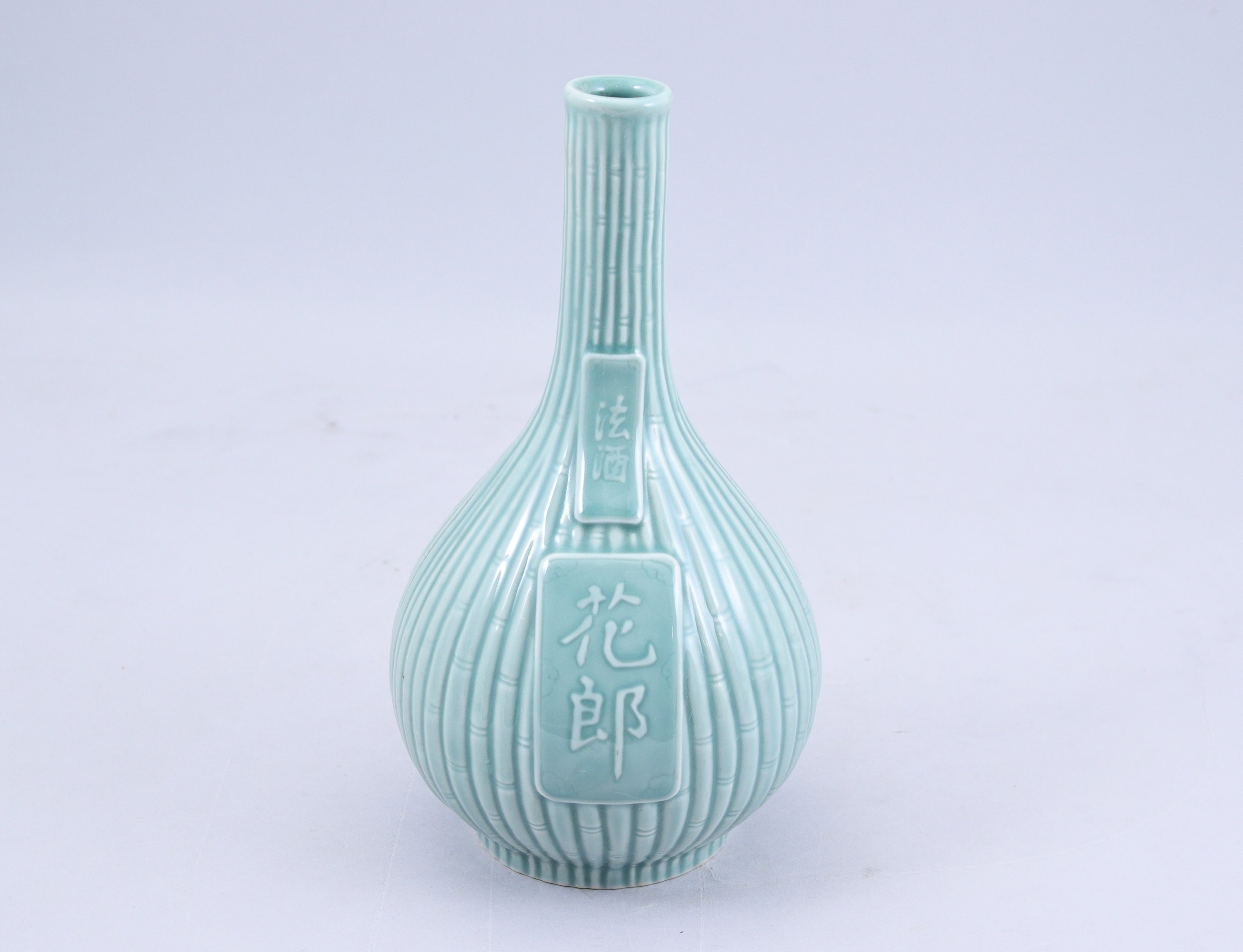 - Japon, XXe siècle. Vase en porcelaine, à décor de bambous et cartouche caligraphié. Haut. 24 cm.