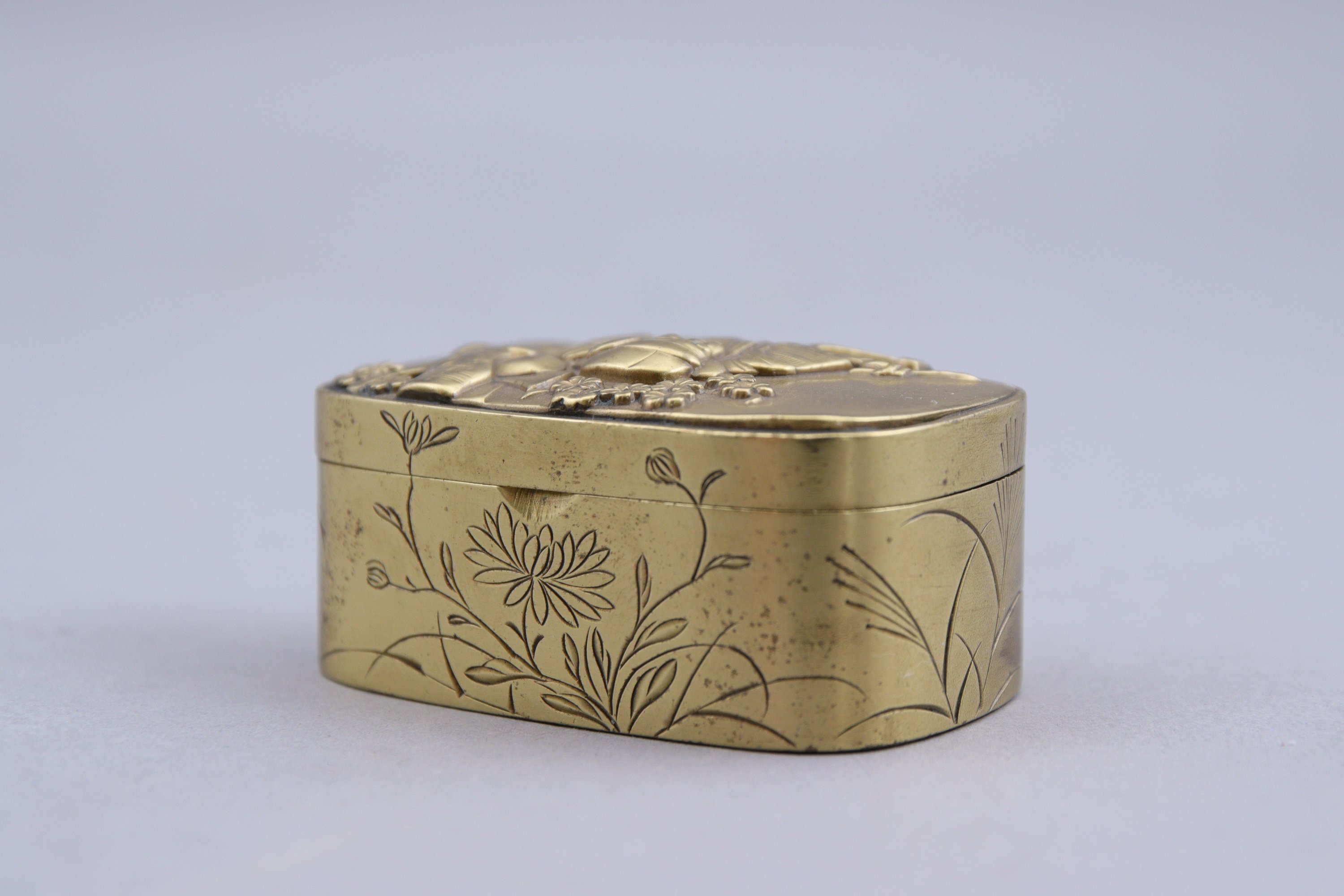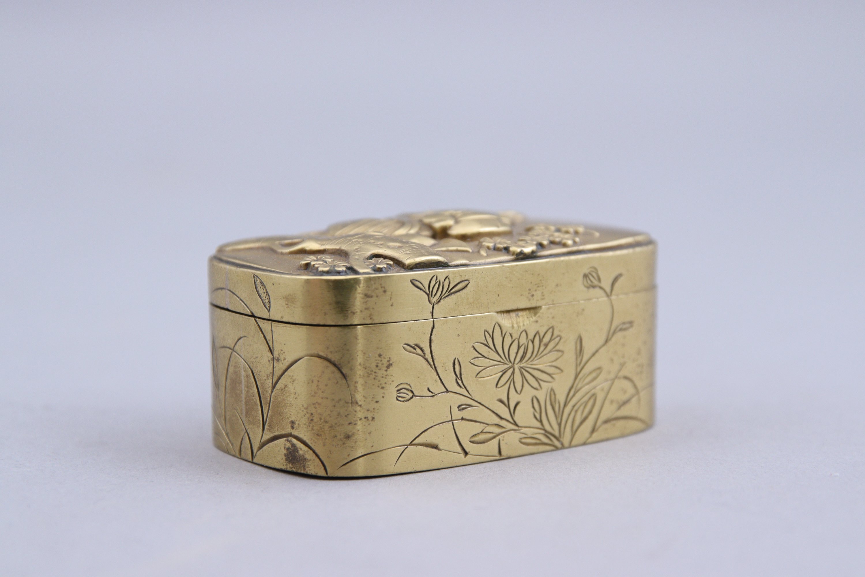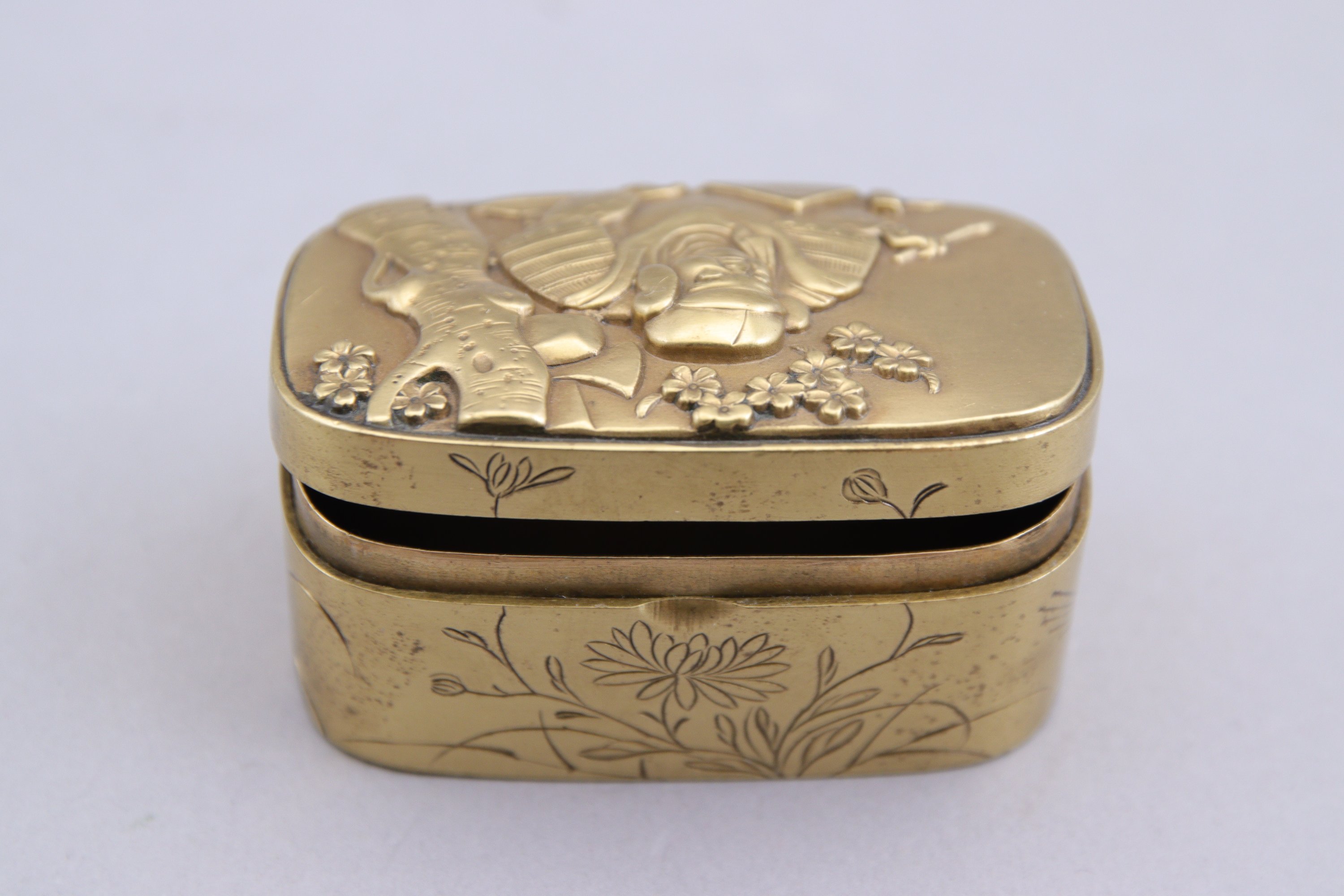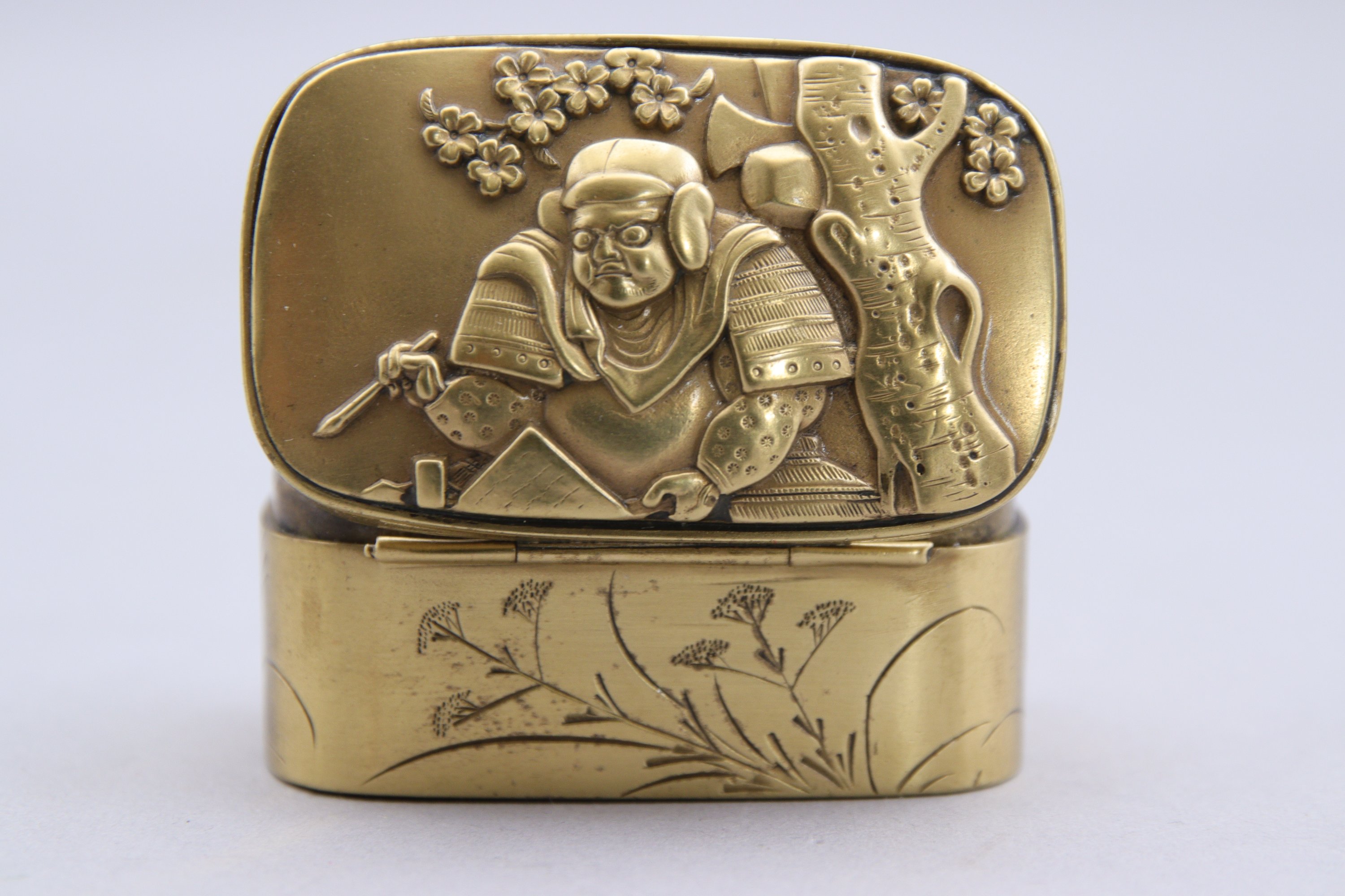 en sentoku décoré en relief d'un samouraï.