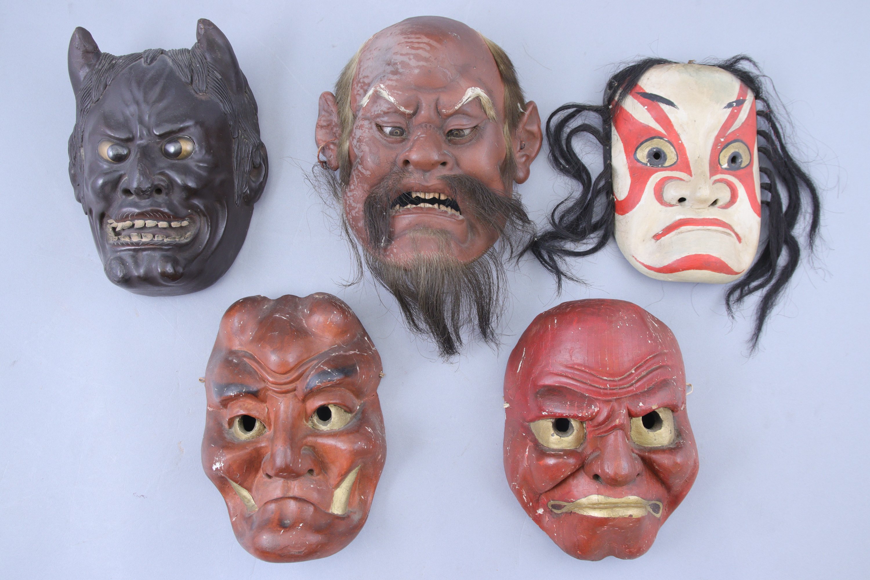 Ensemble de 13 masques décoratifs dans le goût de masques de Nô