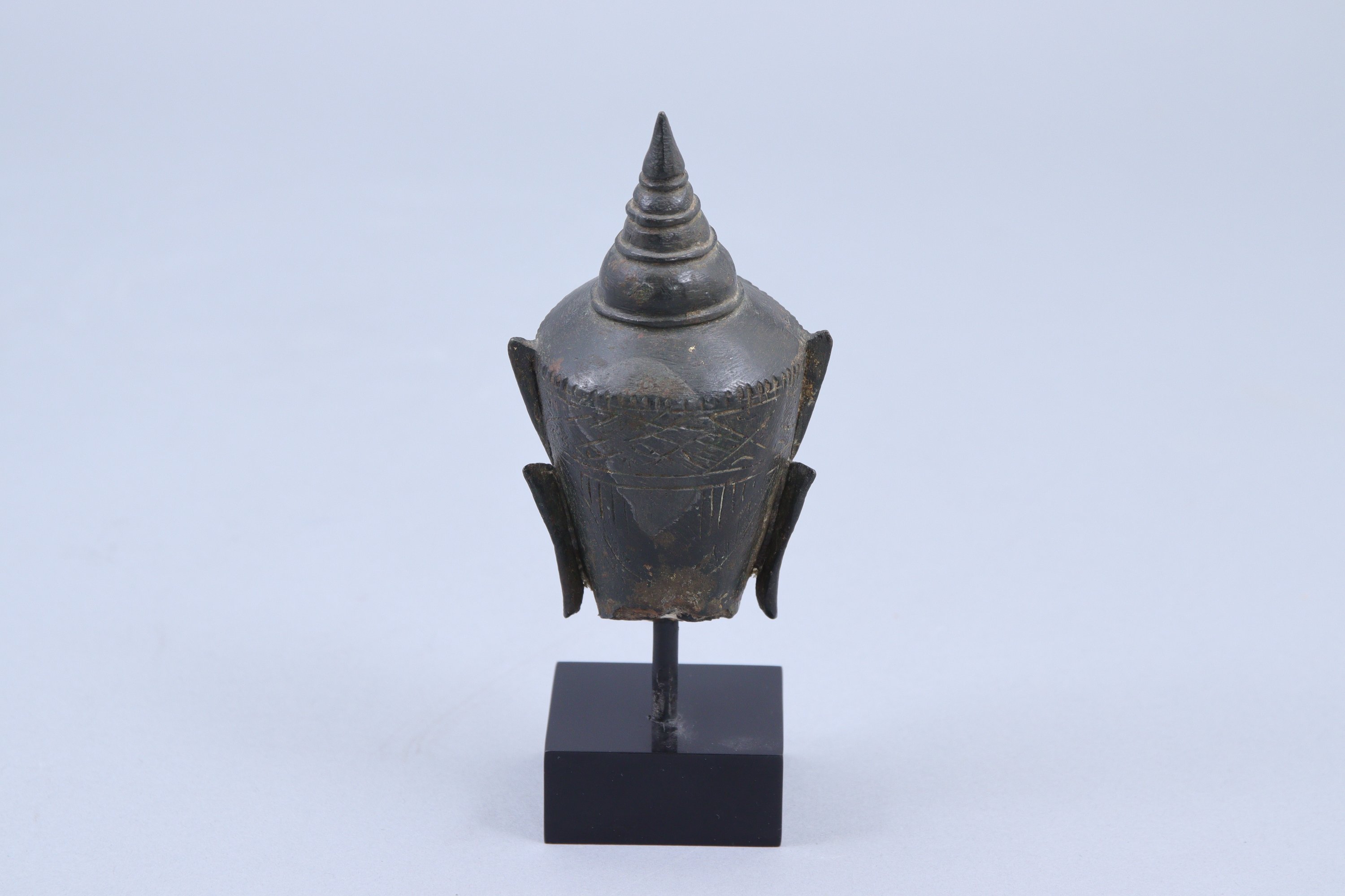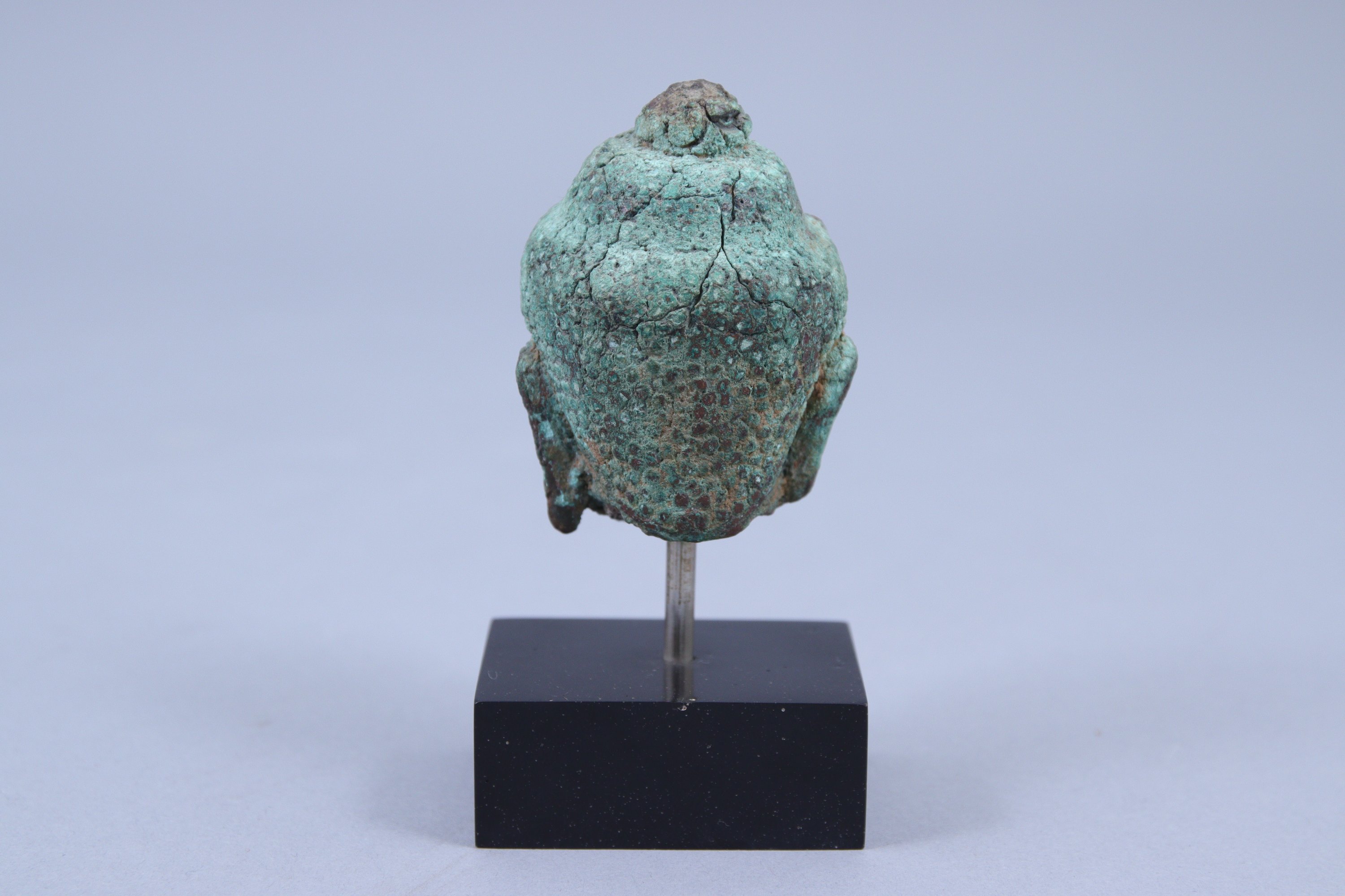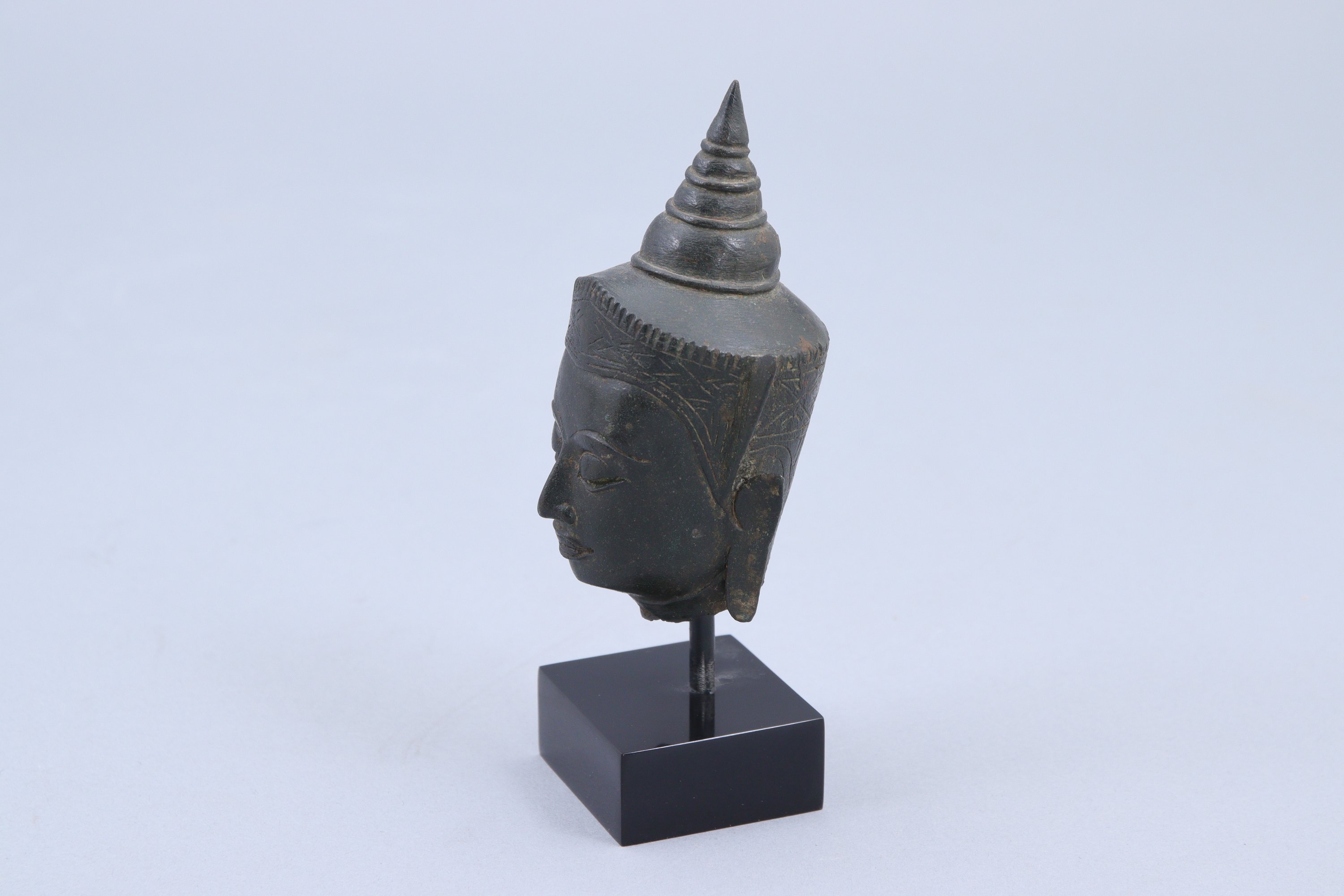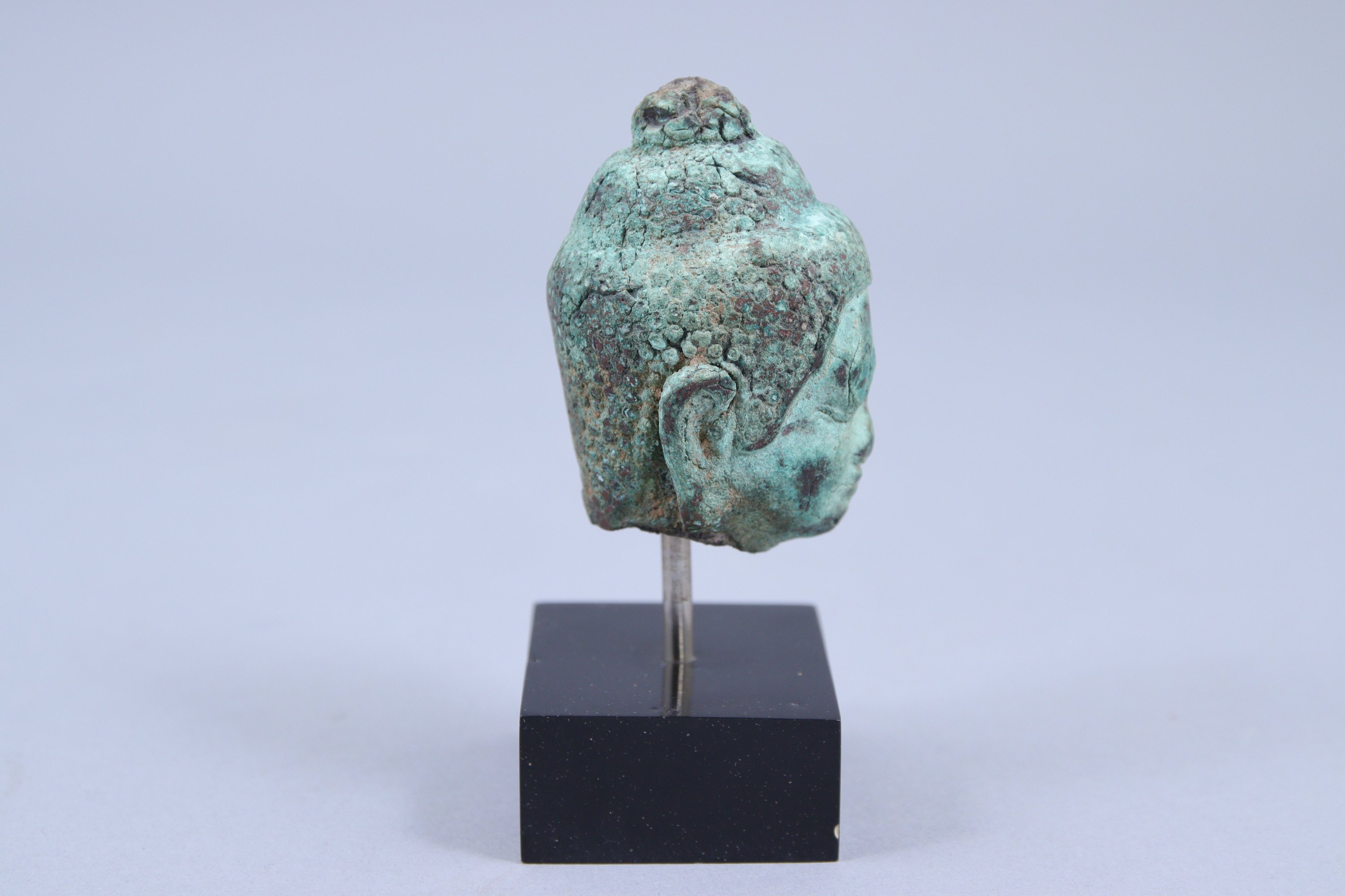 en bronze, l'une à patine verte, la coiffe bouclée et surmontée de l'ushnisha, l'autre à patine brune ornée d'une tiare.