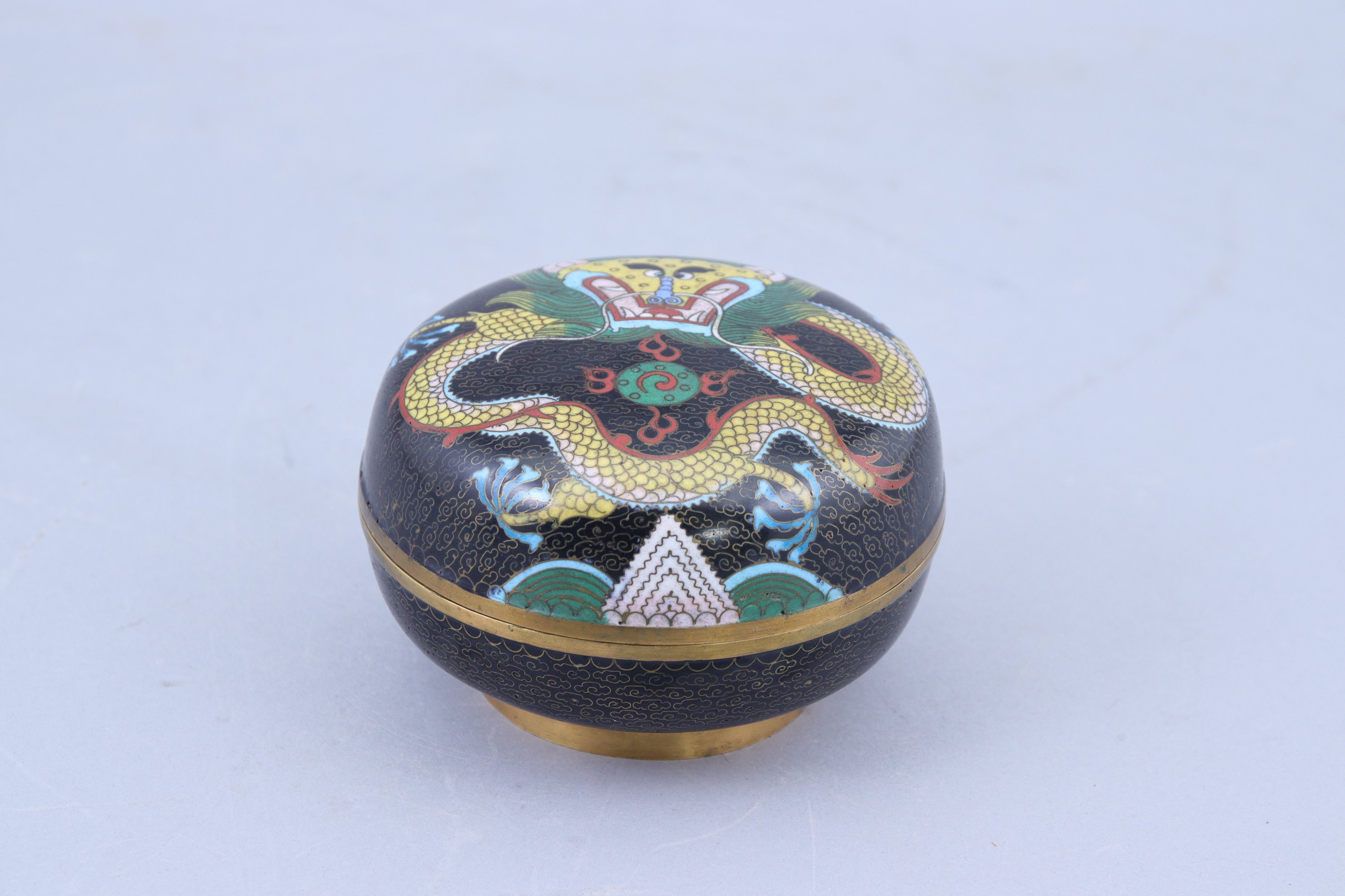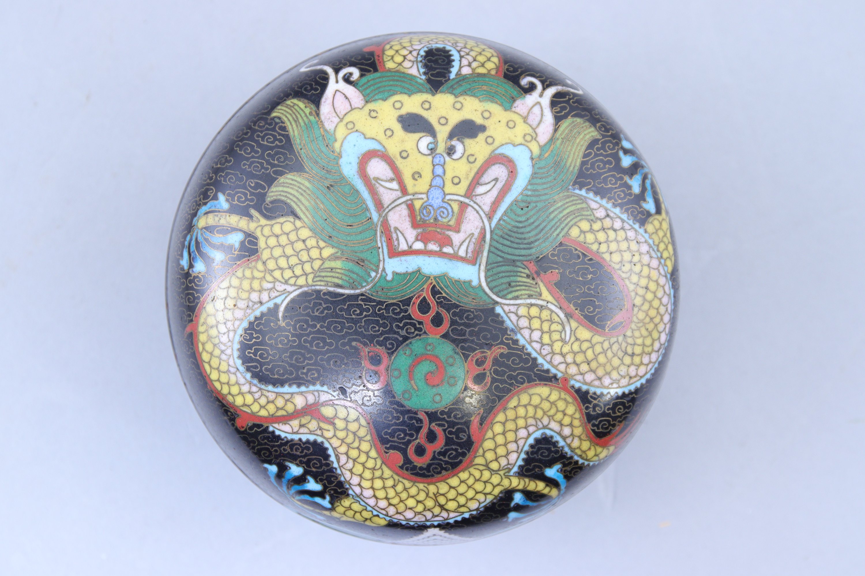 en bronze et émaux cloisonnés à décor de dragon de face.