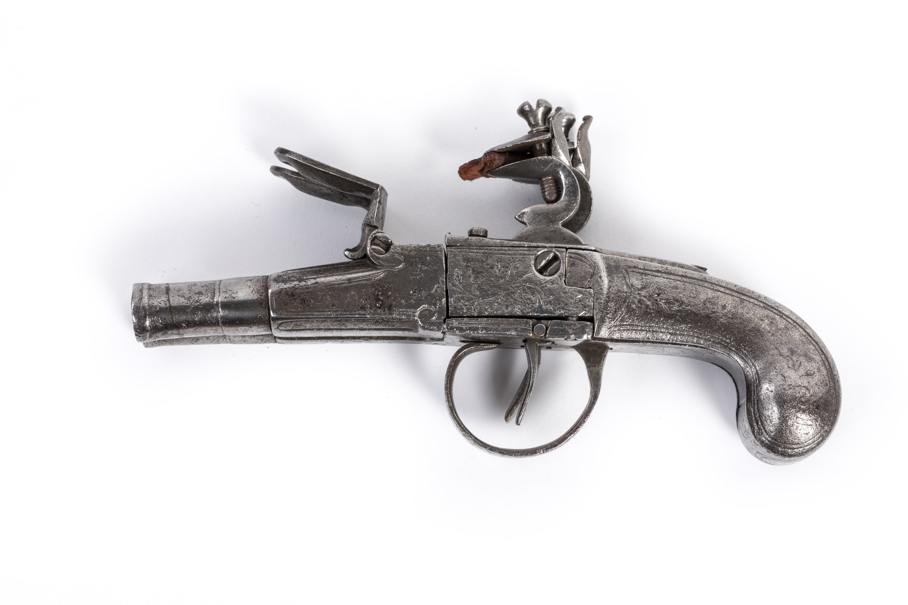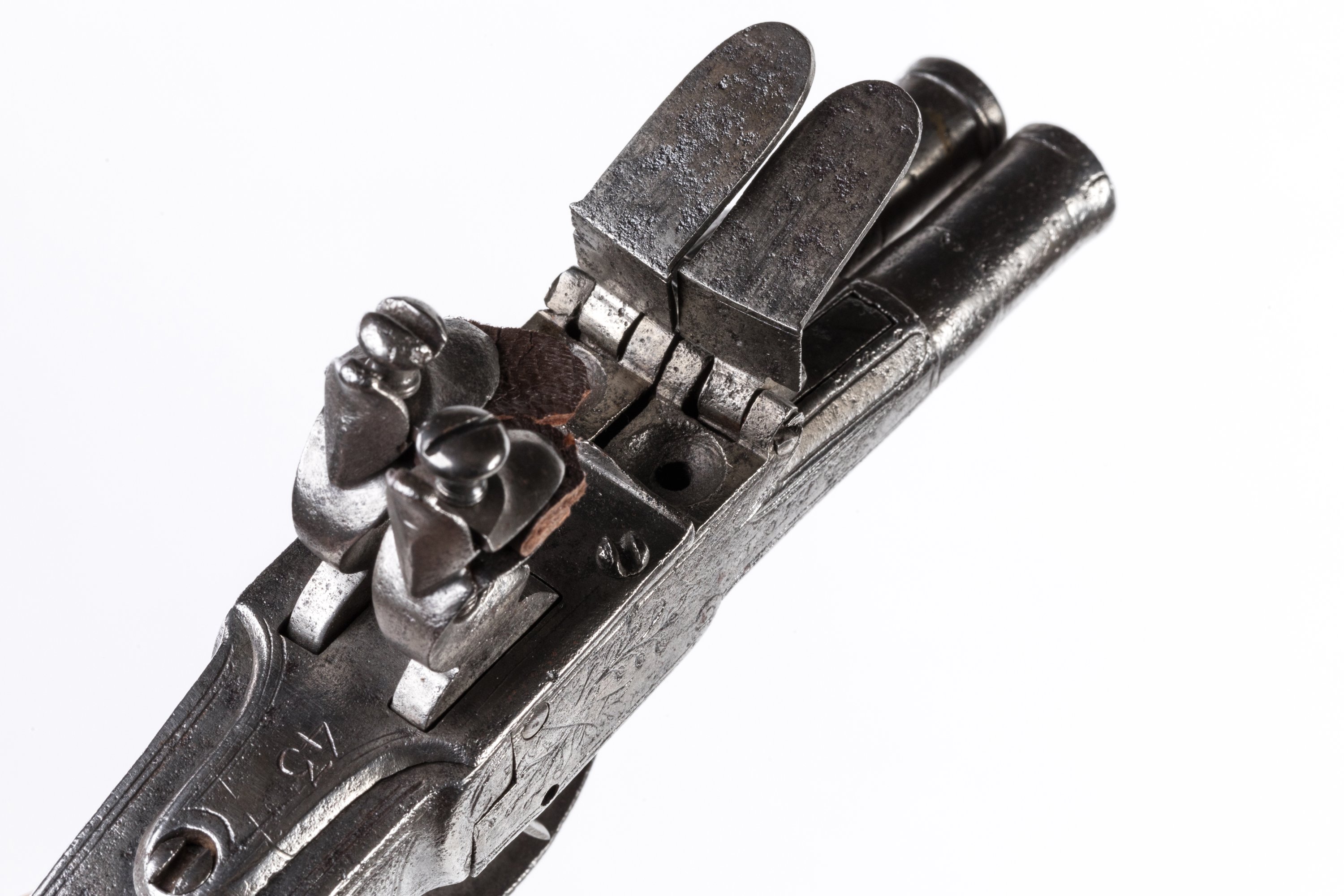 Canons ronds à balles forcées. Coffre gravé « LONDON », queue de culasse frappée 43 . Crosse décorée en suite.