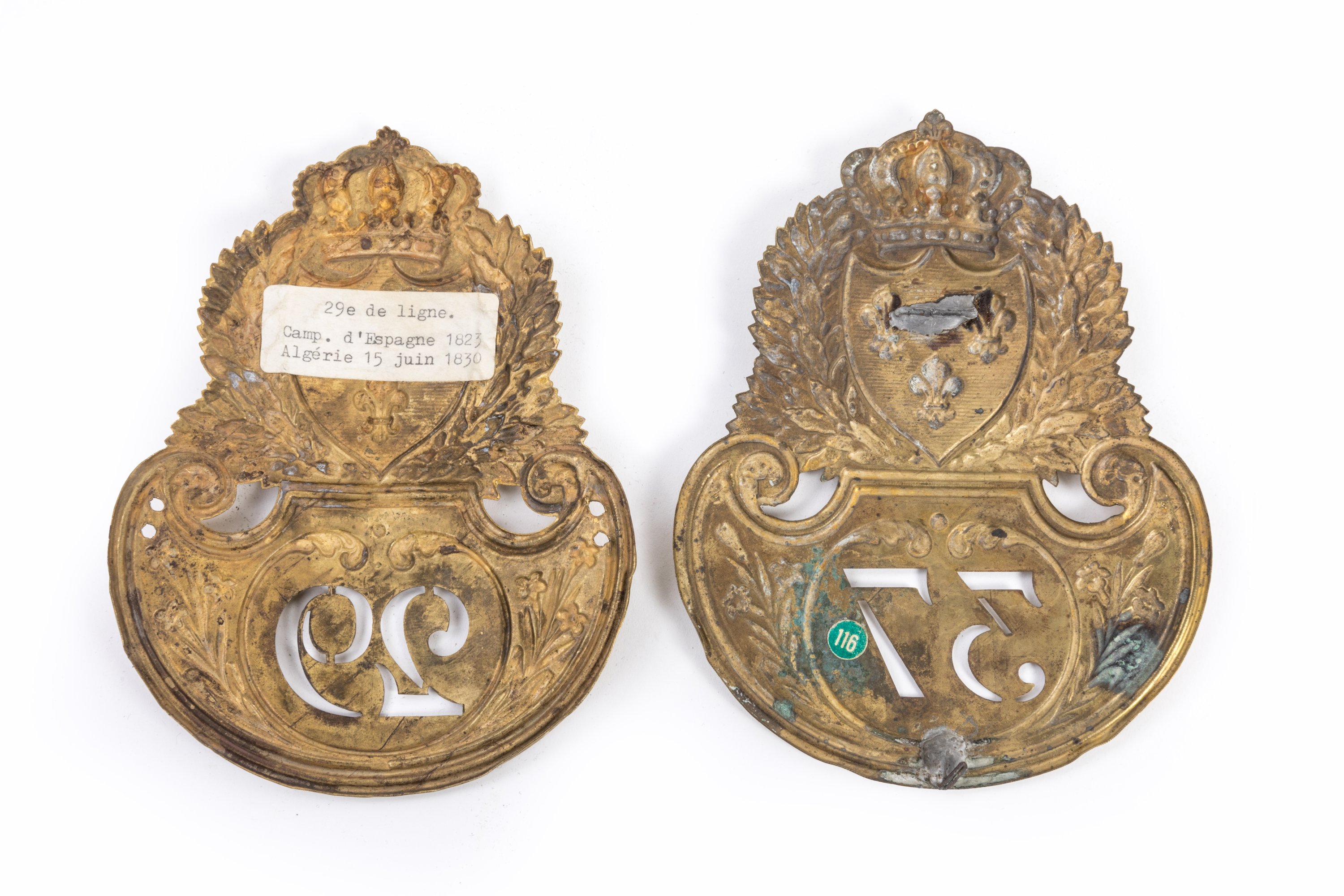 Deux plaques de shako aux armes de France :