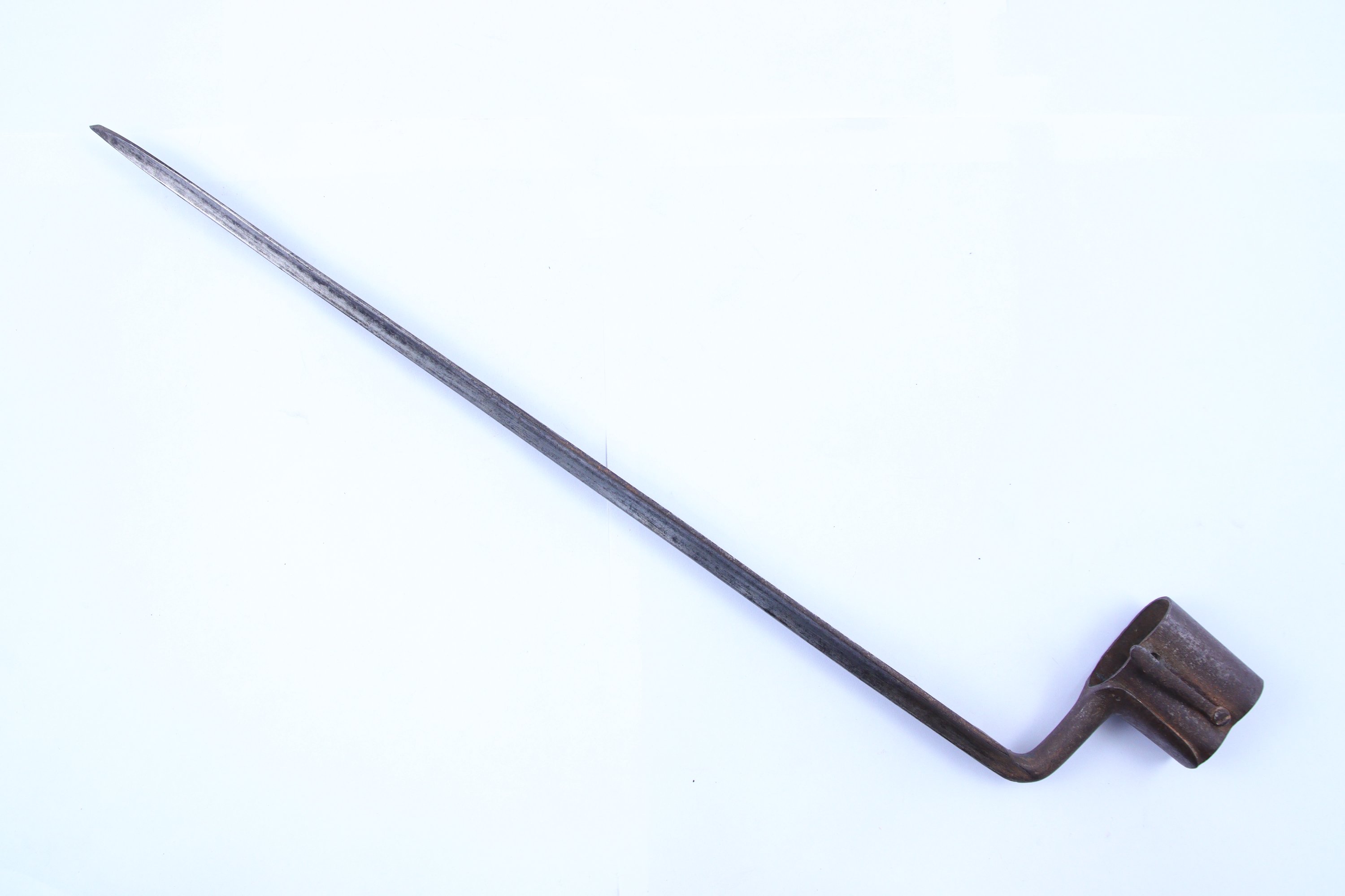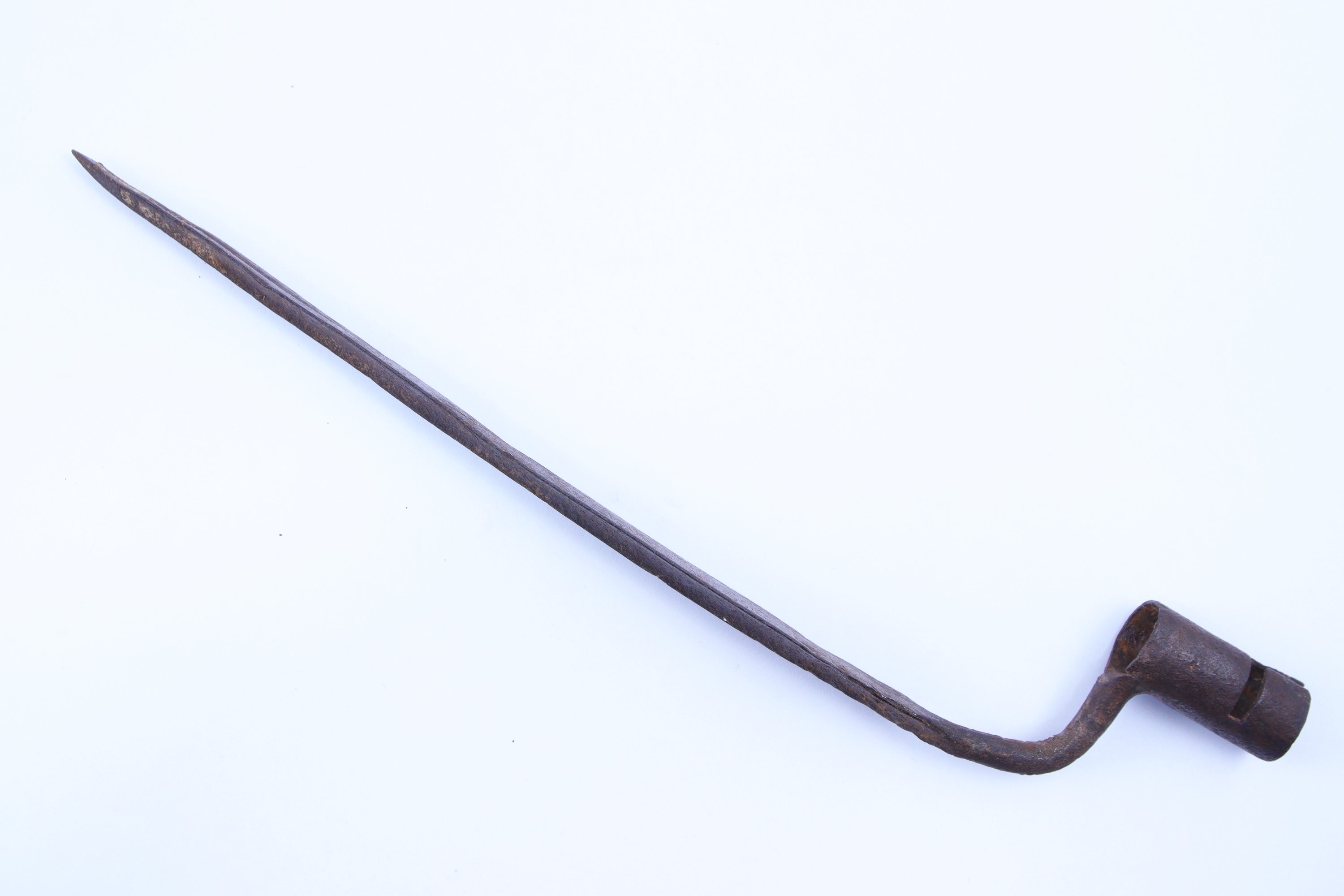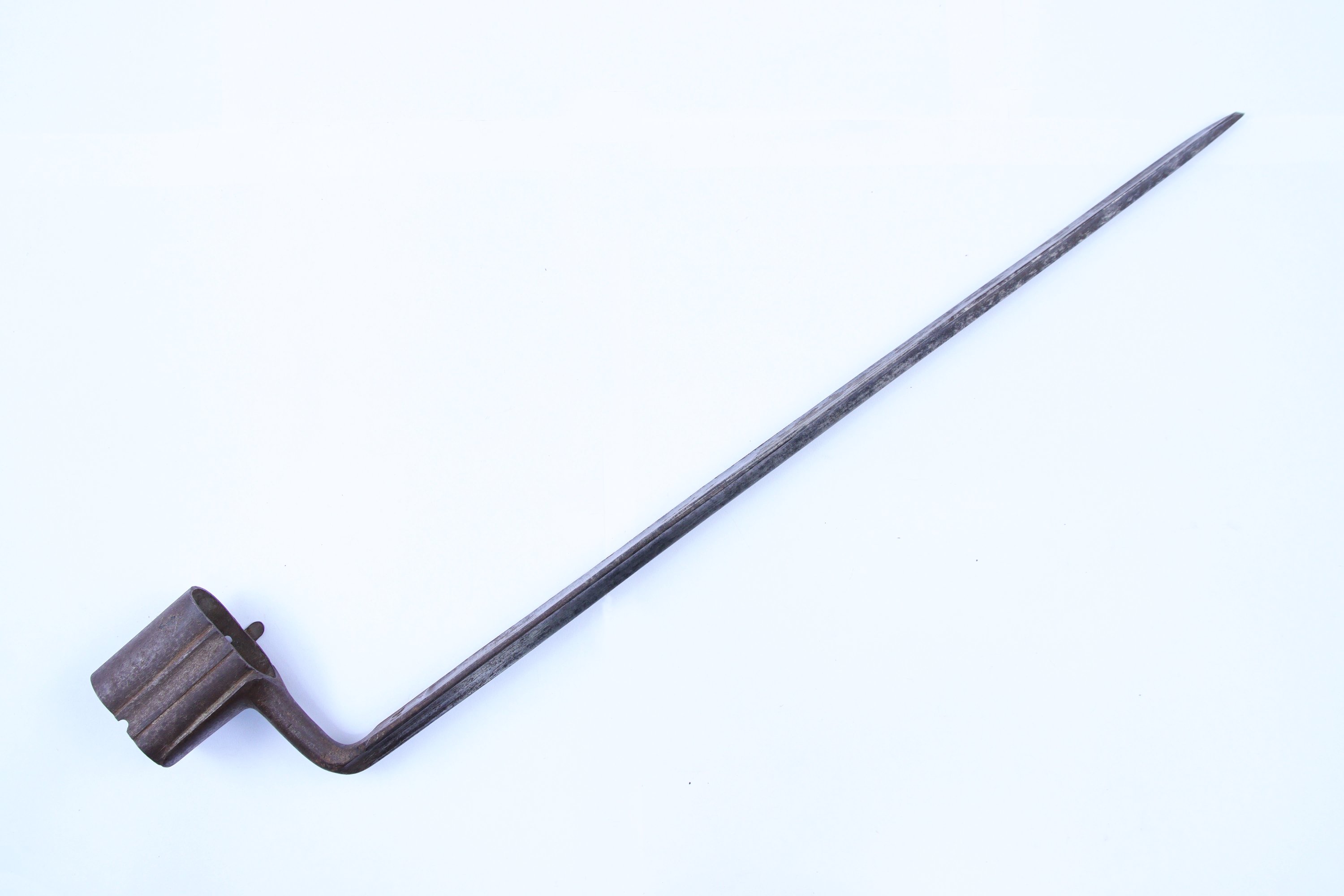 - Trois baïonnettes à douille, l'une sans virole, la seconde à virole et la dernière de cadet (XVIIIe siècle) ;