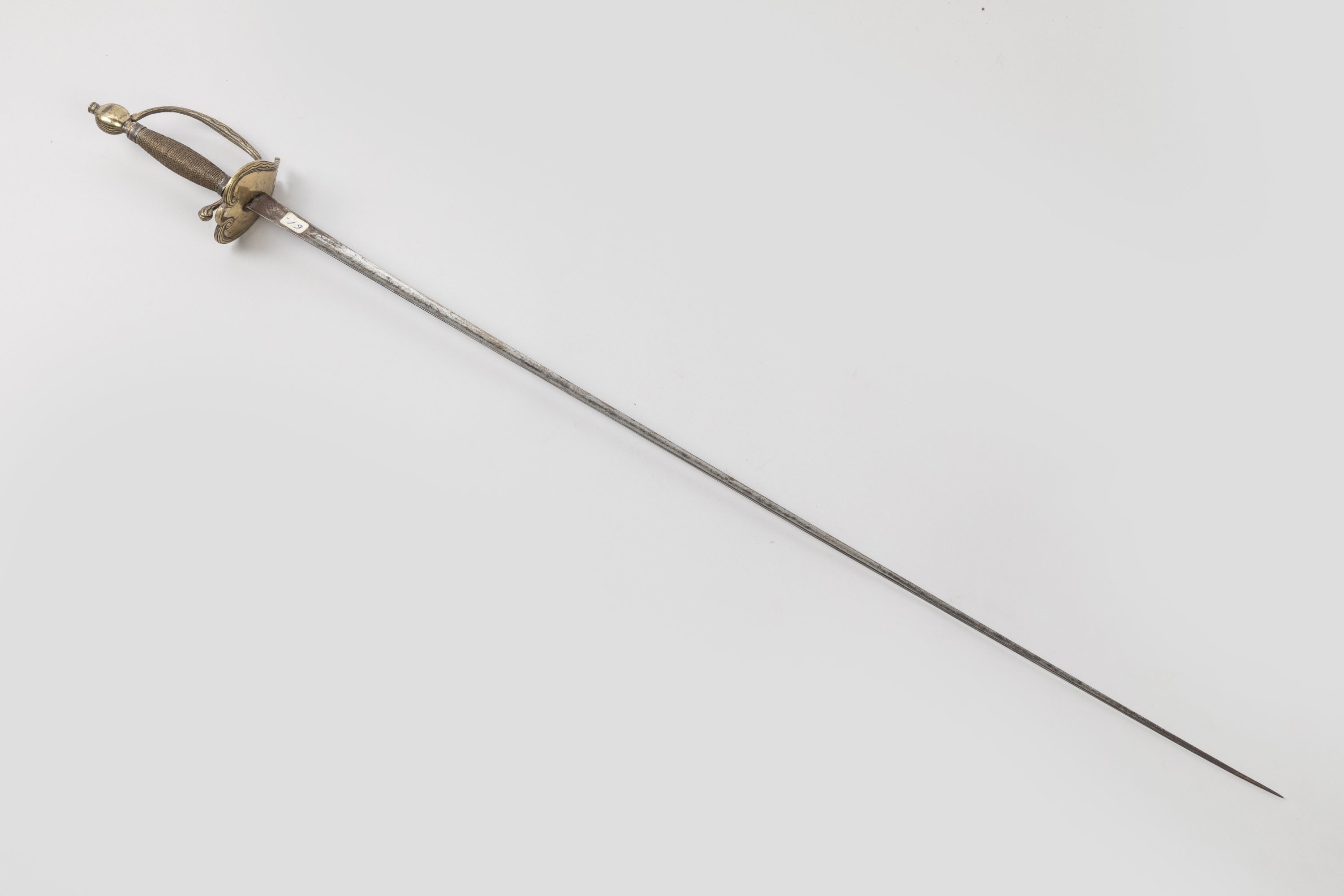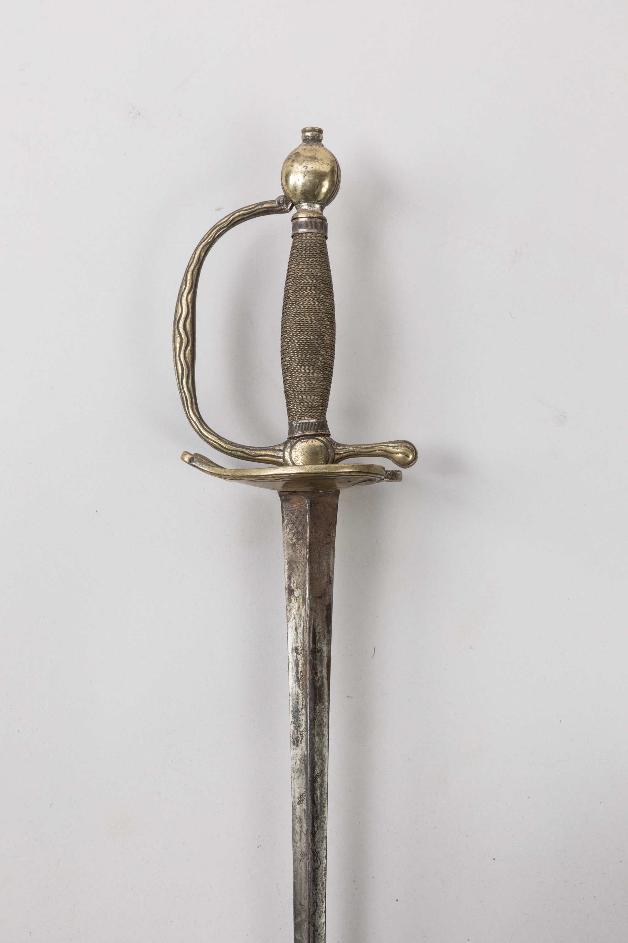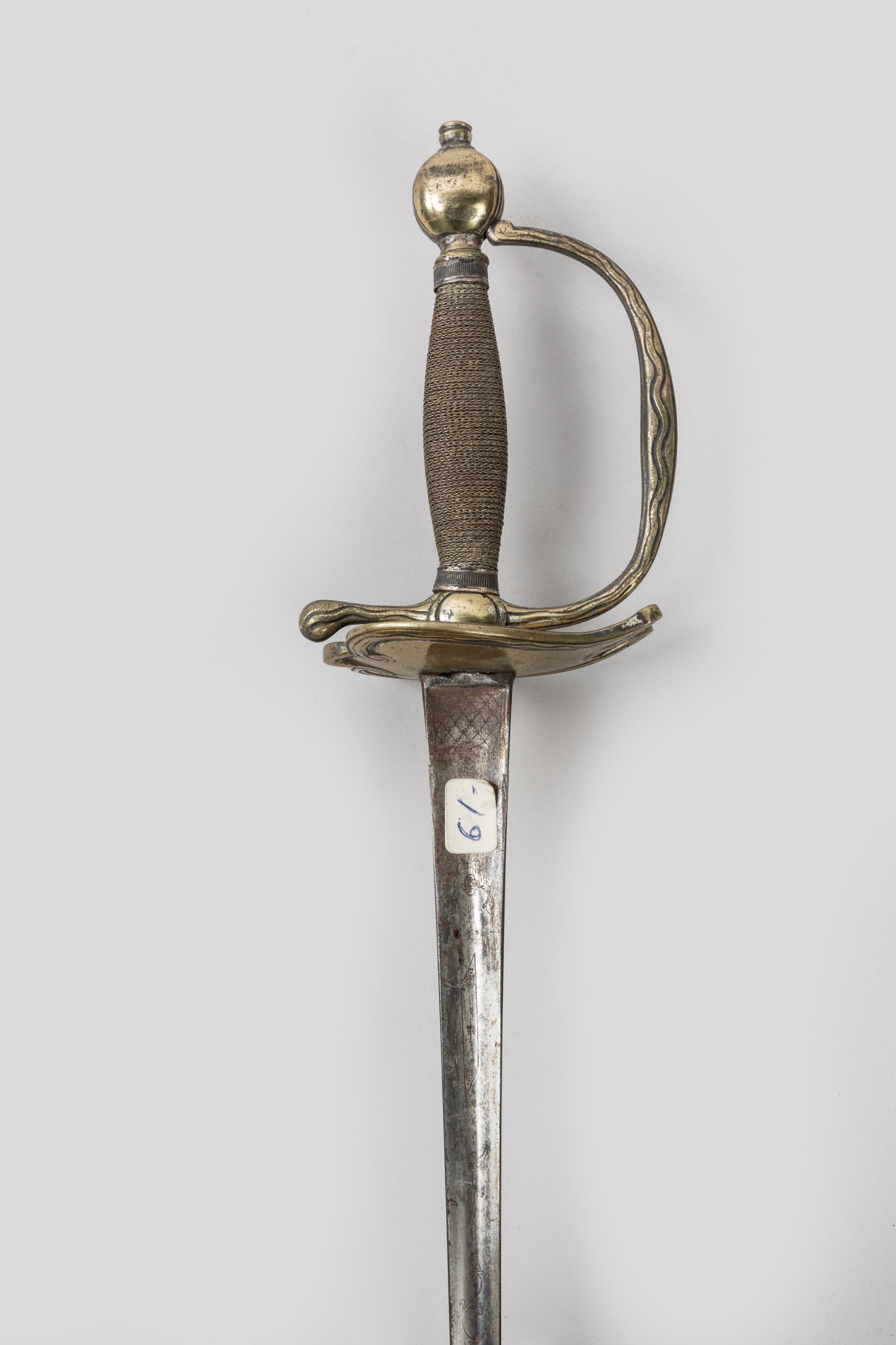 Lame triangulaire gravée au quart. Traces d’argenture.