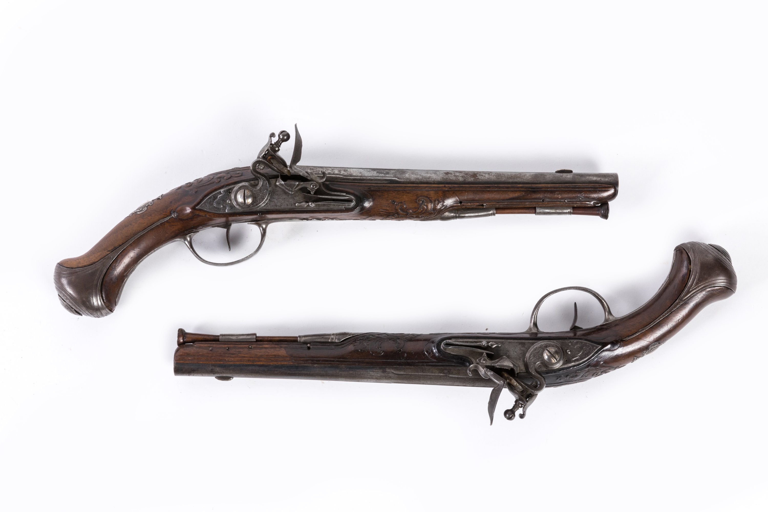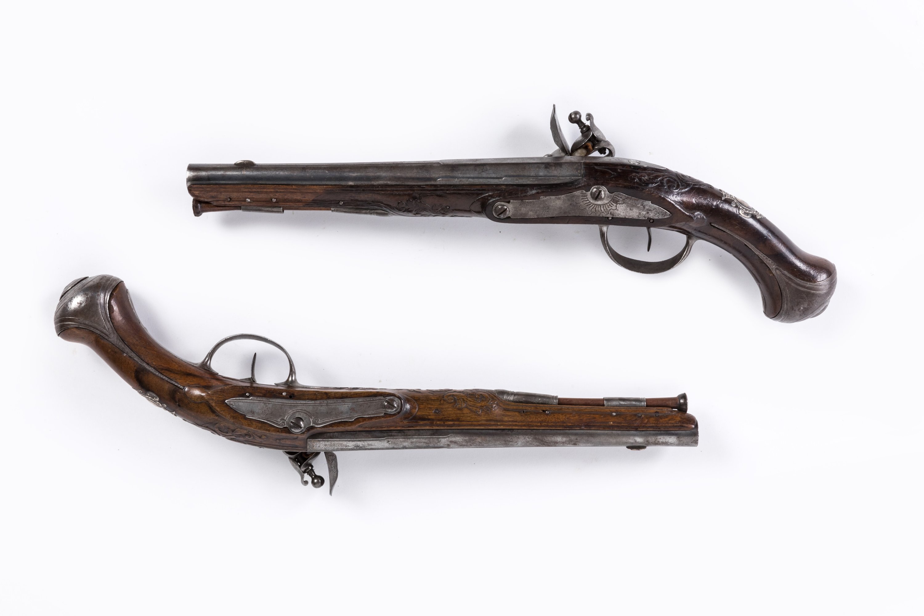 Paire de pistolets à silex d’officier par Jean Griottier à...