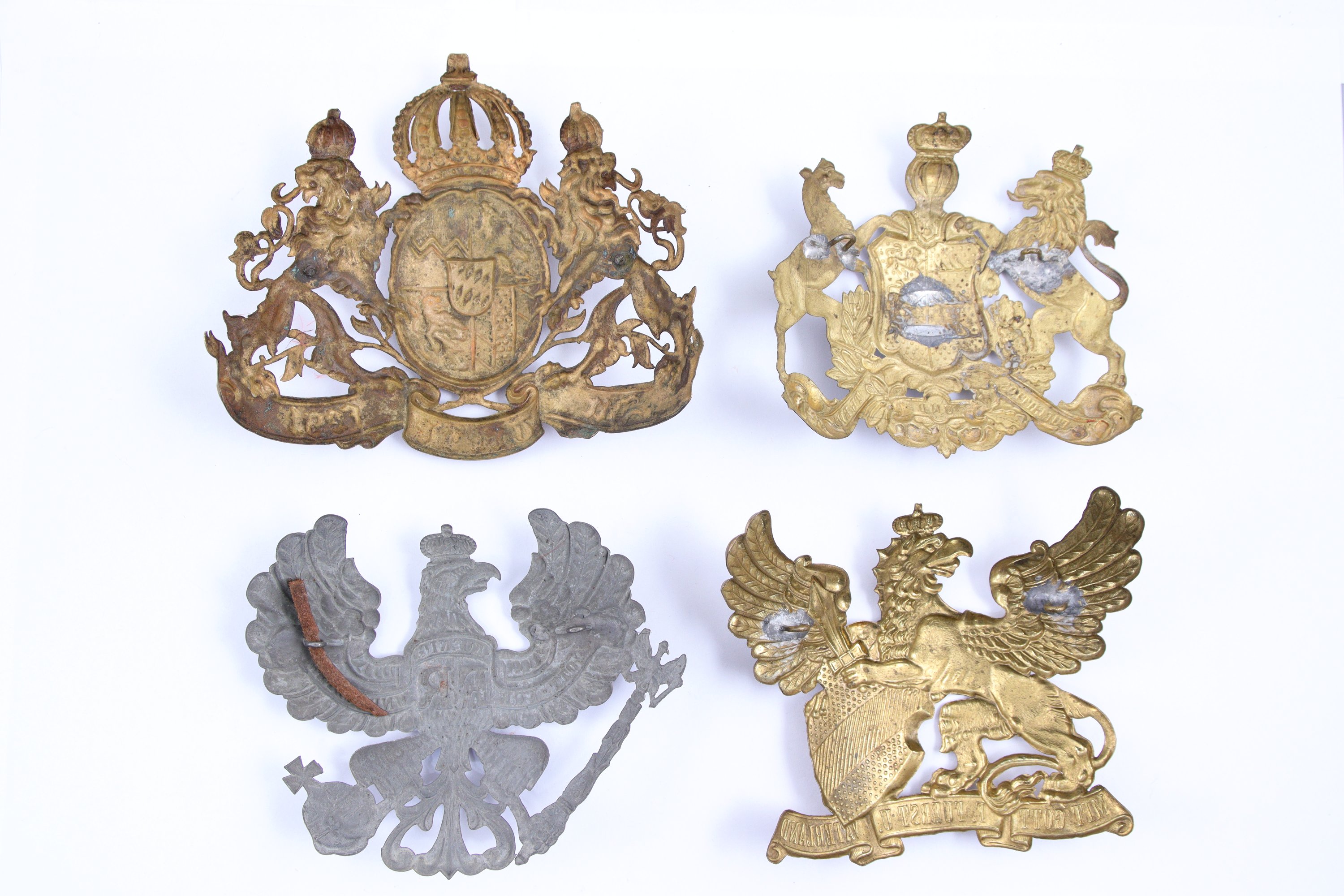 Ensemble de quatre cuivreries allemandes pour casque à pointe :
