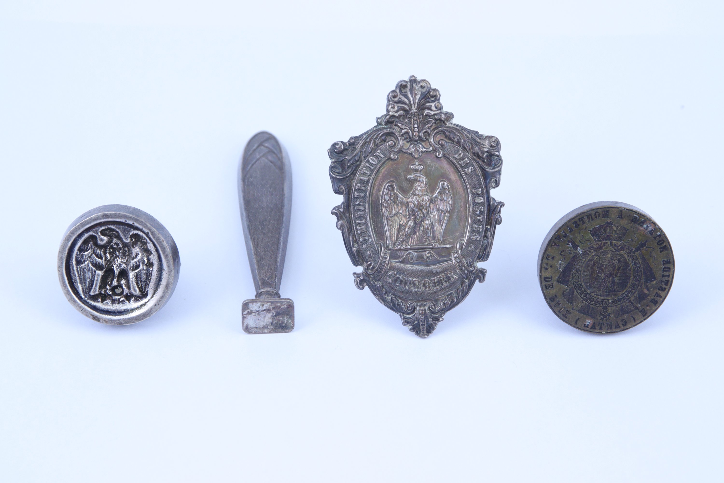 - Plaque de courrier de l’administration des Postes, en laiton argenté, signée d'Ameling. Second Empire.