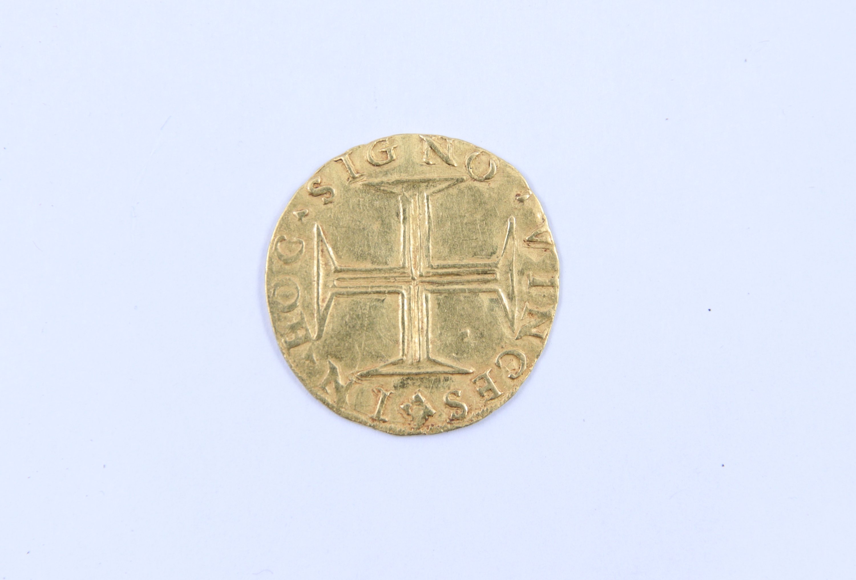 SEBASTIANVS : I :REX :PORTVG. Ecu du Portugal* couronné. R/. (fleuron) IN : HOC : SIGN : VINCES. Par ce signe tu vaincras. Croix de Jérusalem.