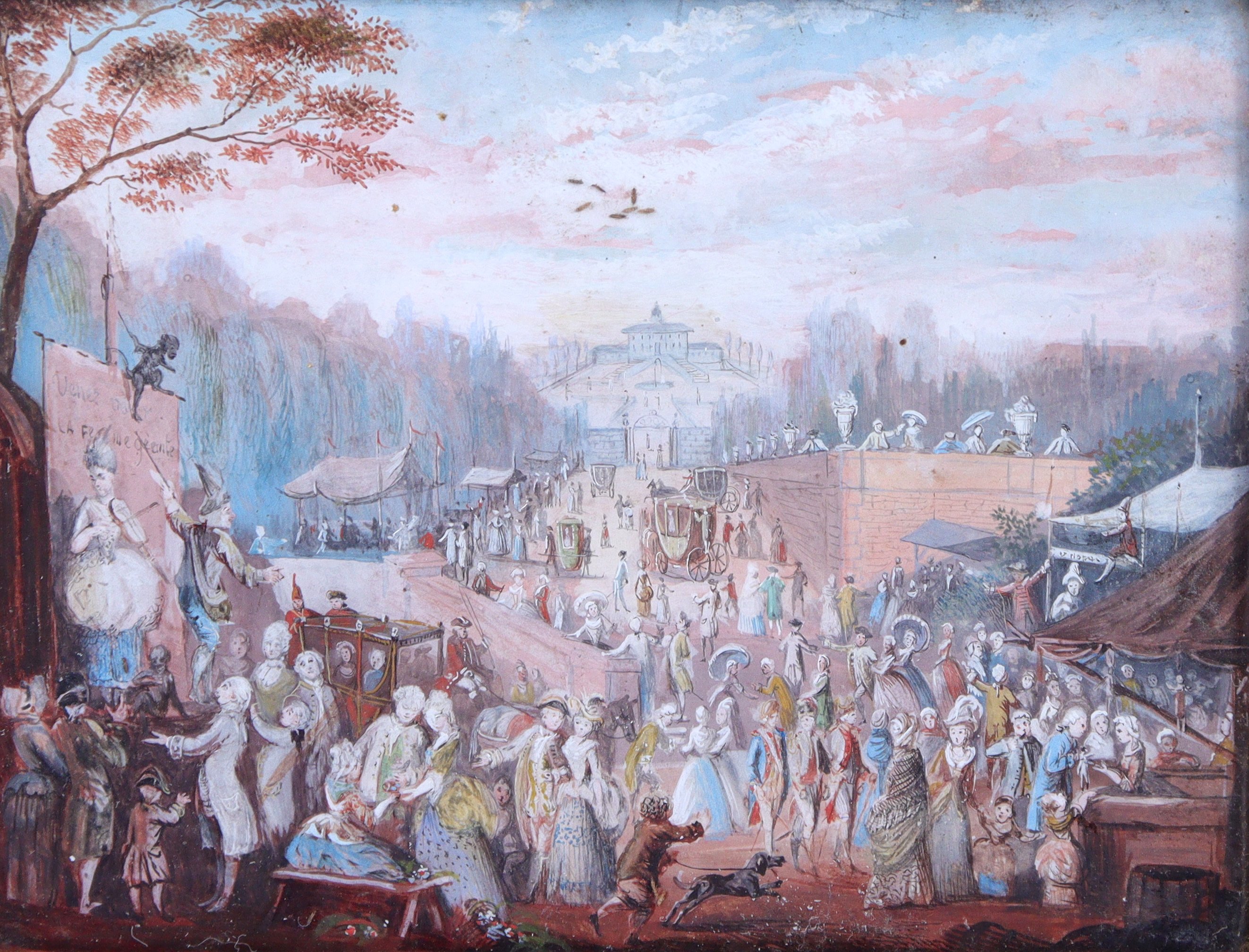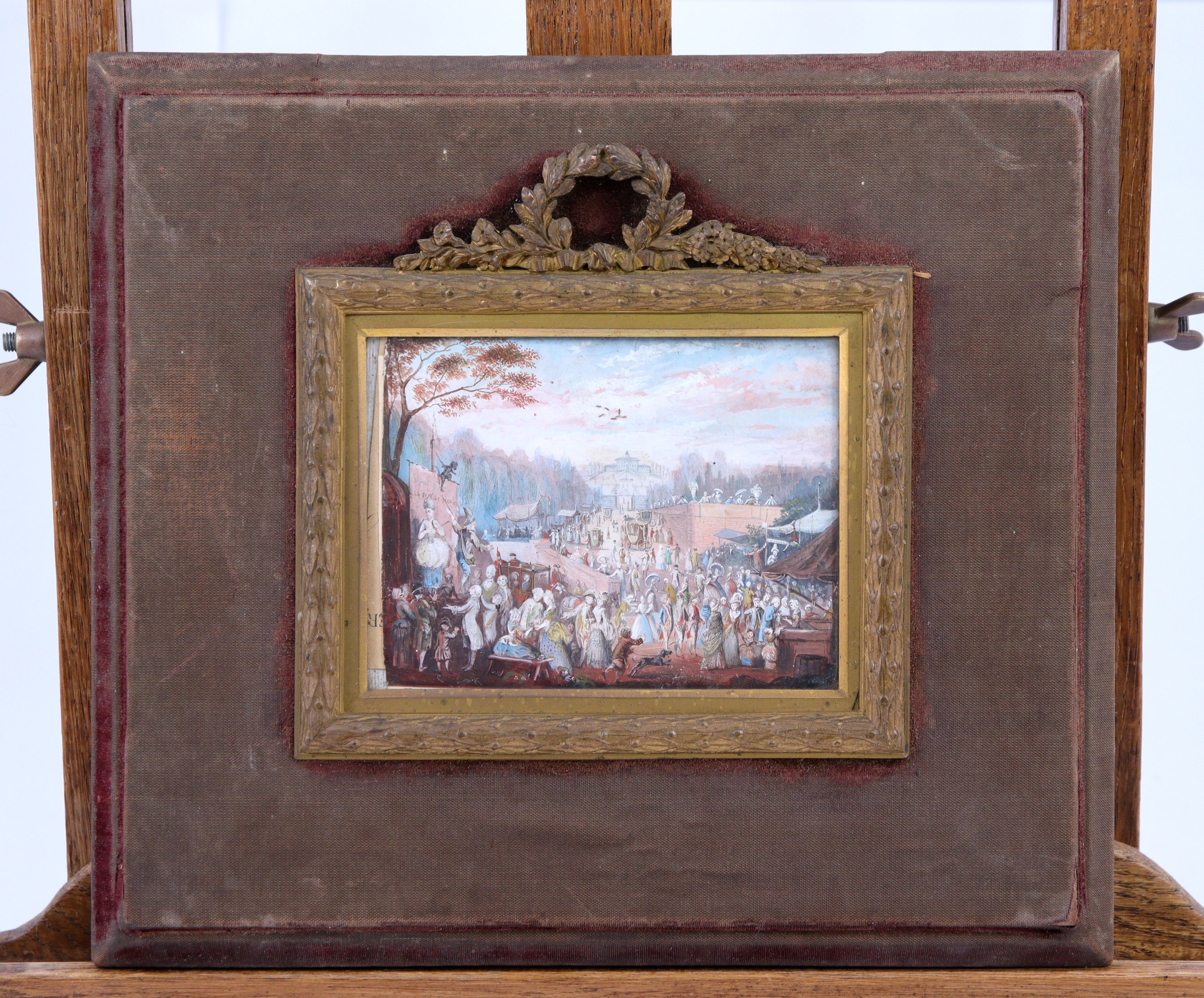 Dans un cadre recouvert d'un velours et couronne de lauriers en bronze. Haut. 21 Larg. 24 cm.