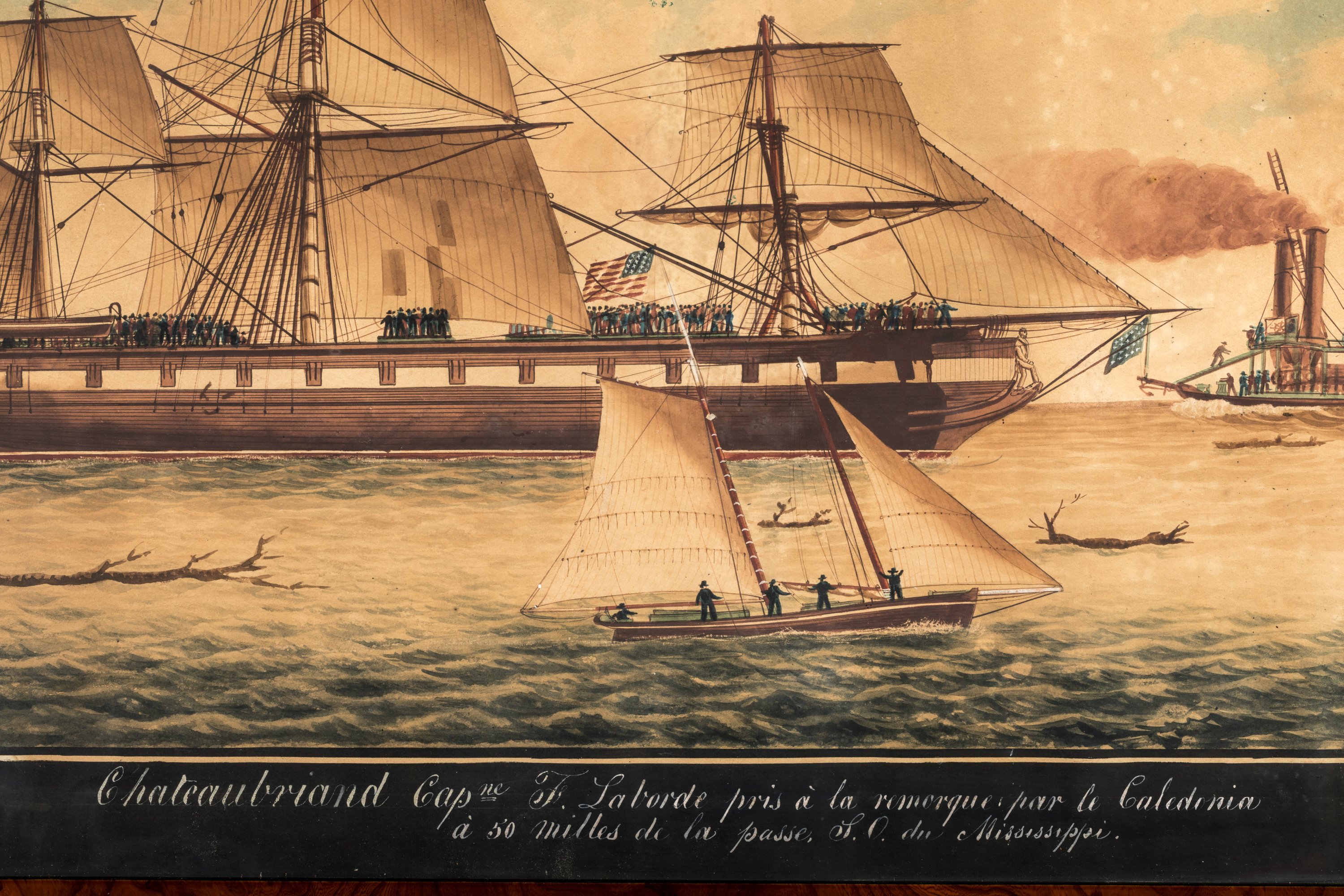- "Chateaubriand Capne F. Laborde pris à la remorque par le Caledonia à 50 miles de la passe SO du Mississipi", signé "Evans", située "NO" pour New Orleans et datée "1846".