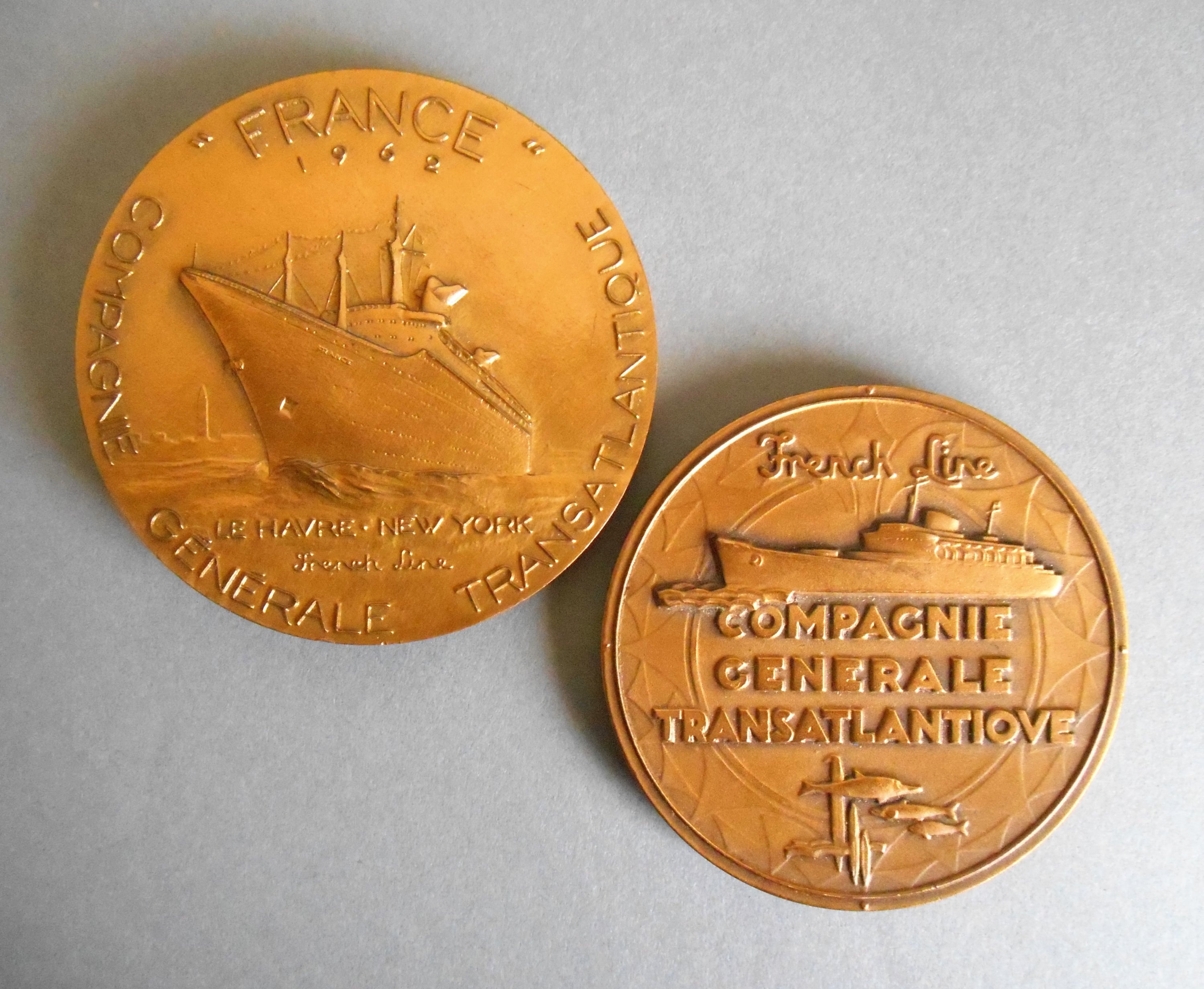- La première du paquebot France de 1962 "elle poursuit son essort technique économique et social". Diam. 55 mm.