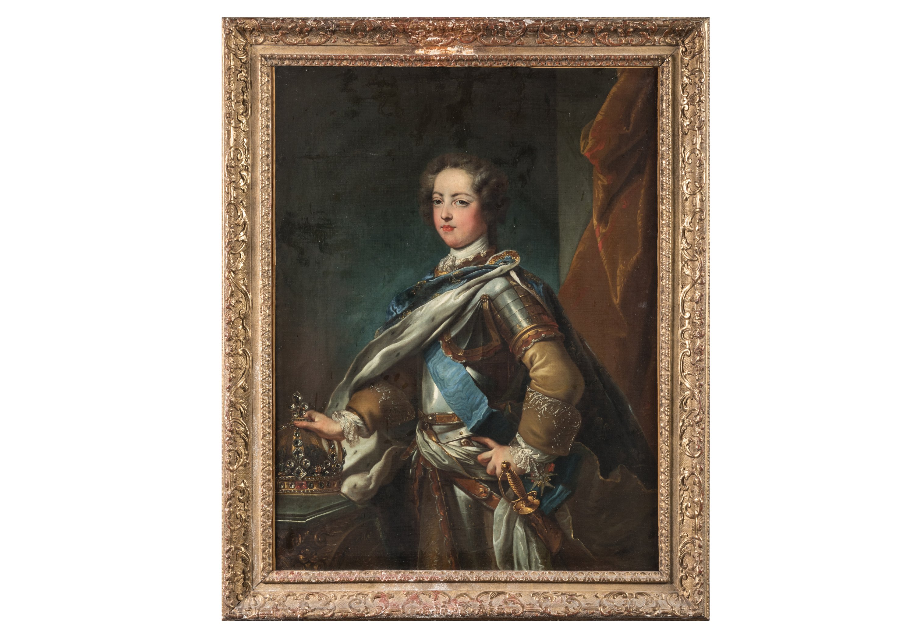 Portrait de Louis XV, la main posée sur la couronne du sacre