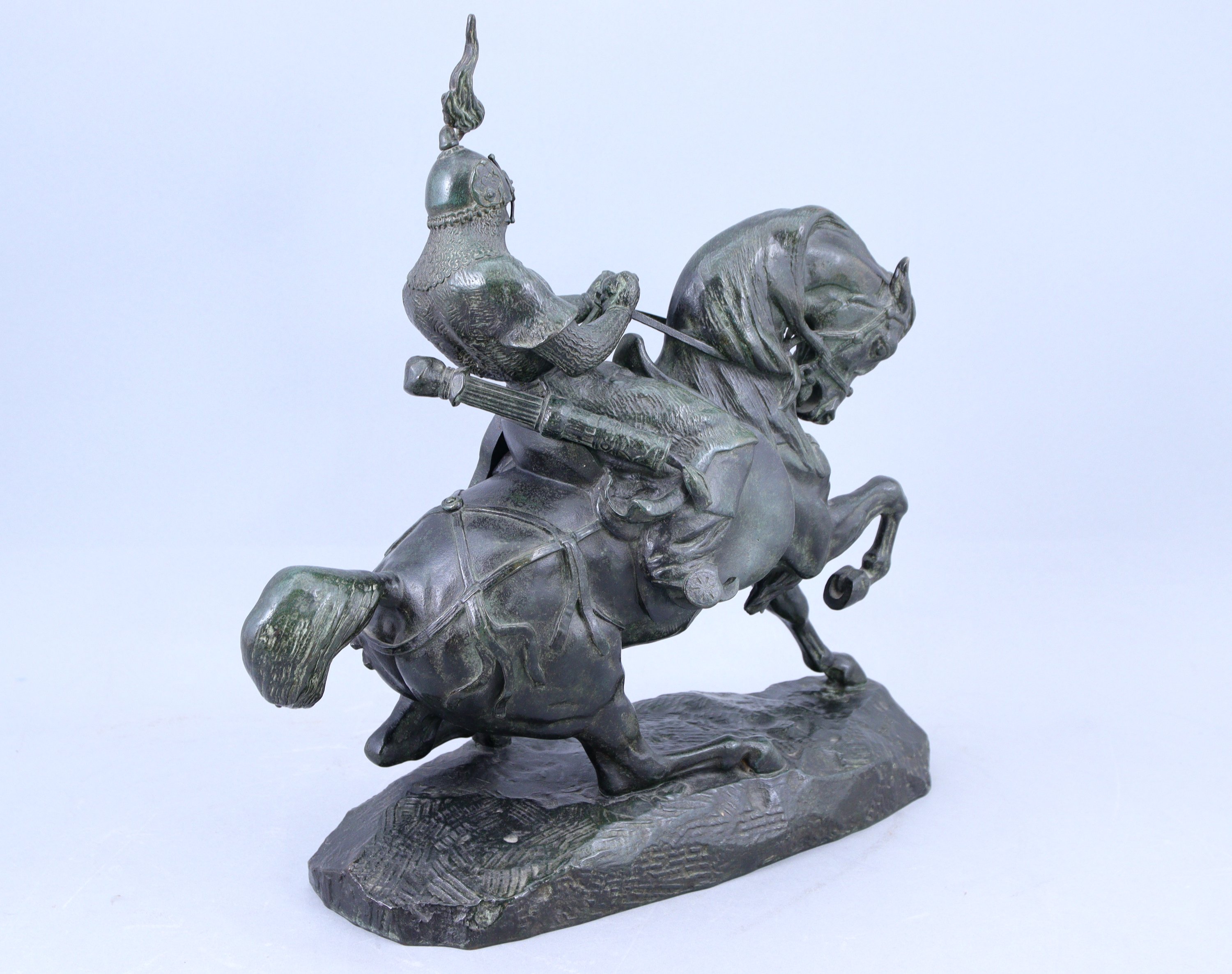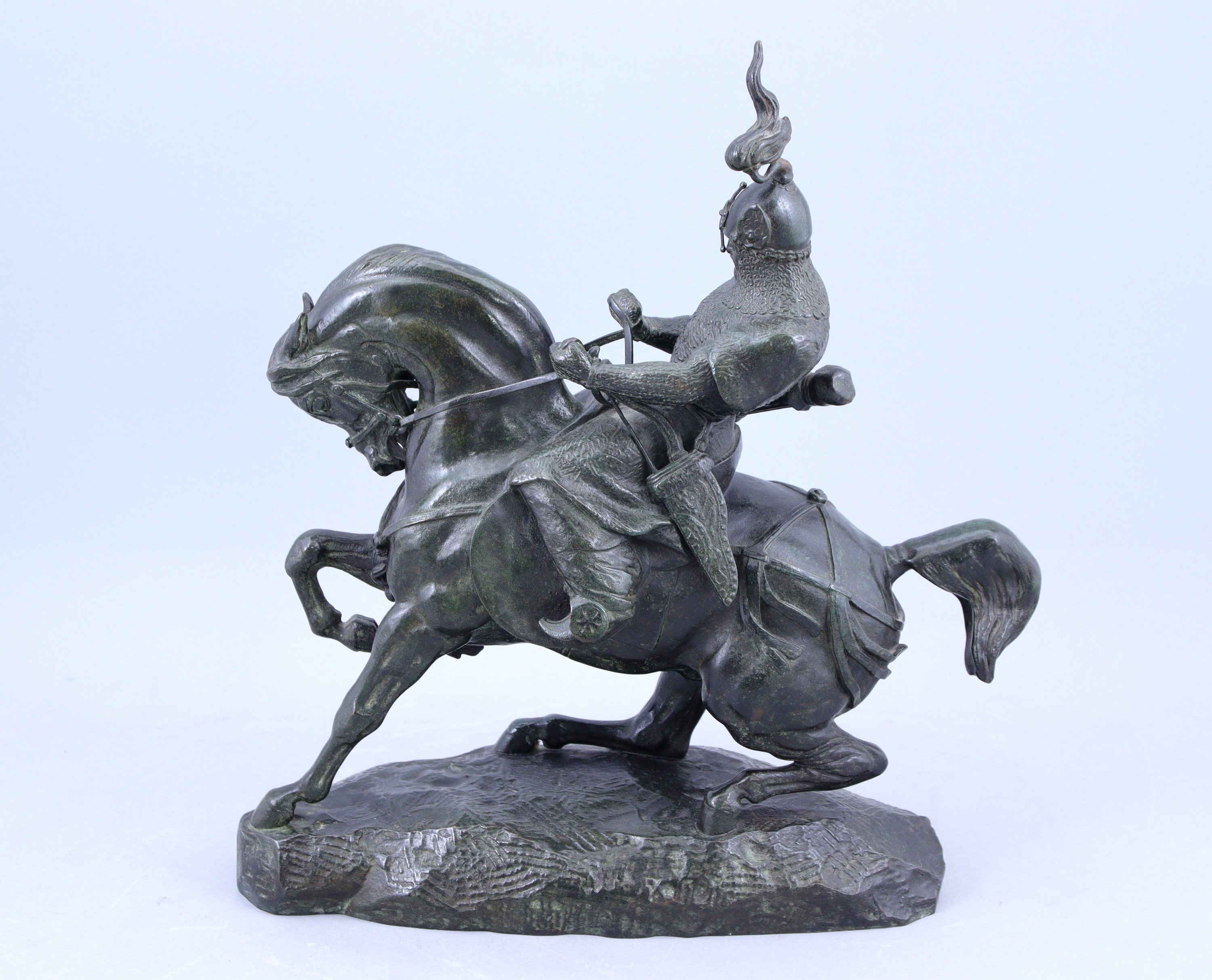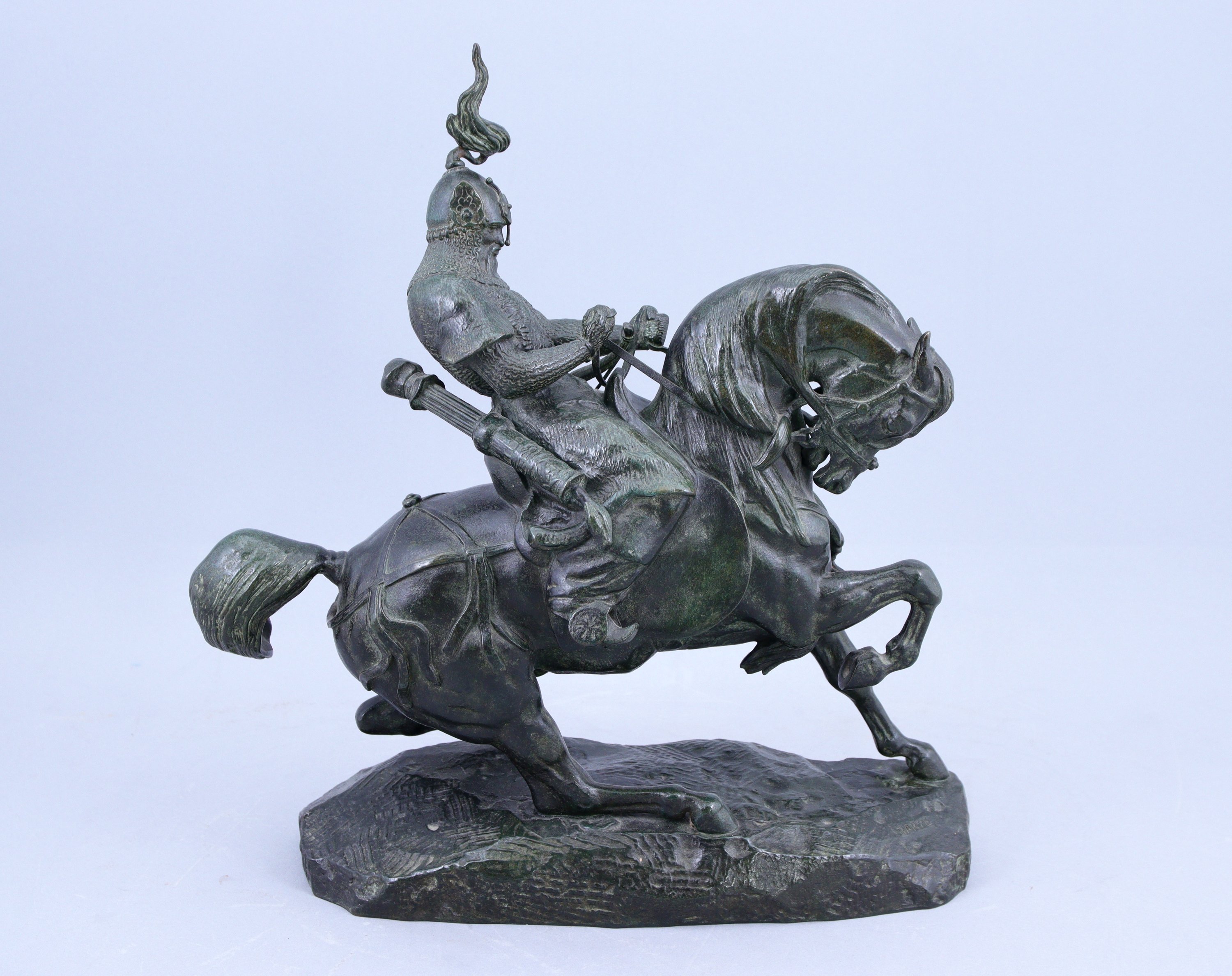 Antoine Louis Barye. A bronze sculpture of a Tatar warrior on horseback. Signed. A posthumous cast, probably by Barbedienne, of a model created in 1845.