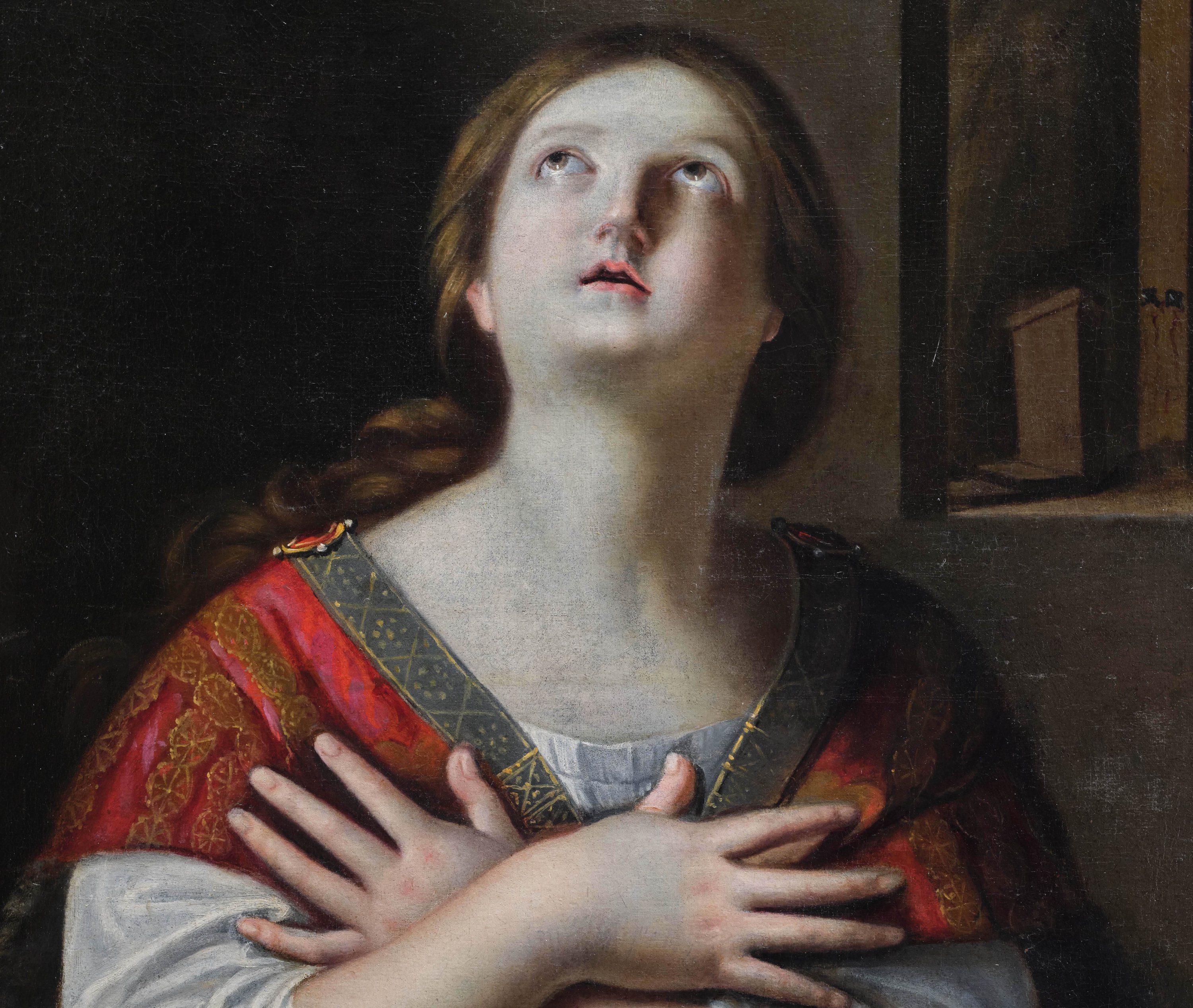 French School, ca. 1640. By the entourage of Nicolas Mignard. A painting of Saint Mary Magdalene at prayer.