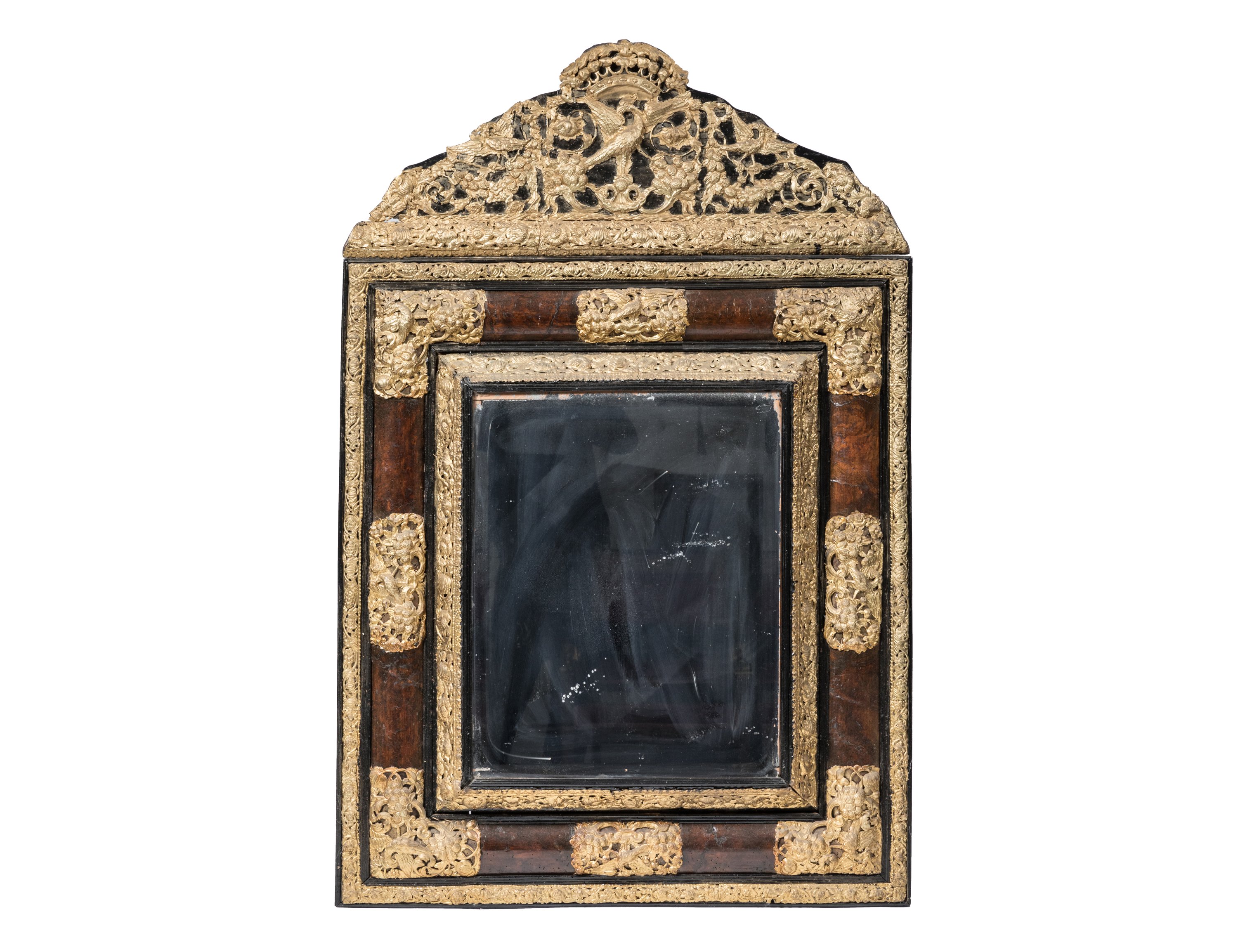 Louis XIII. A brass, burled walnut and ebony mirror.
