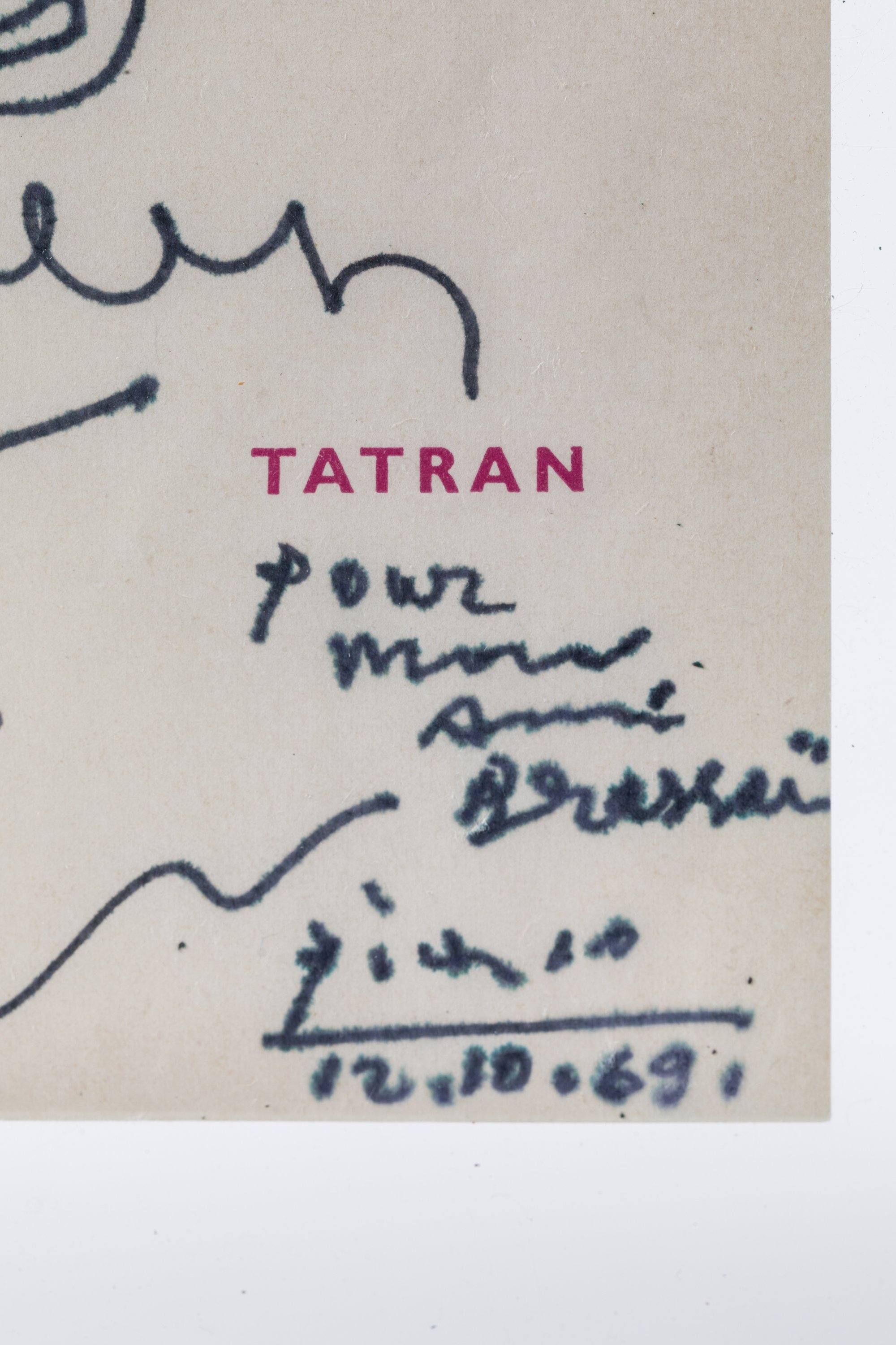 Envoi "Pour mon ami Brassaï", signé "Picasso" et daté "12.10.69".