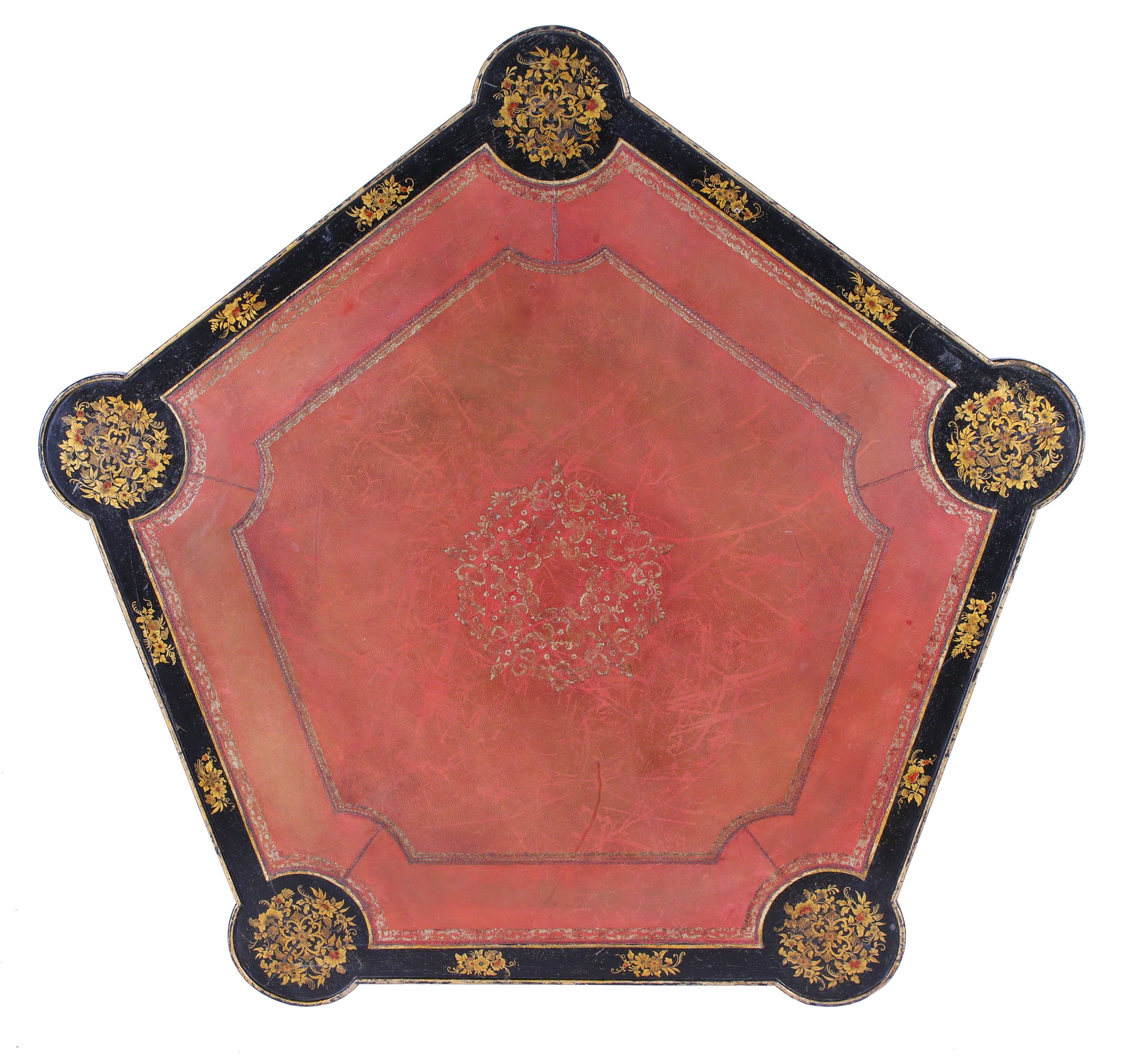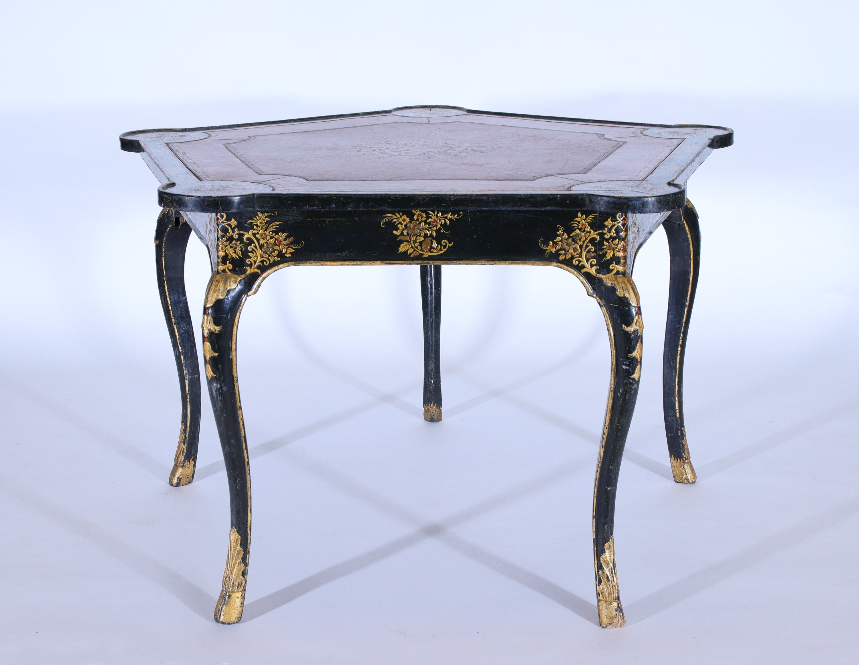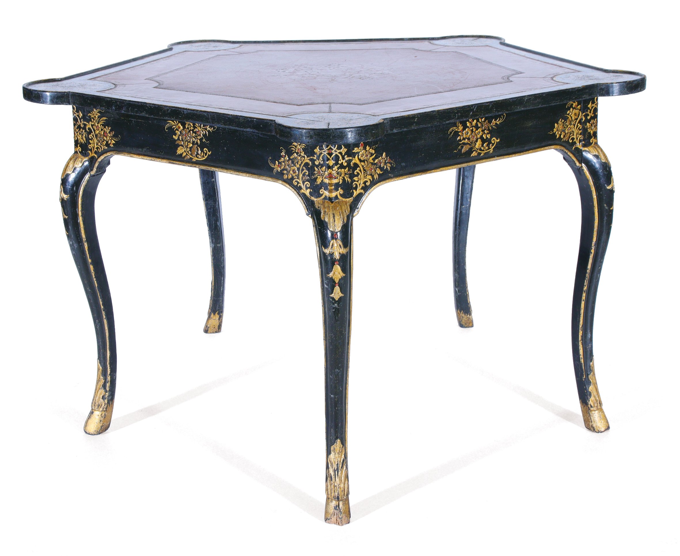 Louis XV. A Chinese-inspired pentagonal lacquered game table. Gilded mounts.