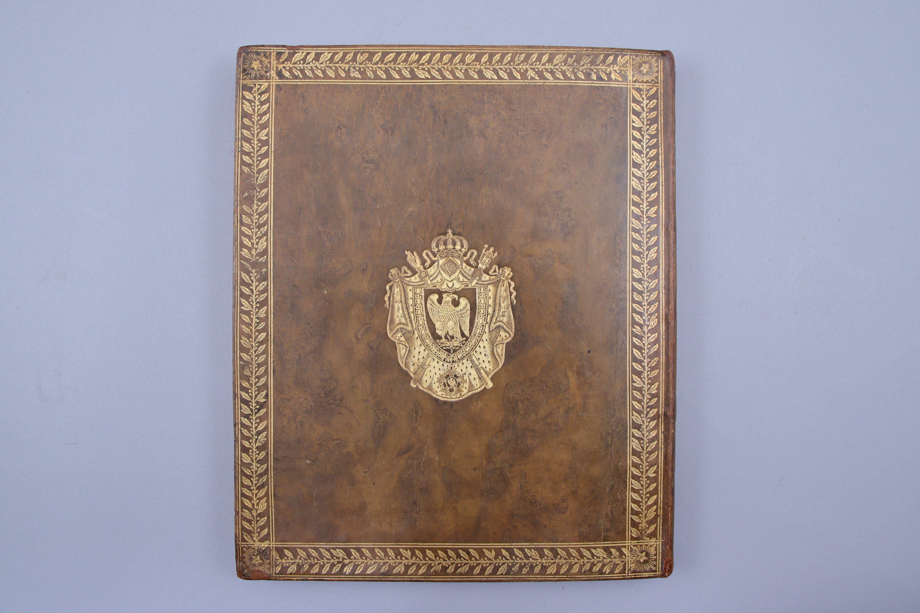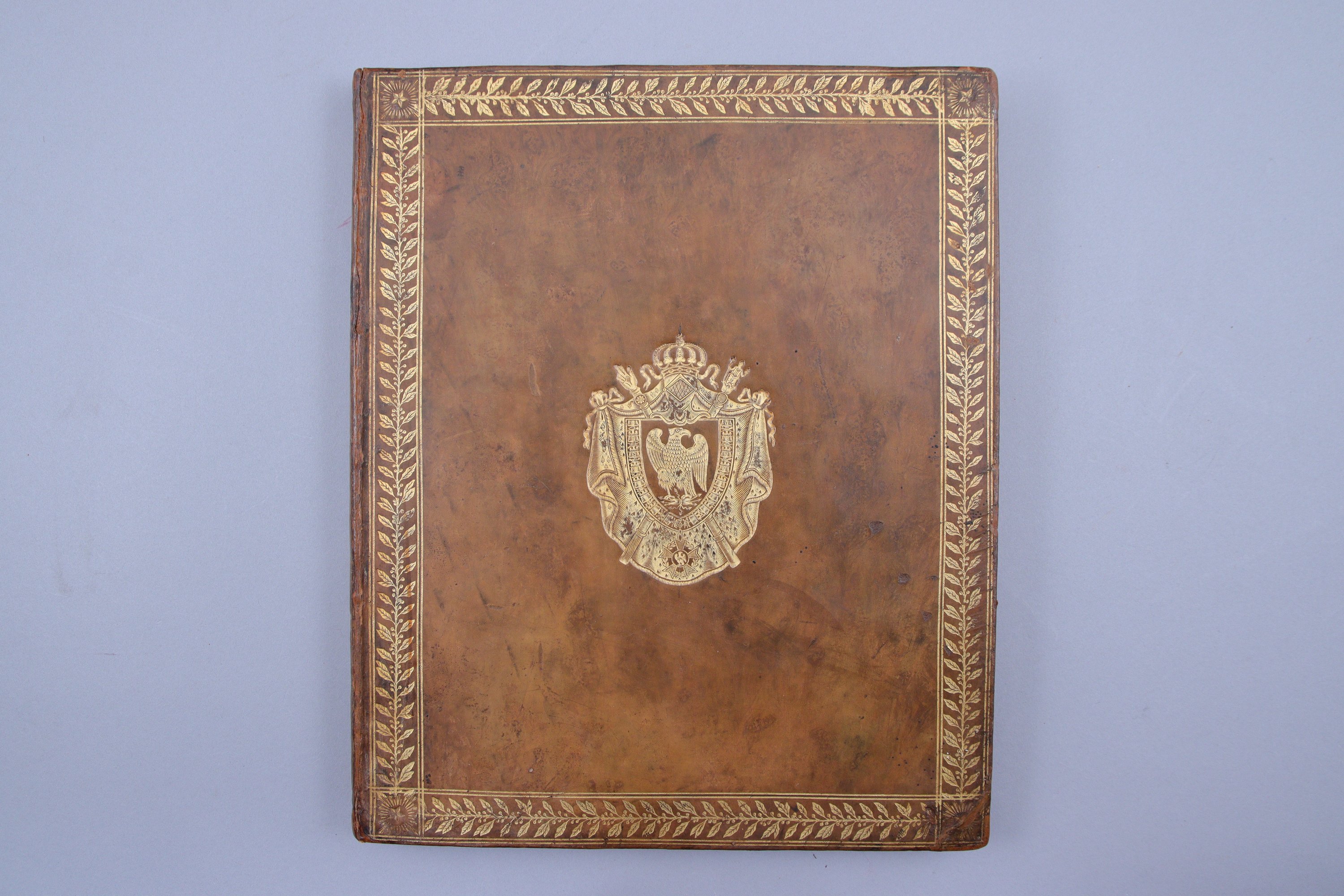 Bel exemplaire aux armes de l'Empereur, à grandes marges, imprimé sur un beau papier vélin. C'est l'un des premiers ouvrages publiés par l'Imprimerie Impériale, et financés par l'état en vue d'assurer à Napoléon une notoriété, vite devenue légendaire.
