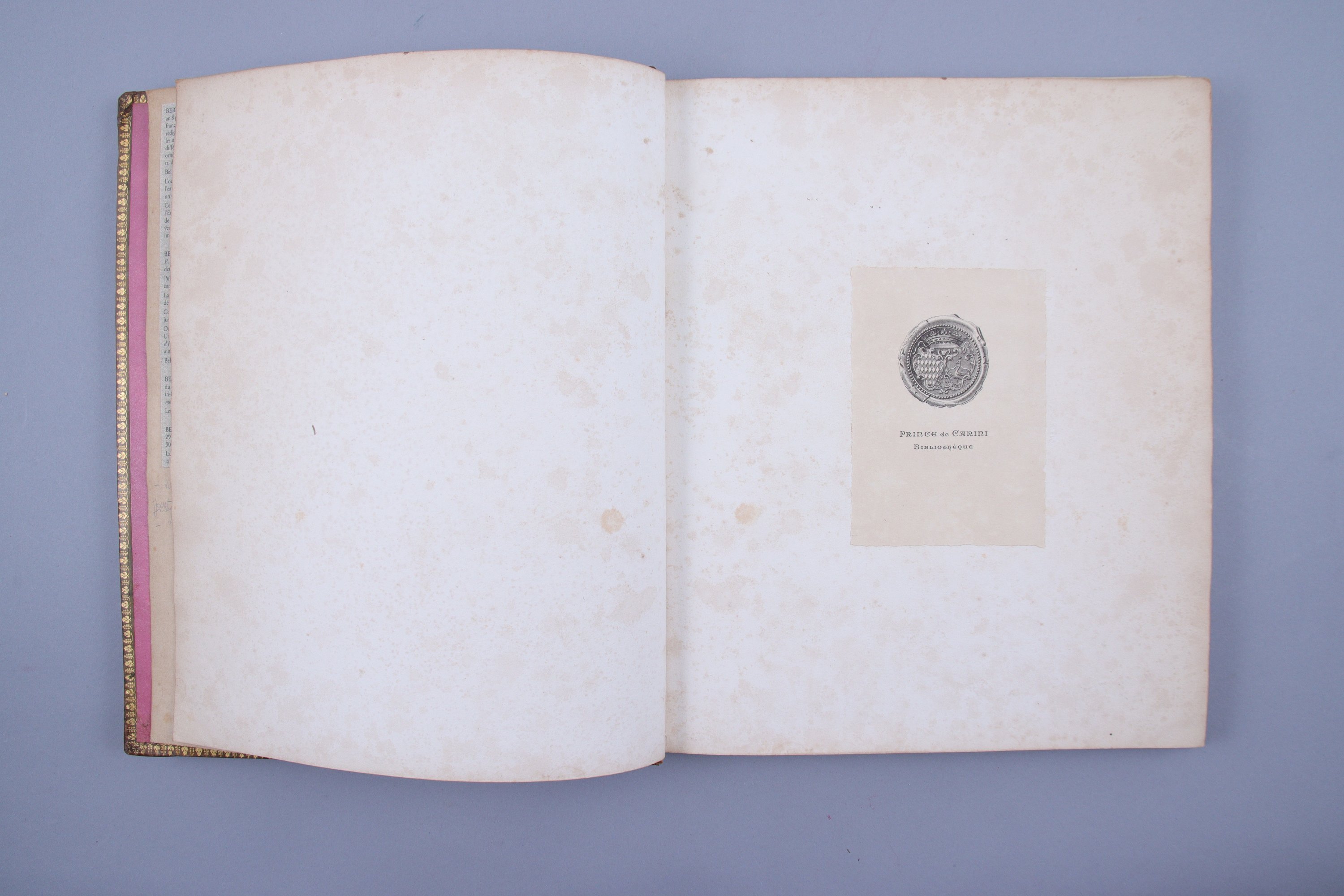 Sur les gardes blanches sont placés l'ex-libris du Prince de Carini, et l'ex-libris de Charles de Lacharrière.