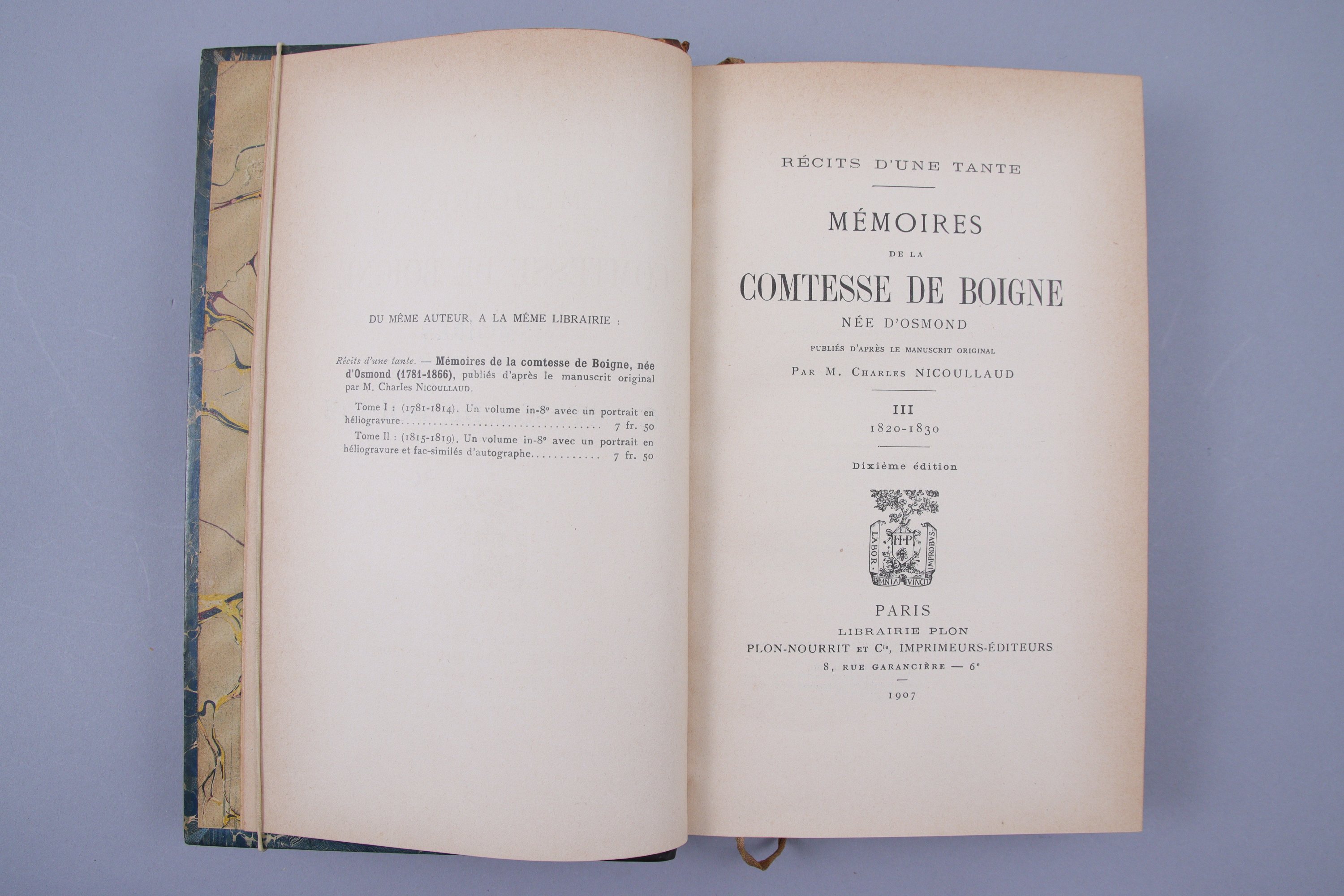 Récits d'une tante. Mémoires de la comtesse de Boigne, née d'Osmond, publiés d'après le manuscrit original par Charles Nicoullaud.