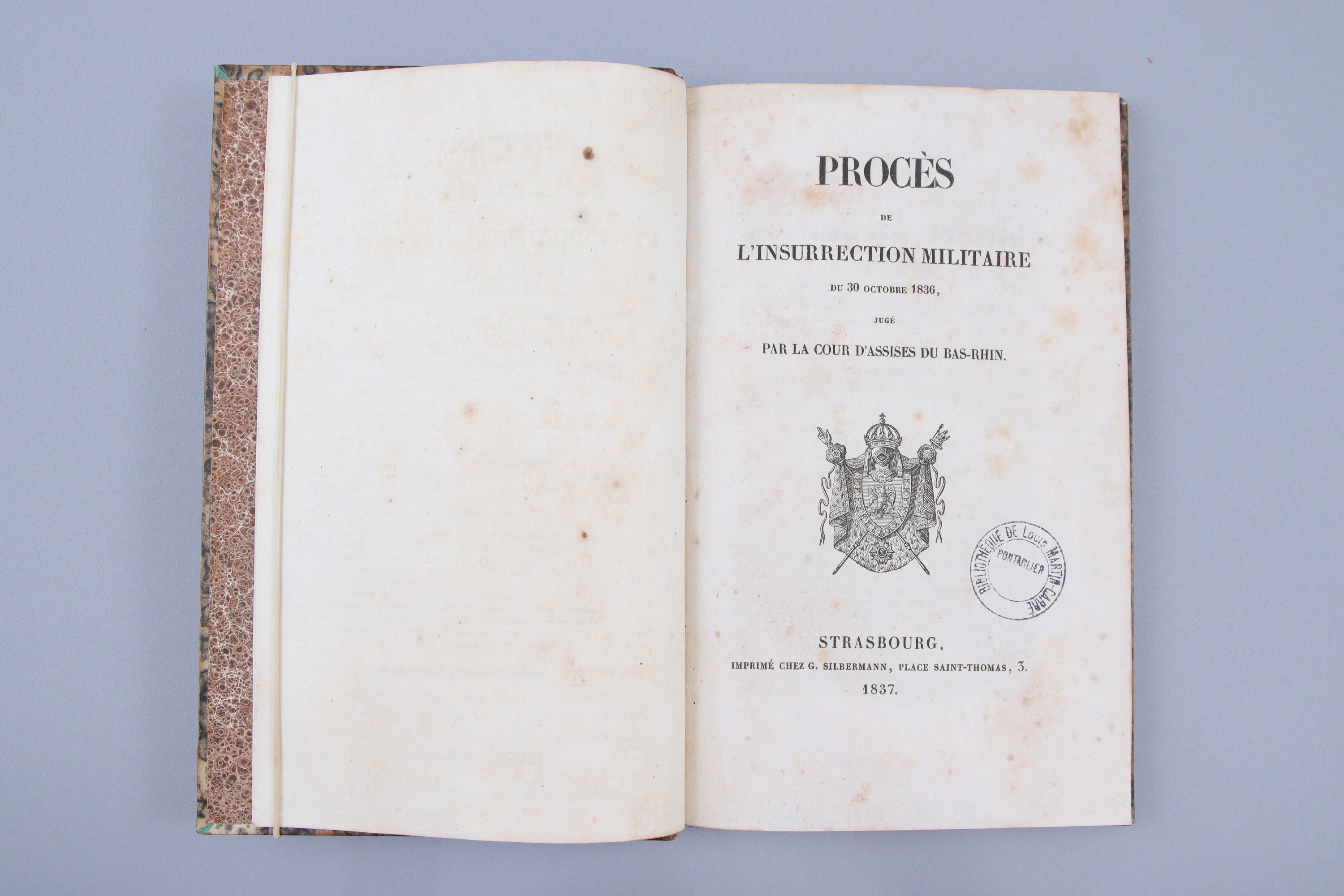 Procès de l'insurrection militaire du 30 octobre 1836, jugé par la Cour d'Assises du Bas-Rhin.