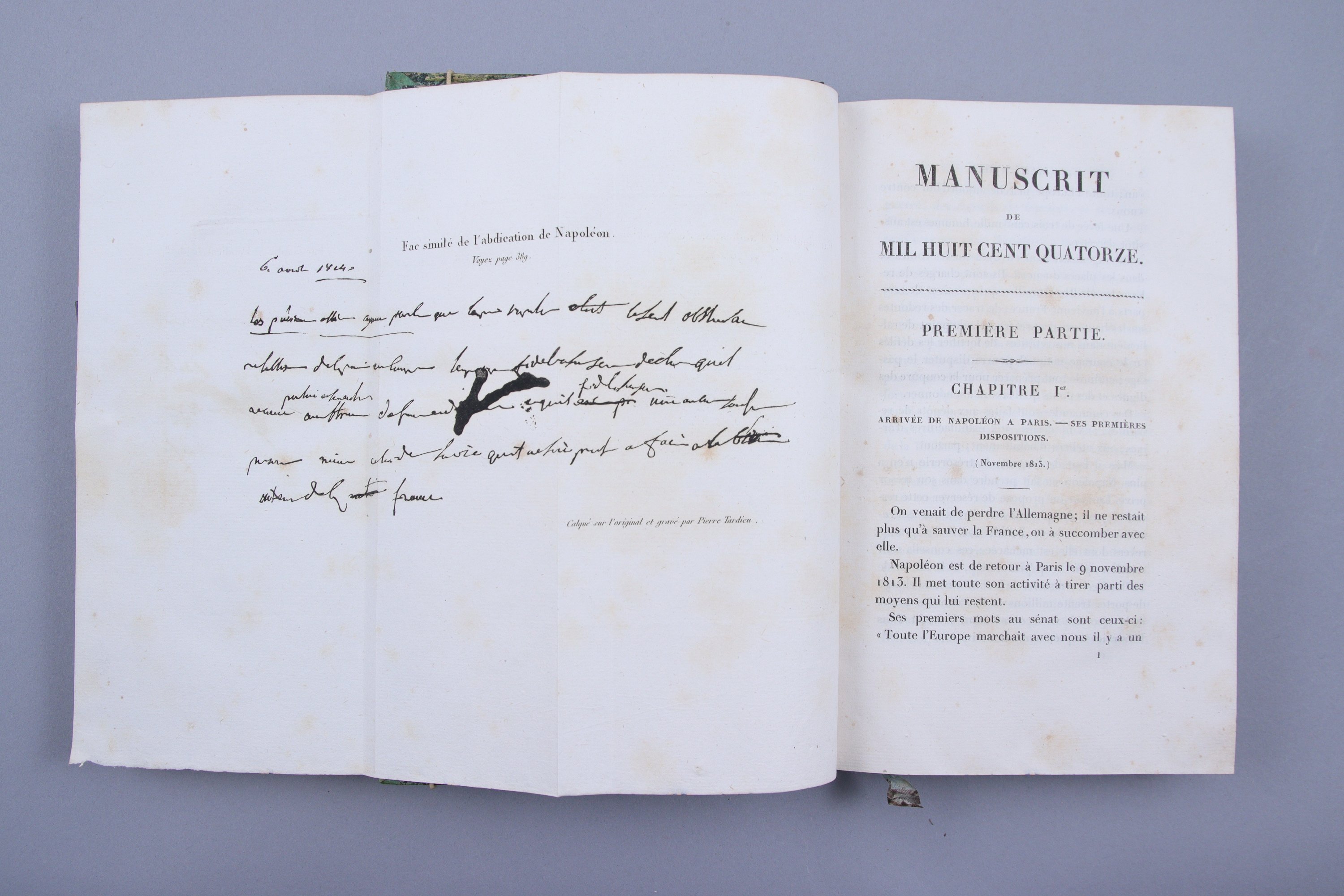 -Manuscrit de Mil Huit Cent Quatorze, trouvé dans les voitures impériales prises à Wateloo, contenant l'histoire des six derniers mois du règne de Napoléon. Par le Baron Fain.