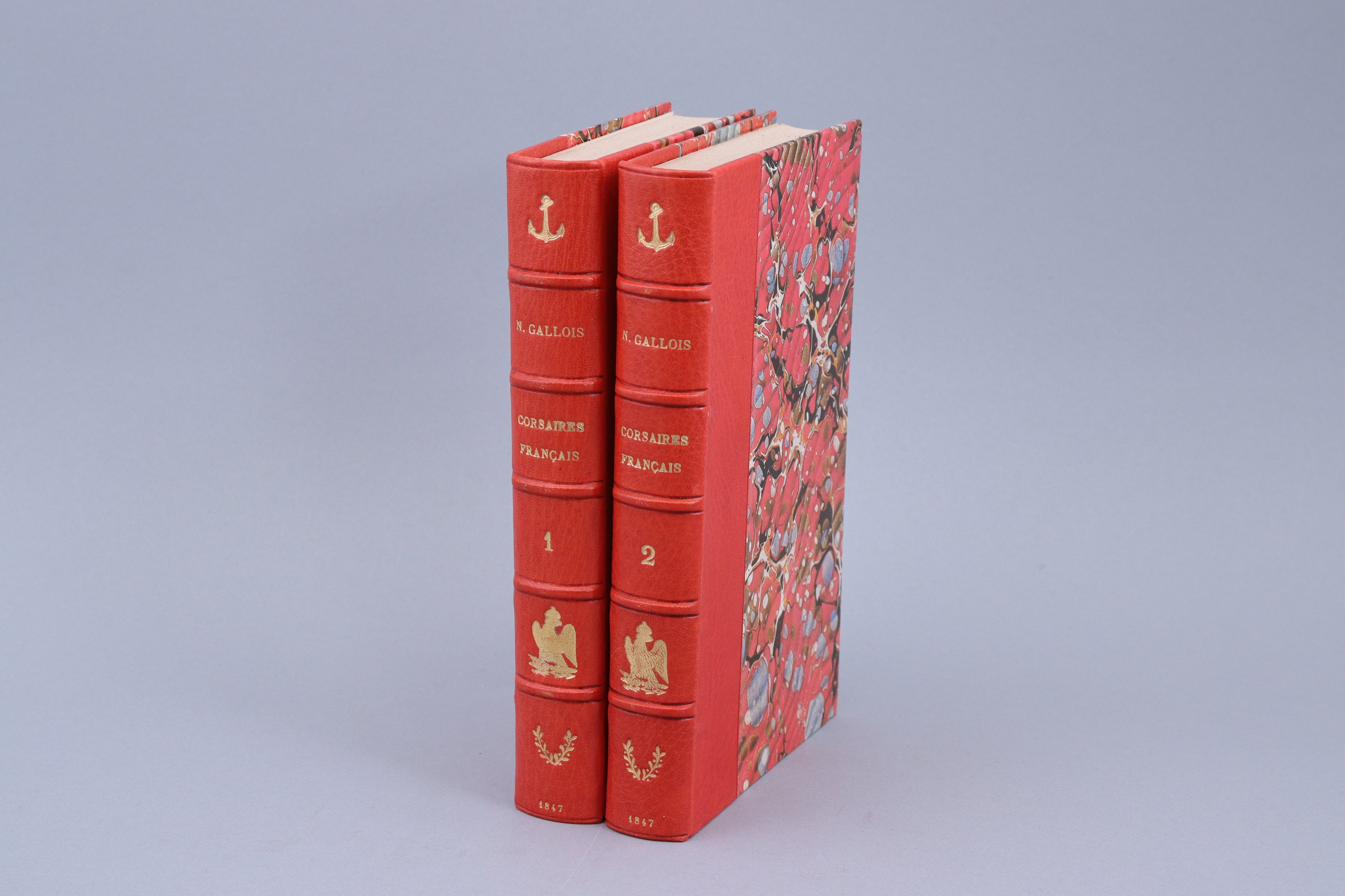 2 vol. in-8, 472 et 472 pages. Couvertures conservées.1/2 maroquin corail, dos ornés de l'aigle impériale et d'une ancre de marine. Reliure moderne.