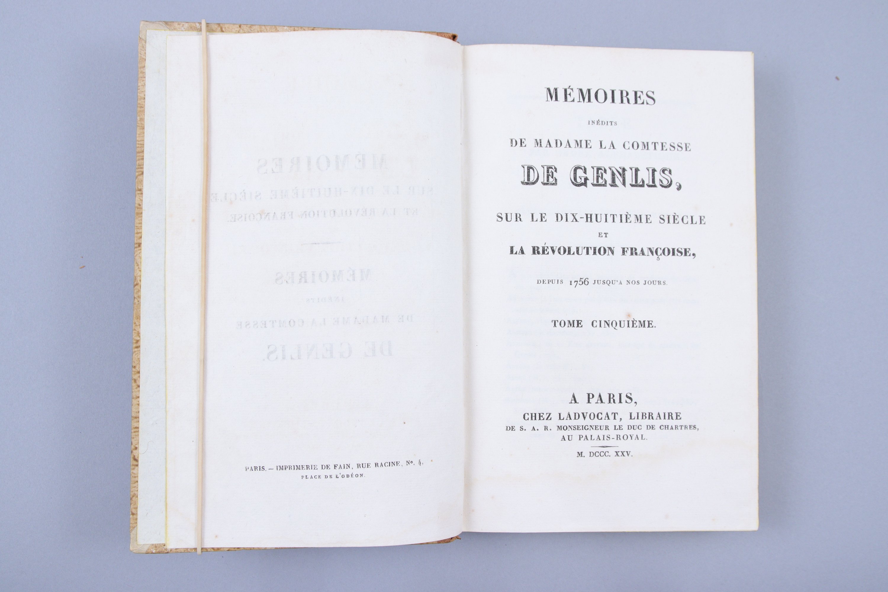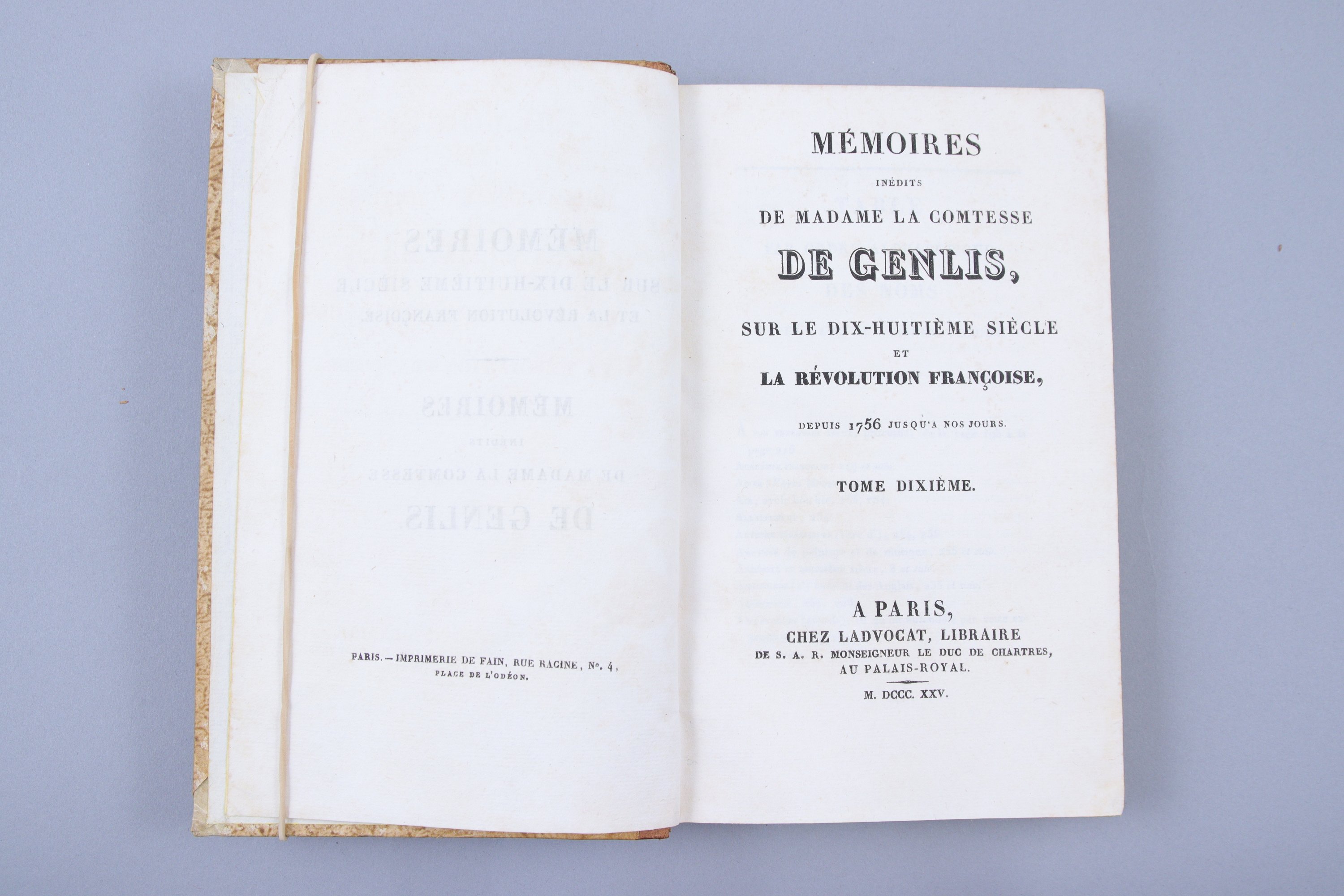 Les Mémoires de Madame de Genlis, pédagogue, romancière, dramaturge et mémorialiste couvrent la fin du règne de Louis XV, le règne de Louis XVI, la Révolution (et l'émigration de 1792 à 1797), le Consulat, l'Empire, et la Restauration.