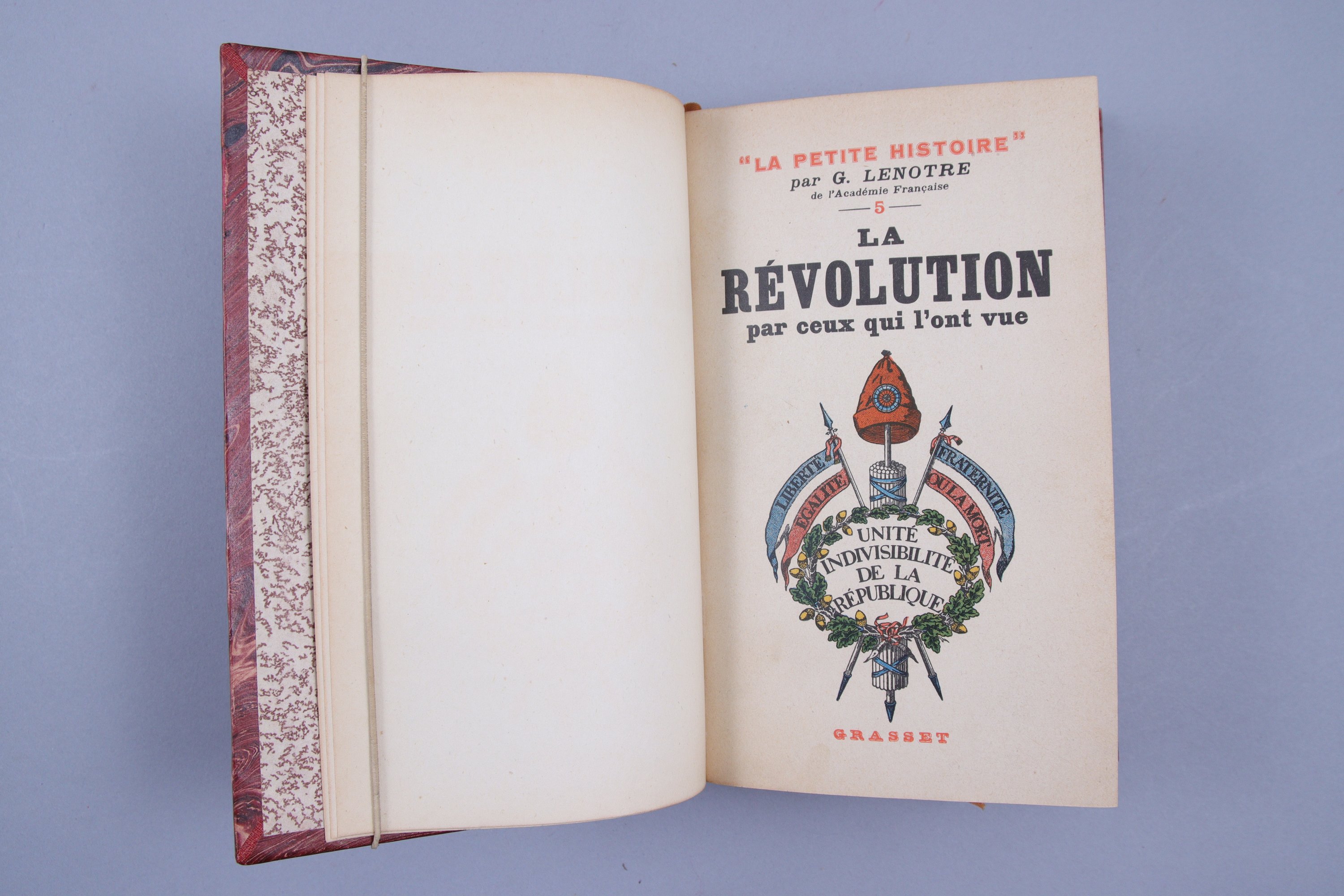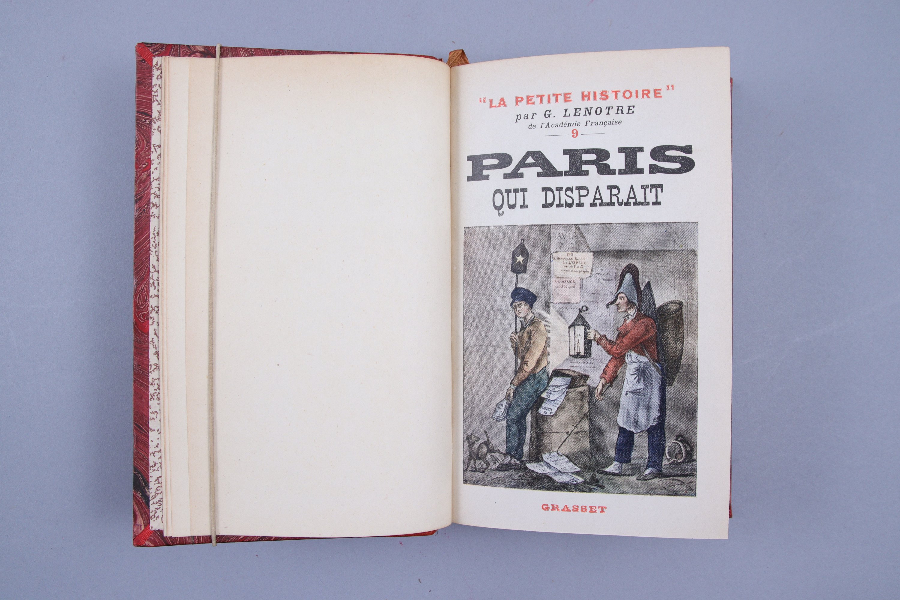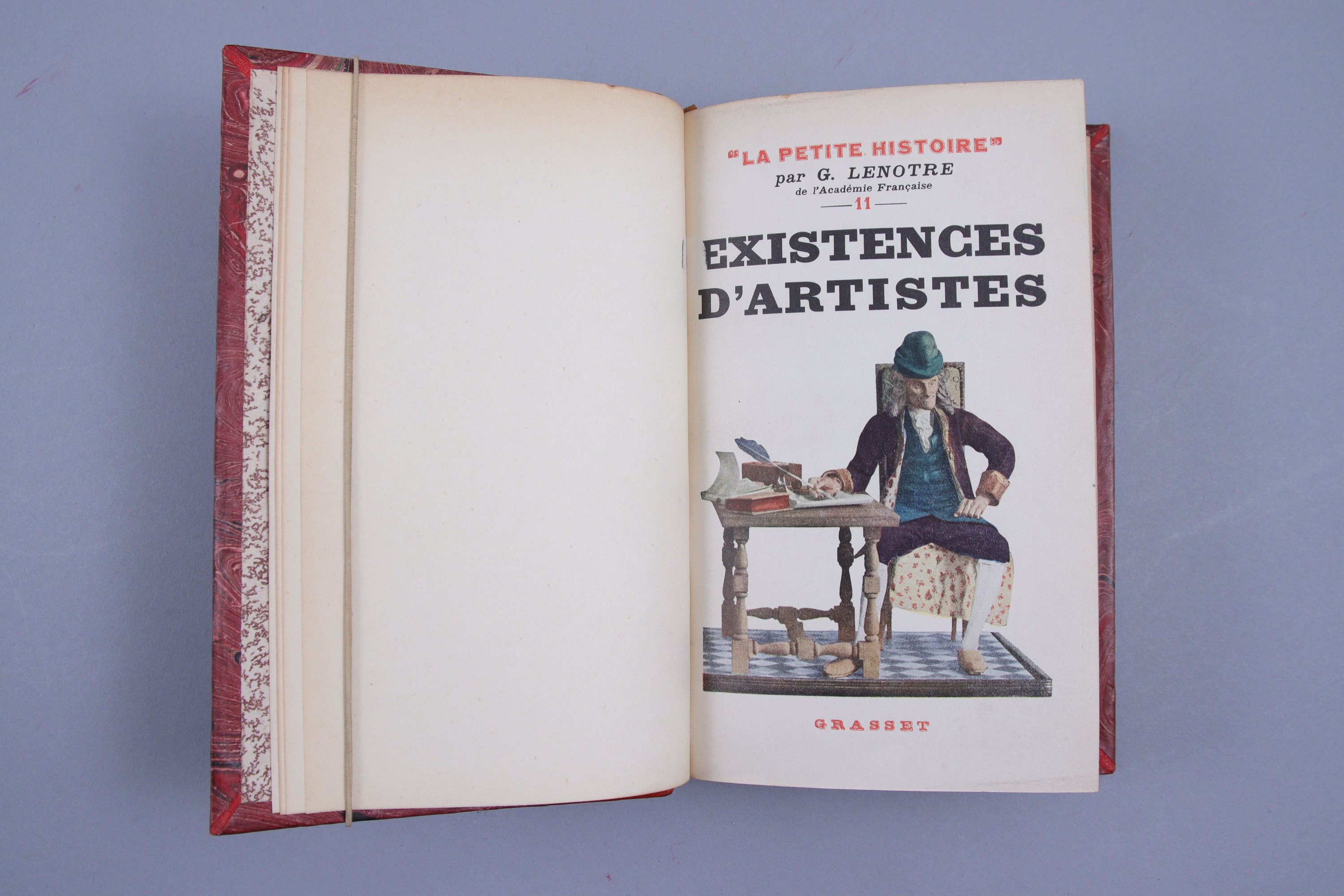 15 volumes in-12. Les volumes numérotés I à XIV sont reliés uniformément en 1/2 chagrin rouge, couvertures conservées. Le dernier volume, numéroté XV; est relié en 1/2 percaline rouge, couvertures conservées.
