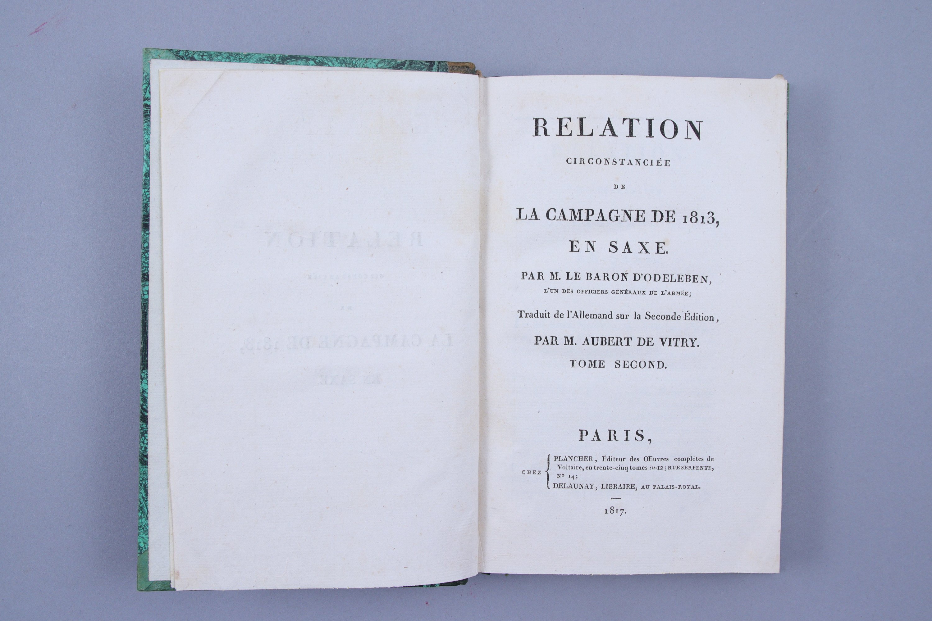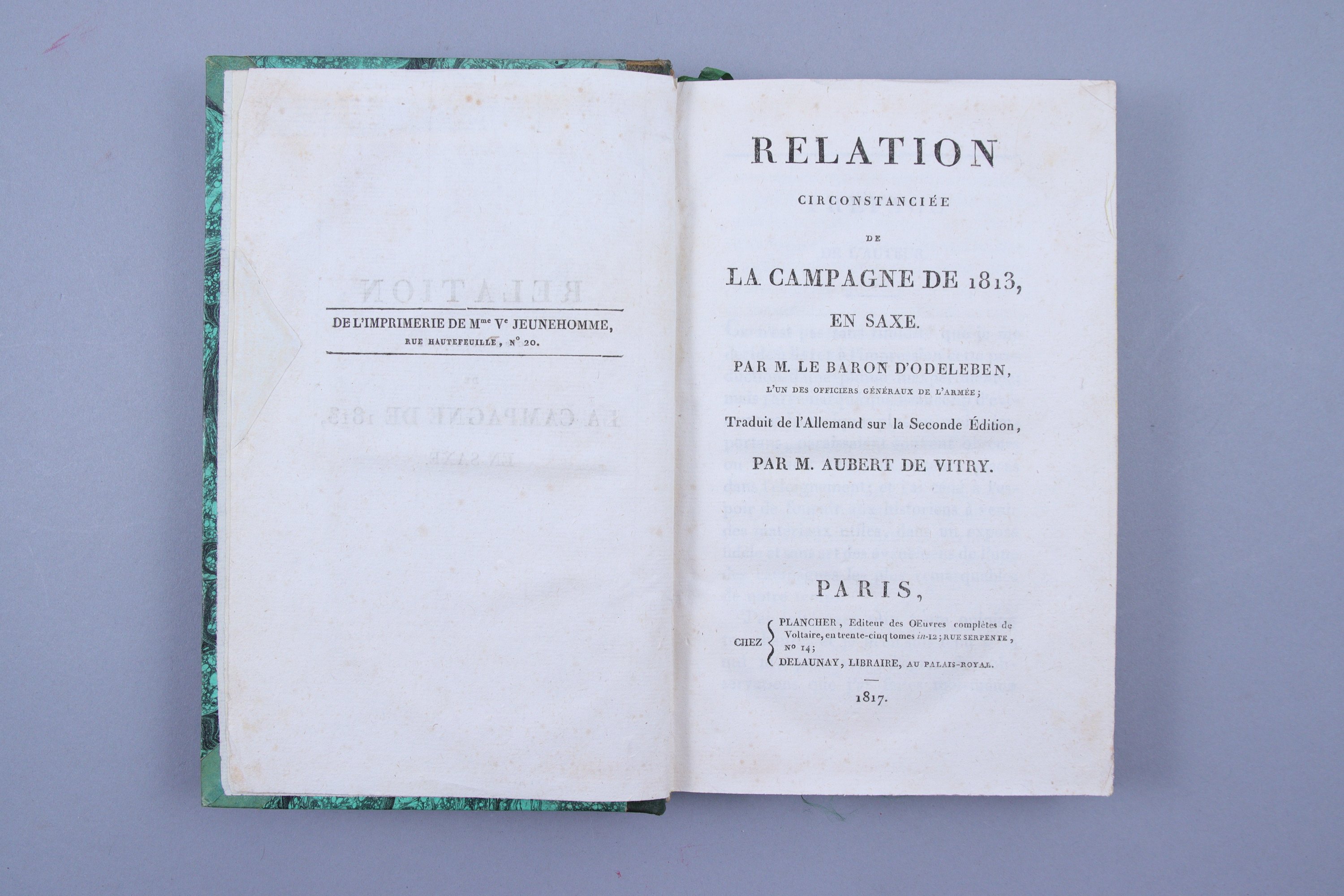 Relation circonstanciée de la campagne de 1813 en Saxe. Par M. le Baron d'Odeleben, l'un des officiers généraux de l'armée. Traduit de l'allemand sur la seconde édition par M. Aubert de Vitry. Paris, Plancher et Delaunay. 1817.