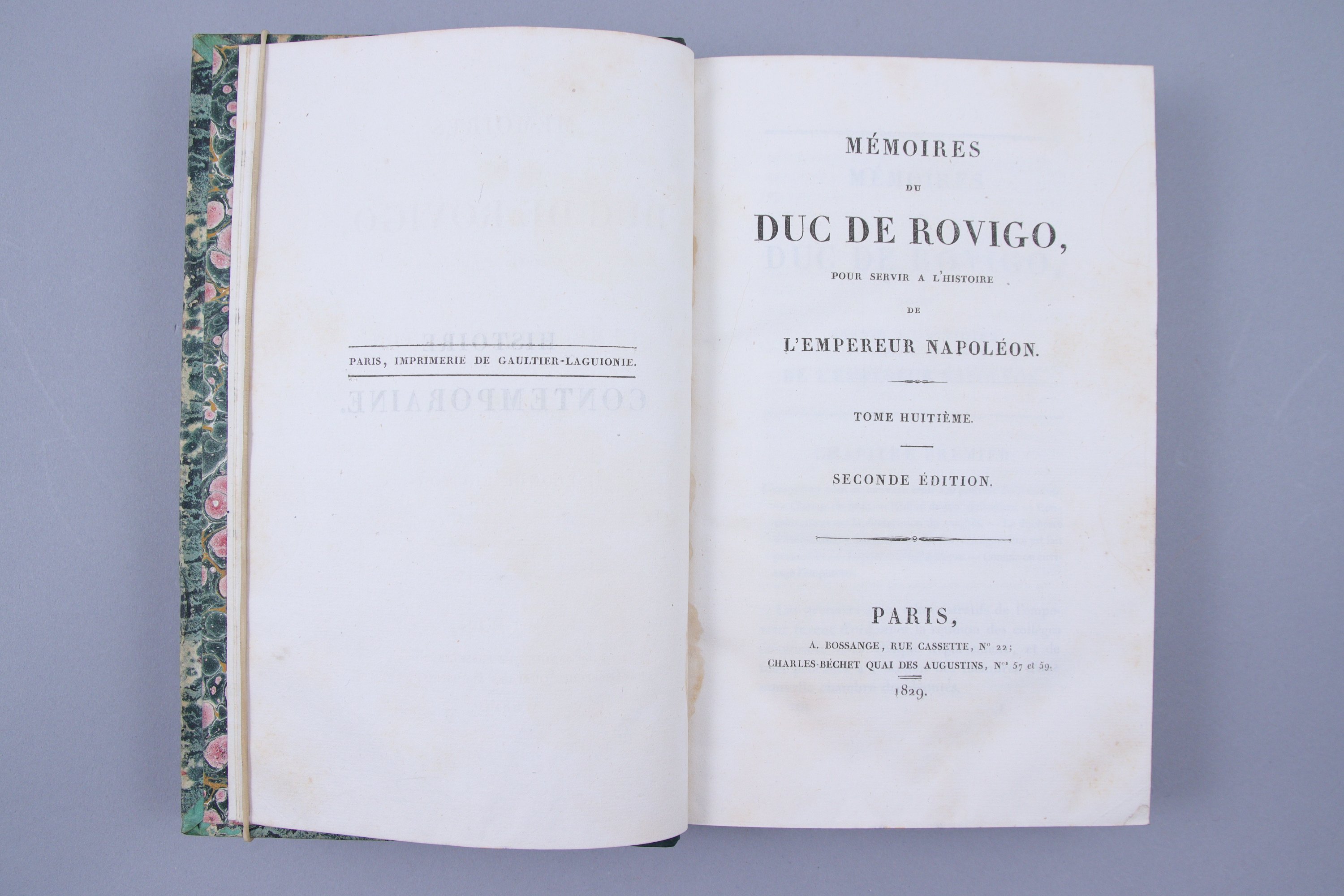 Très bel exemplaire de ces "Mémoires très importants, dont le retentissement fut considérable en raison de la personnalité de l'auteur, aide de camp du Premier Consul, mêmé étraoitementà l'exécution du duc d'Enghien, ambassadeur auprès du Tsar après Tilsit, successeur de Fouché au ministère de la Police générale en 1810. Le récit s'arrête en 1815" (Tulard 1322).