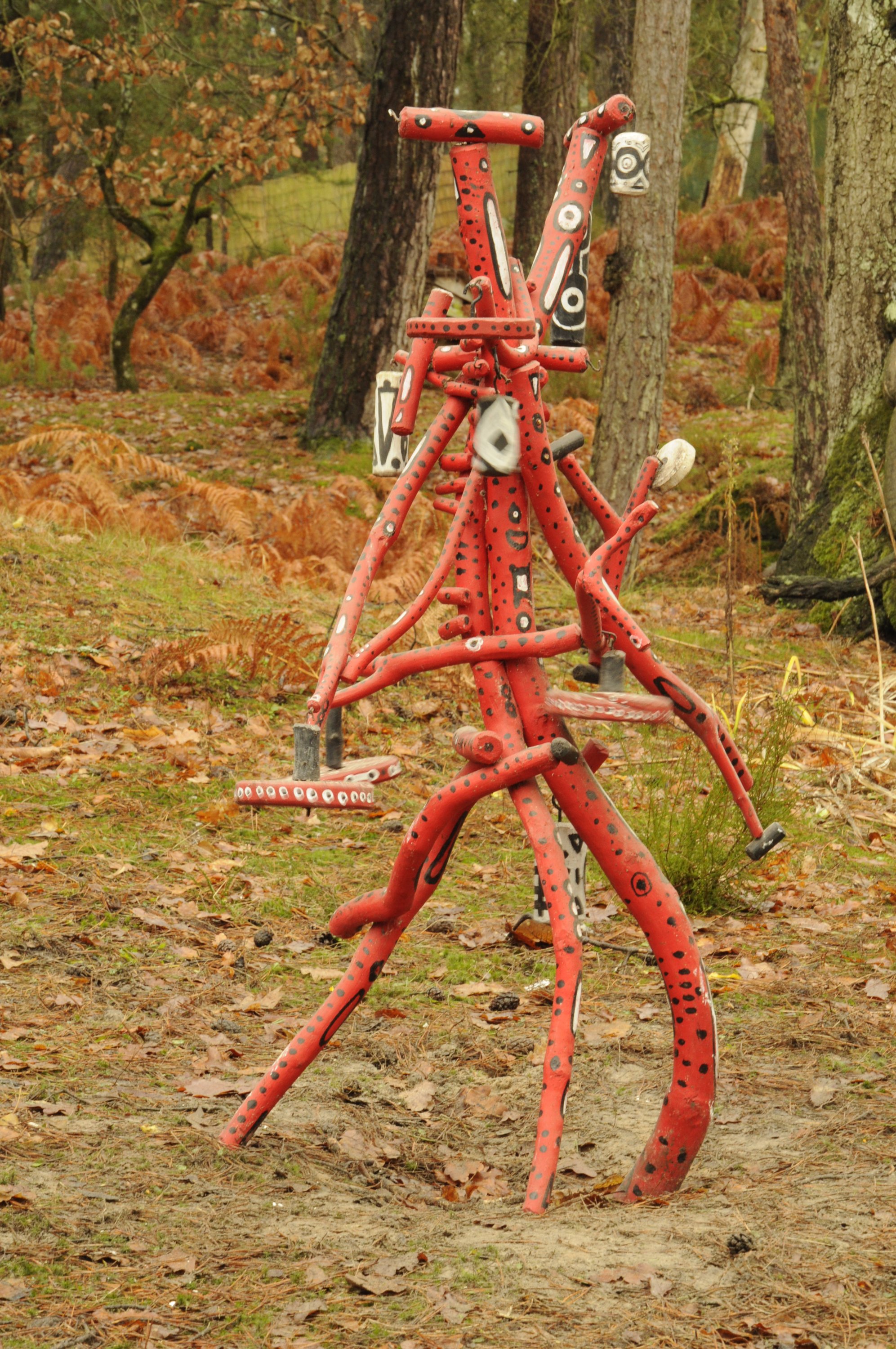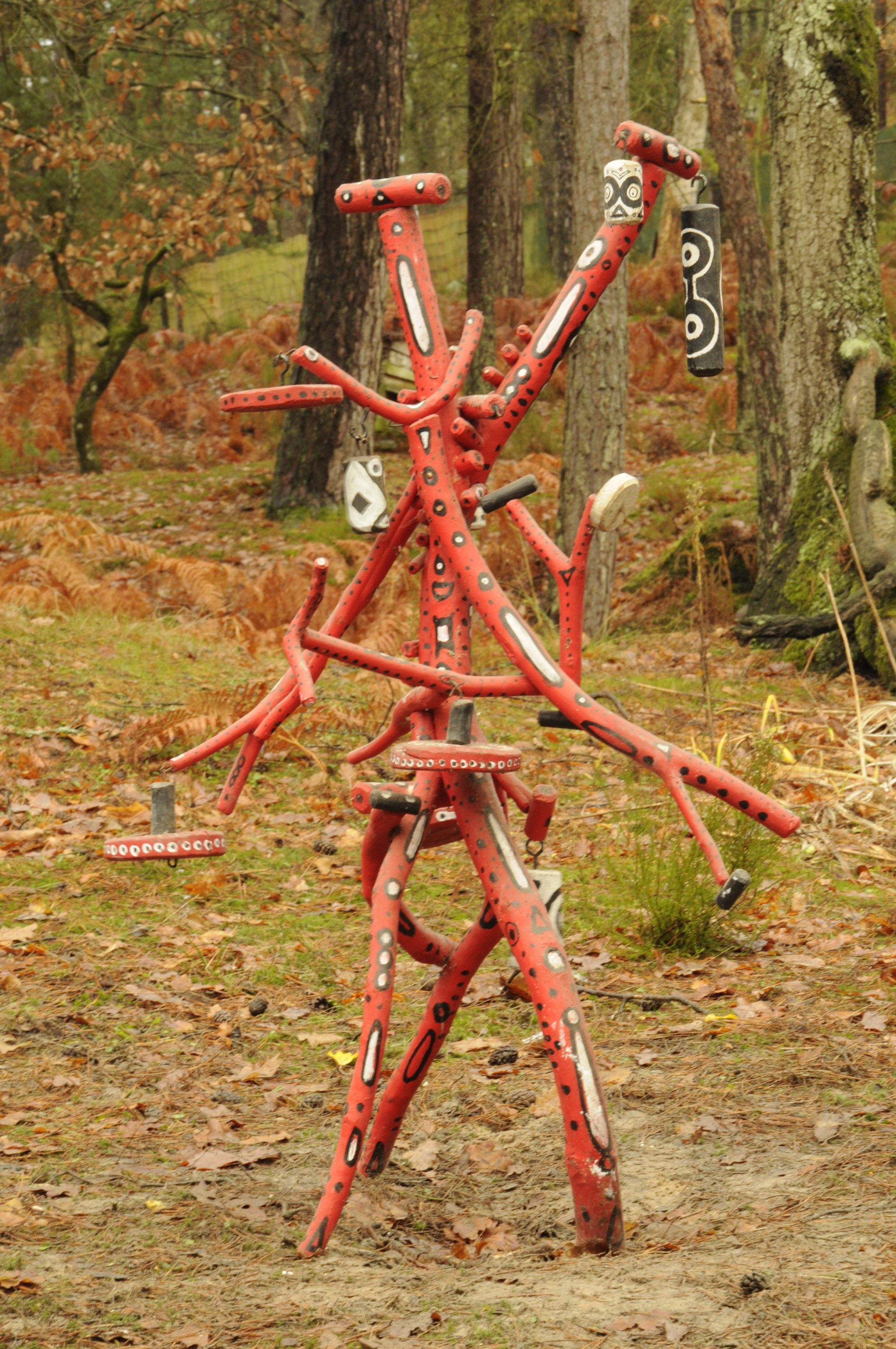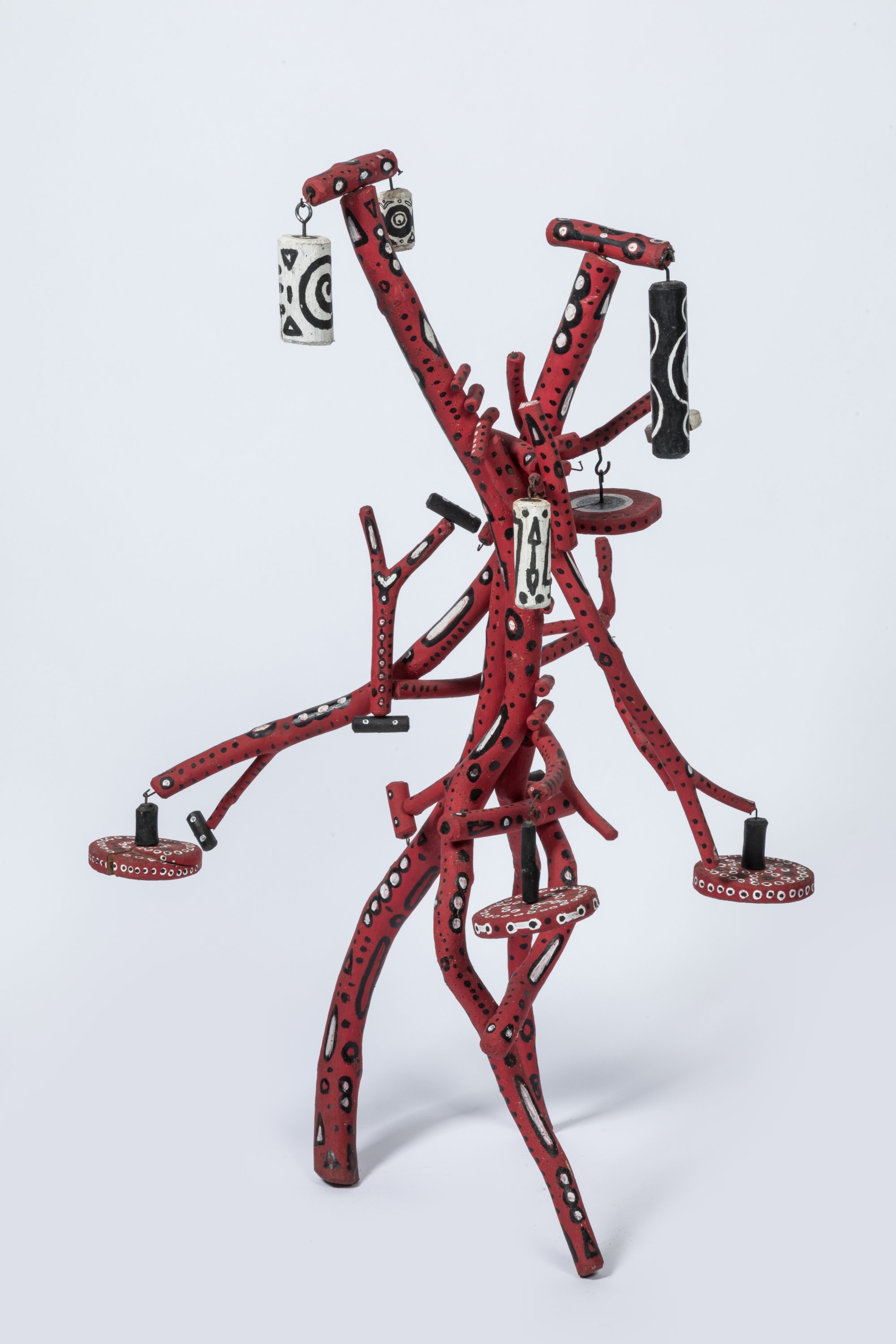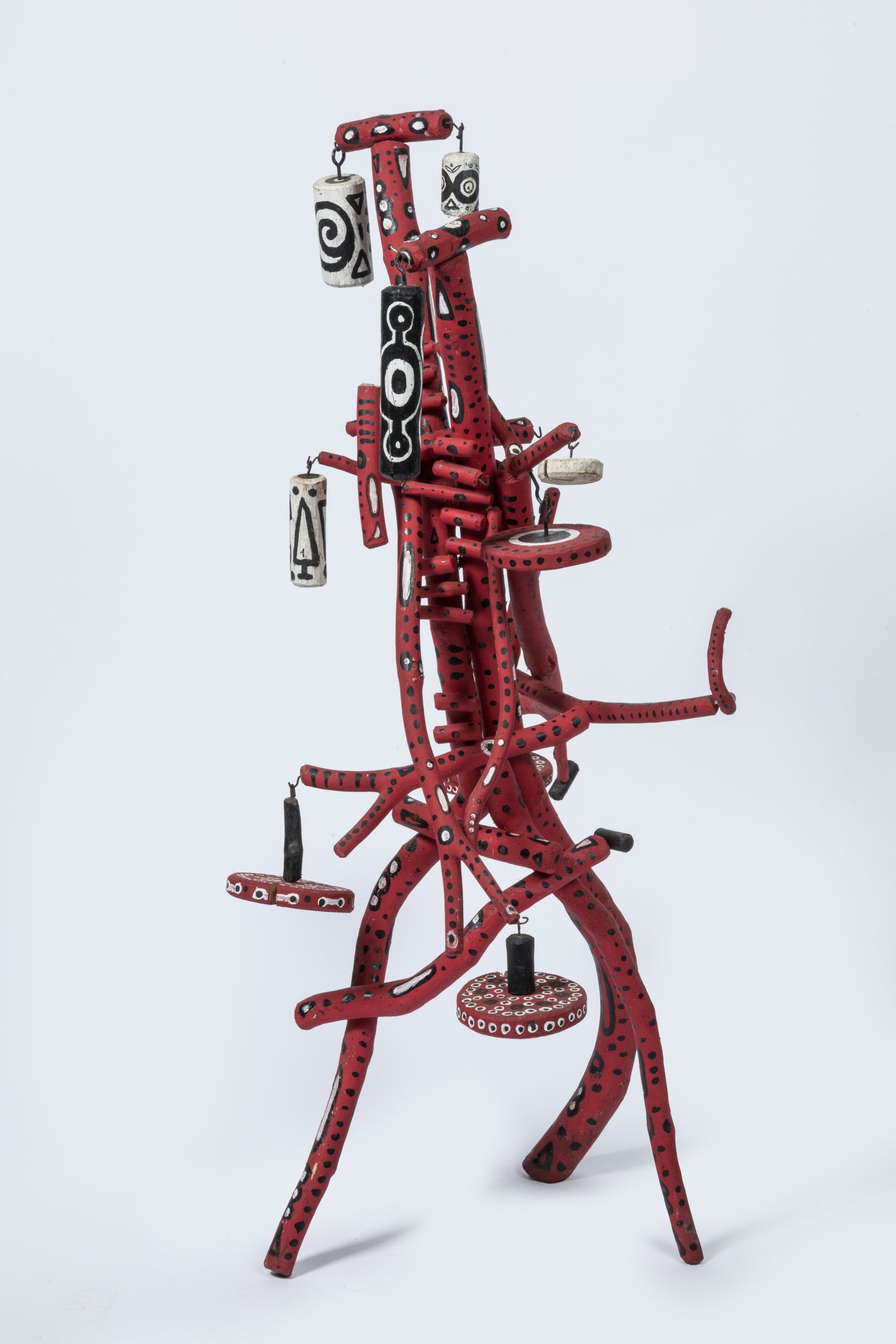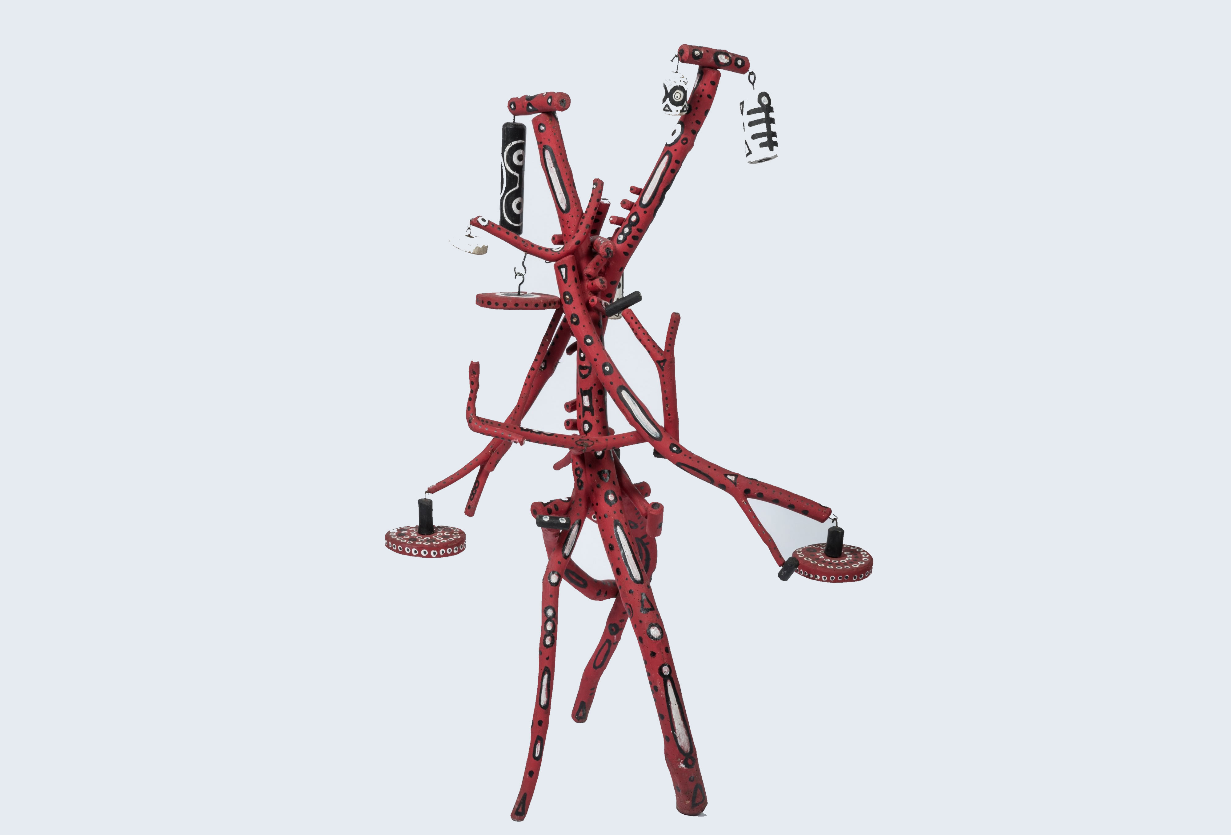 Assemblage en bois, métal, peinture, dix éléments mobiles.