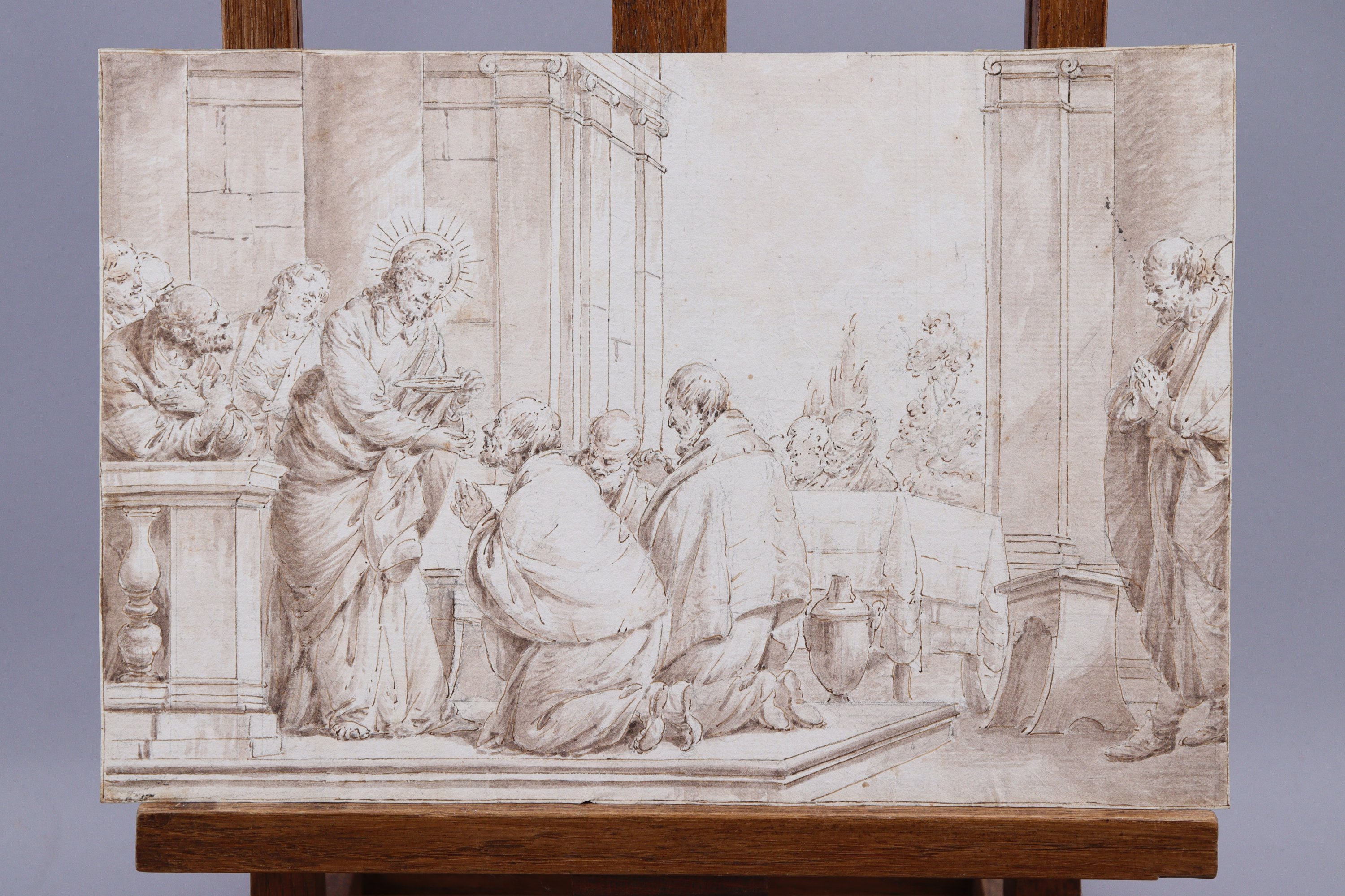 Plume et encre brune, lavis brun sur traits de crayon noir.