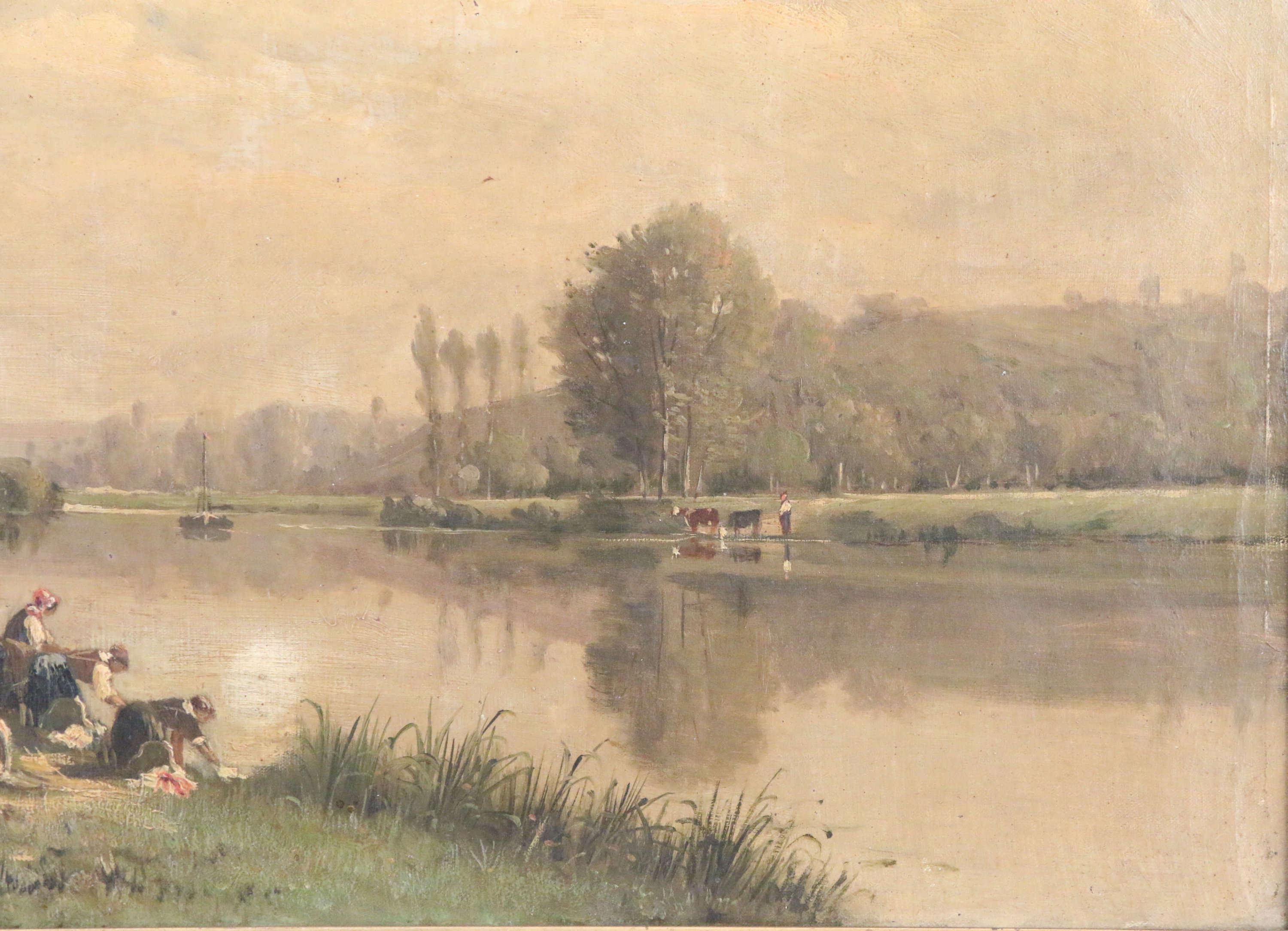 Porte une signature apocryphe "Daubigny" en bas à gauche et une étiquette au dos.