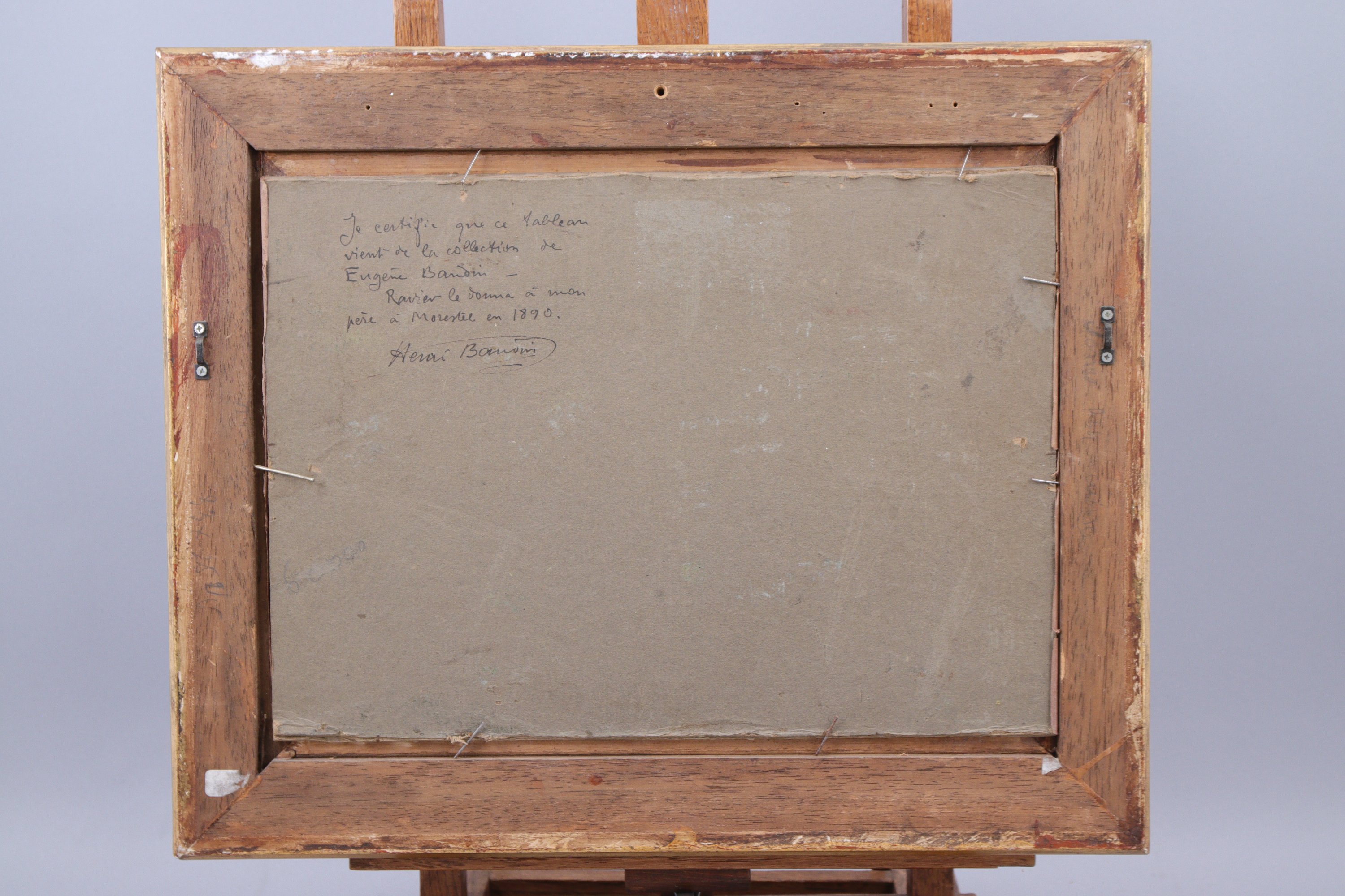 Non signé. Mention manuscrite à l'encre au dos "Je certifie que ce tableau / vient de la collection de / Eugène Baudin / Ravier le donna à mon / père à Morestee en 1890 / Henri Baudin".