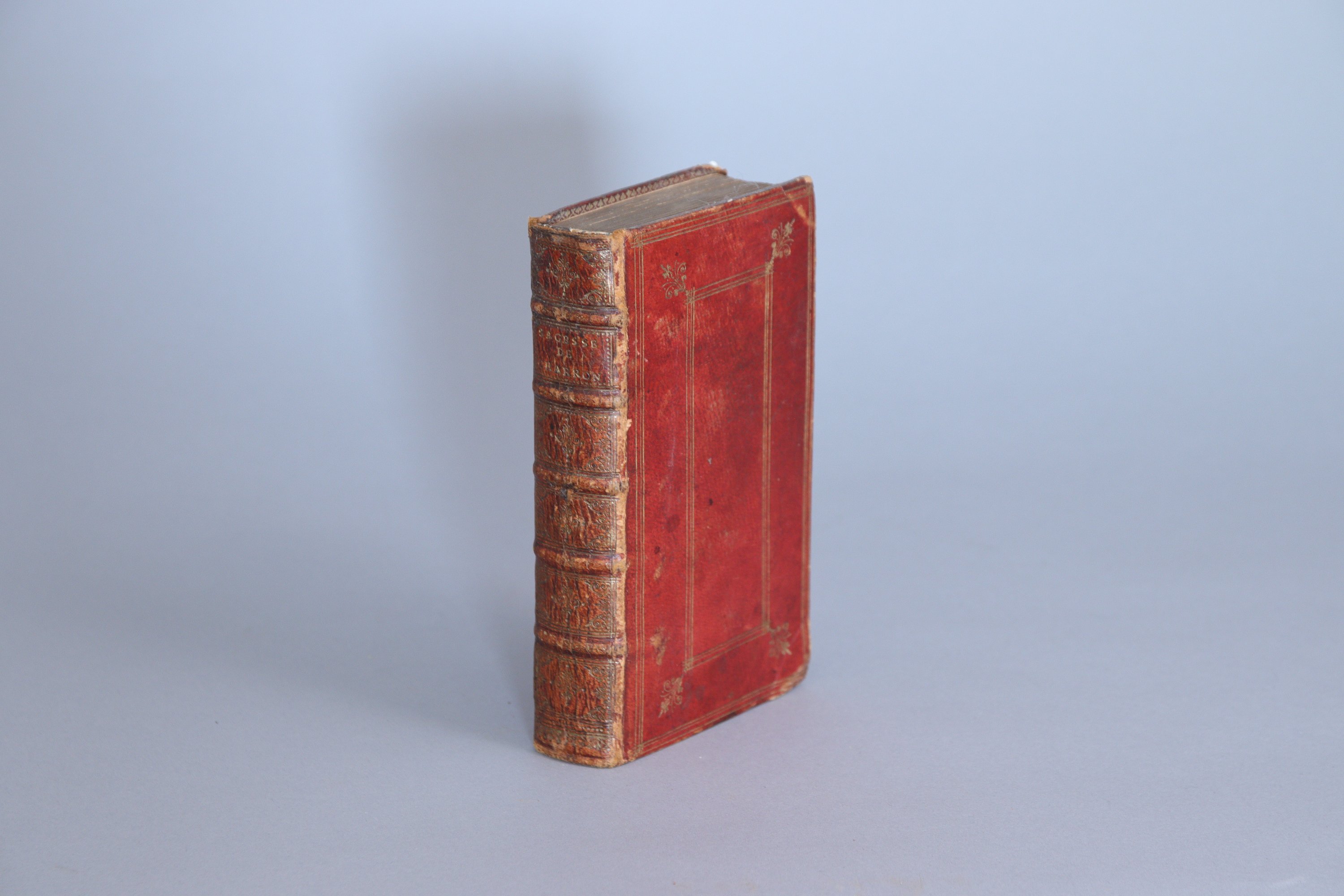 In-8, (12 ff), 710 pages, (5 ff). Plein maroquin rouge, décor "à la Du Seuil". Toutes tranches dorées. Reliure du temps. (Coiffes et coins légèrement frottés)..