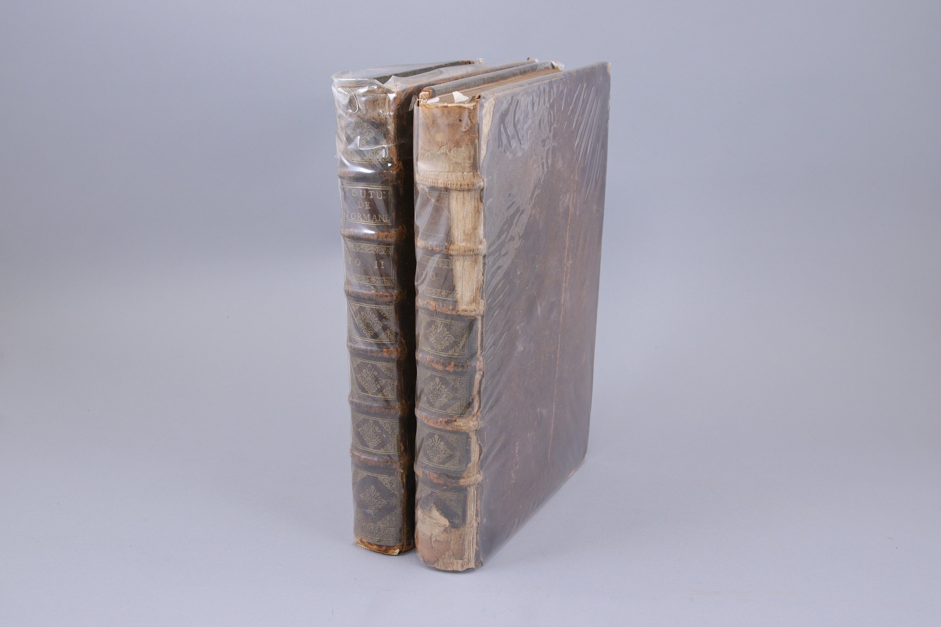 2 volumes grand in-folio. Veau du temps. (Reliures très endommagées : 4 caissons manquants, mors fragiles, coiffes et coins usés)..