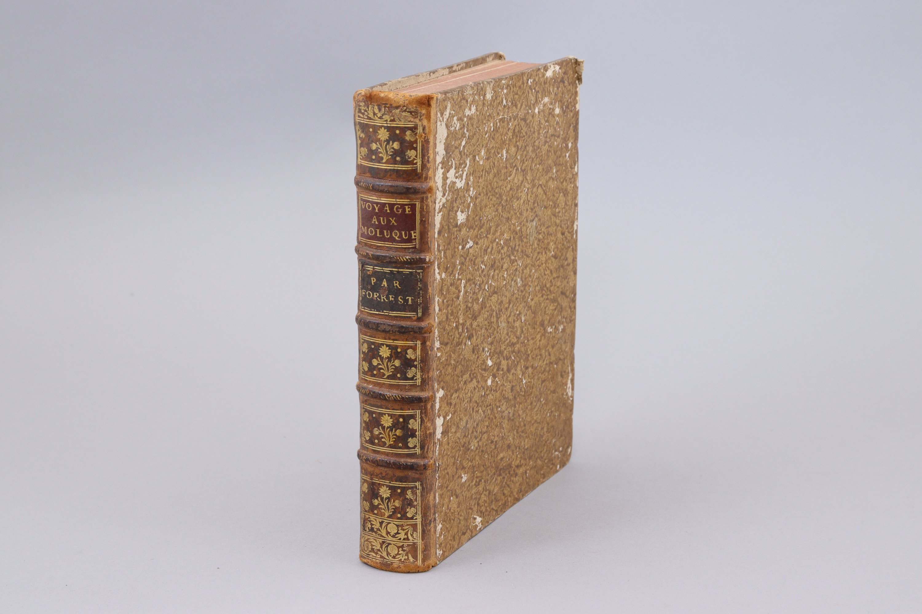 Voyage aux Moluques et à la Nouvelle-Guinée, fait sur la galère la Tartare en 1774, 1775 et 1776 par ordre de la Compagnie Anglaise, par le Capitaine Forrest, orné de planches et cartes.. Paris, Hôtel de Thou. 1780